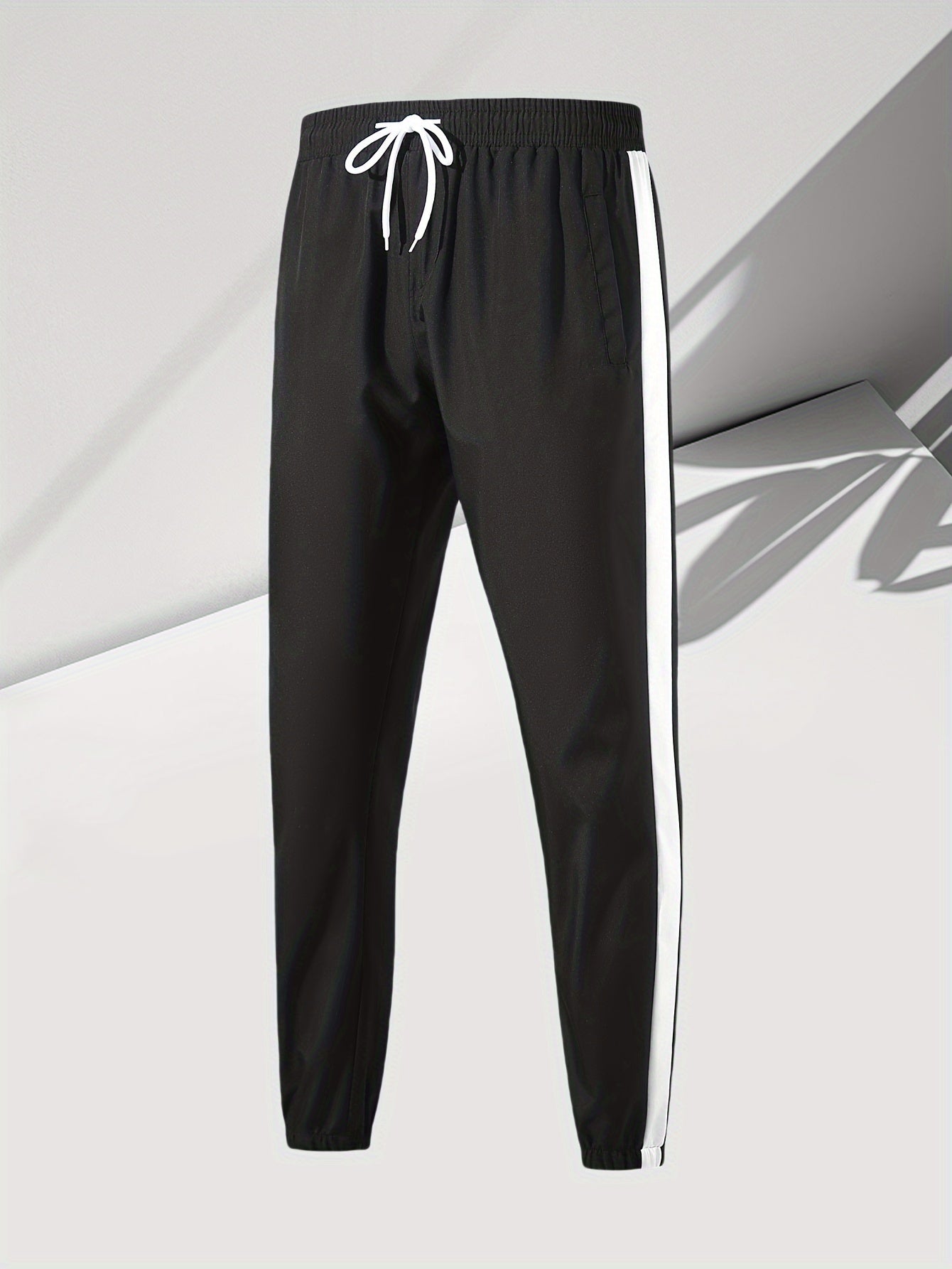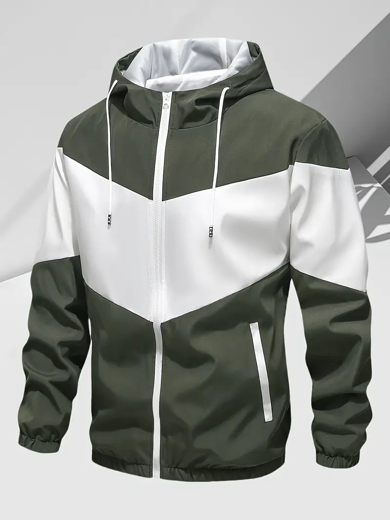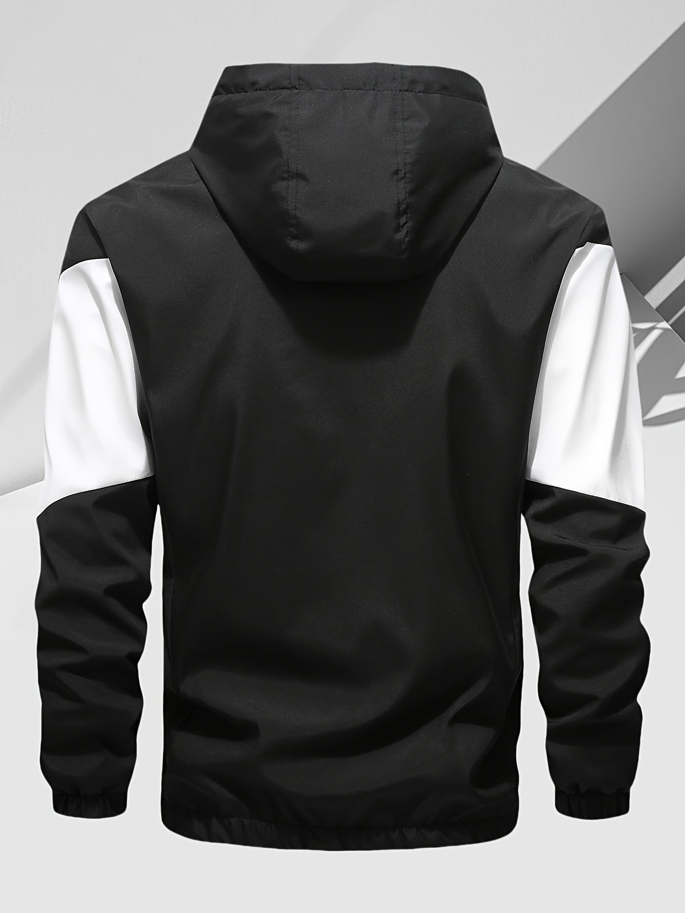 Мужской повседневный двухпредметный комплект из тканого материала, цветной блок, с капюшоном на молнии и штанами на шнурке