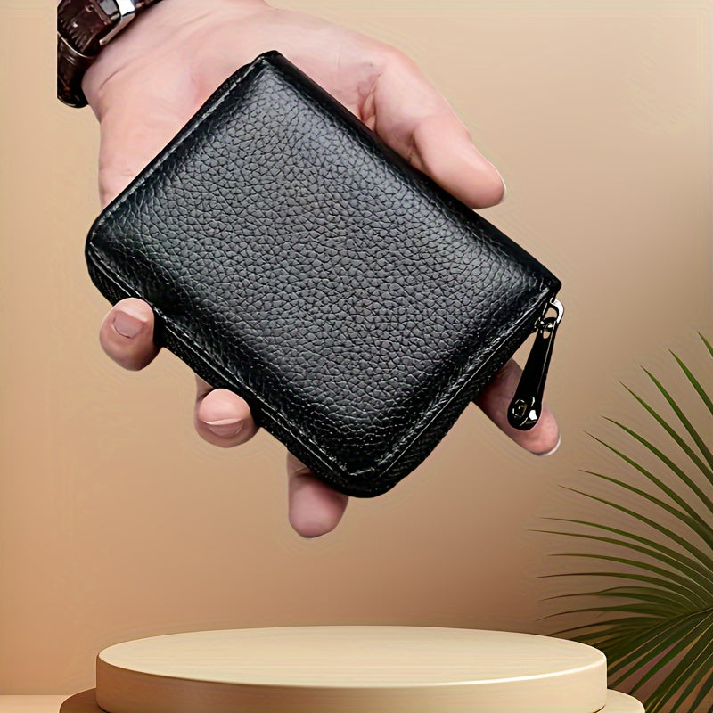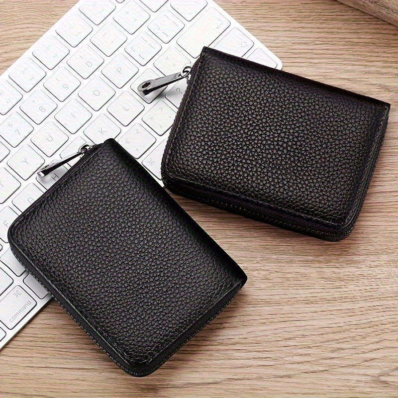 Мужской кожаный держатель для карт из PU с застежкой-молнией для монет, черный, повседневный