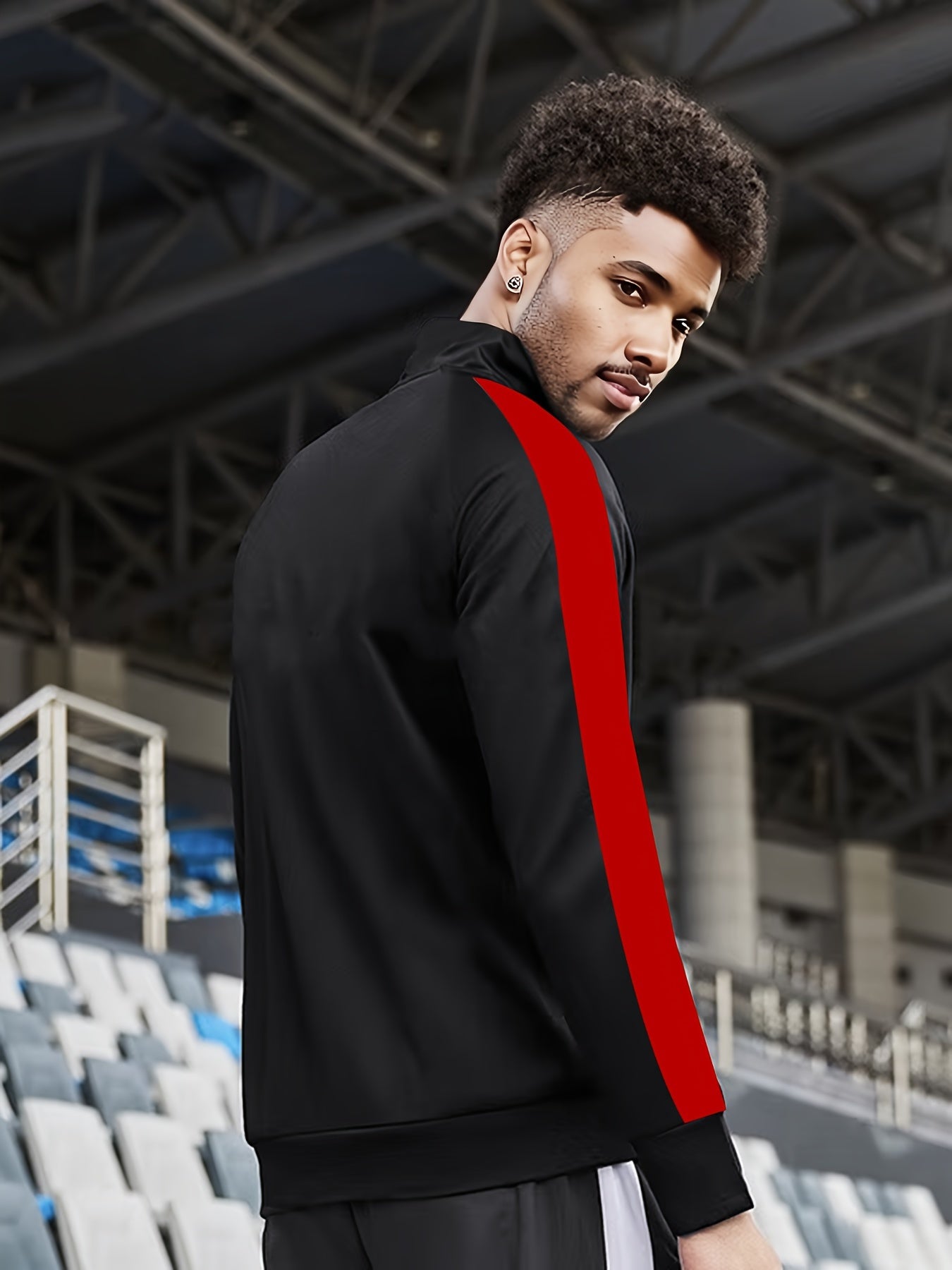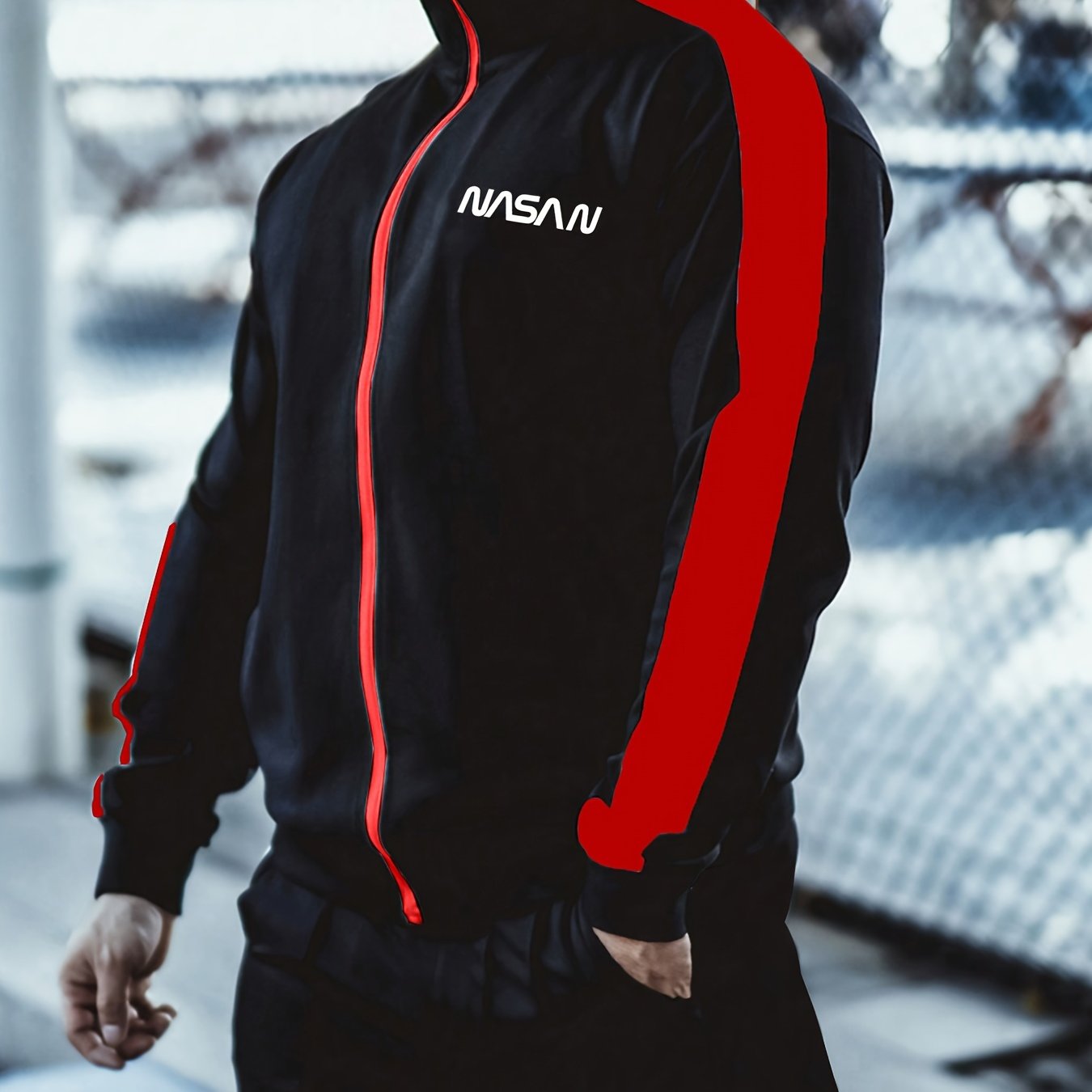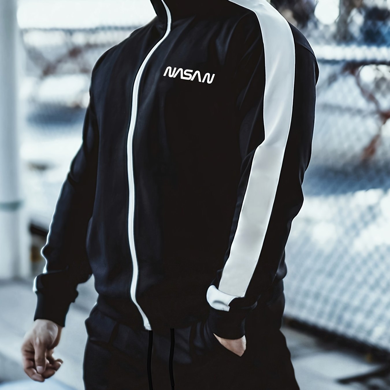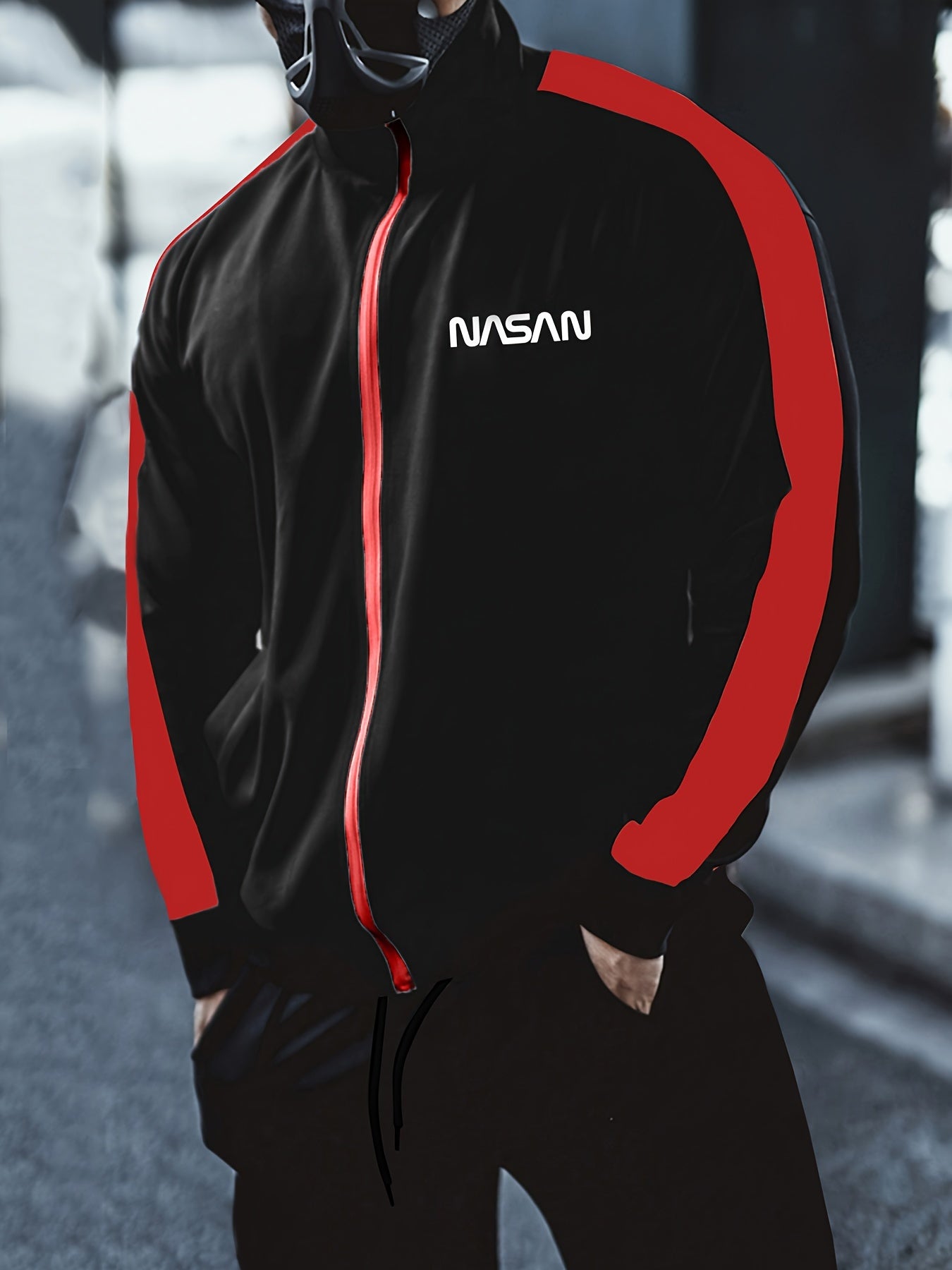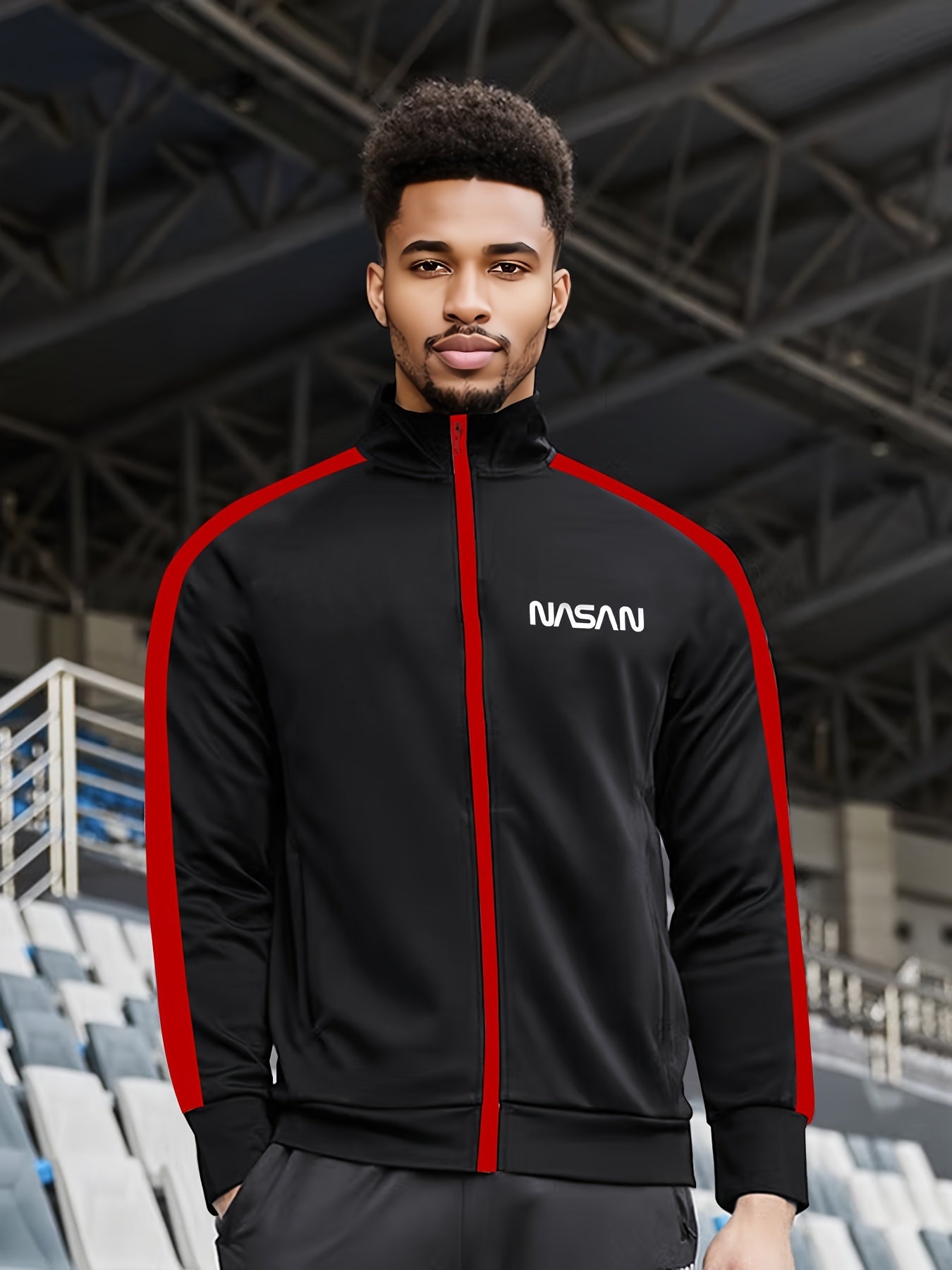 Мужская повседневная толстовка из полиэстера с воротником-стойкой, полная молния, трикотажная ткань, узор из букв
