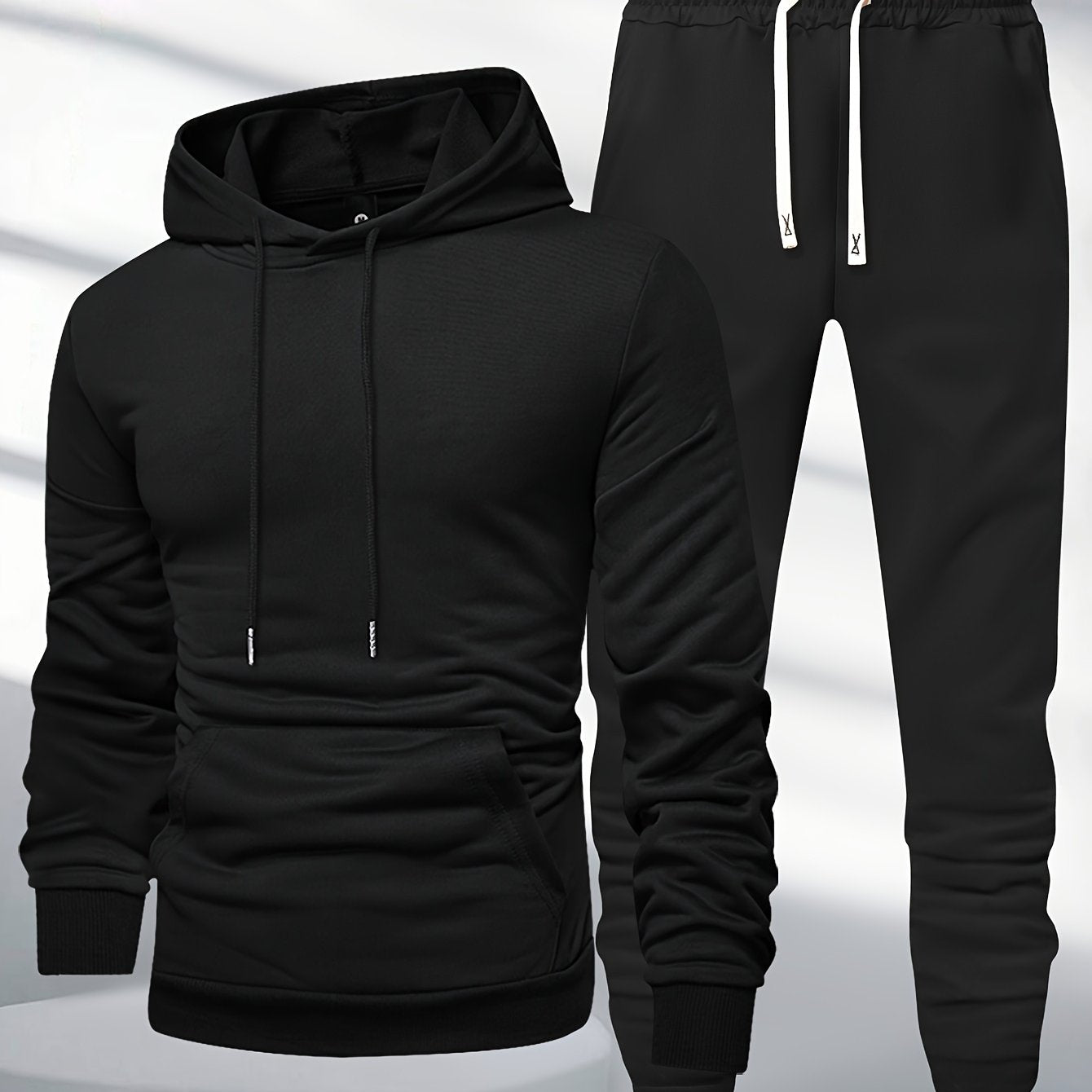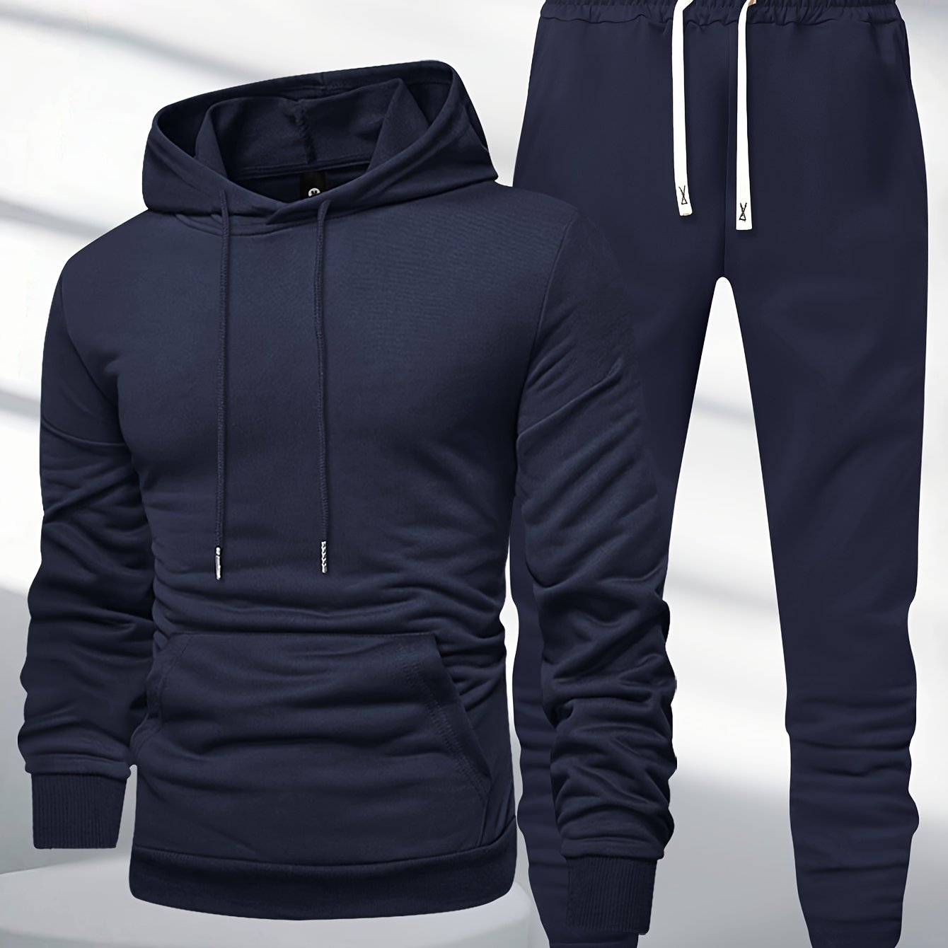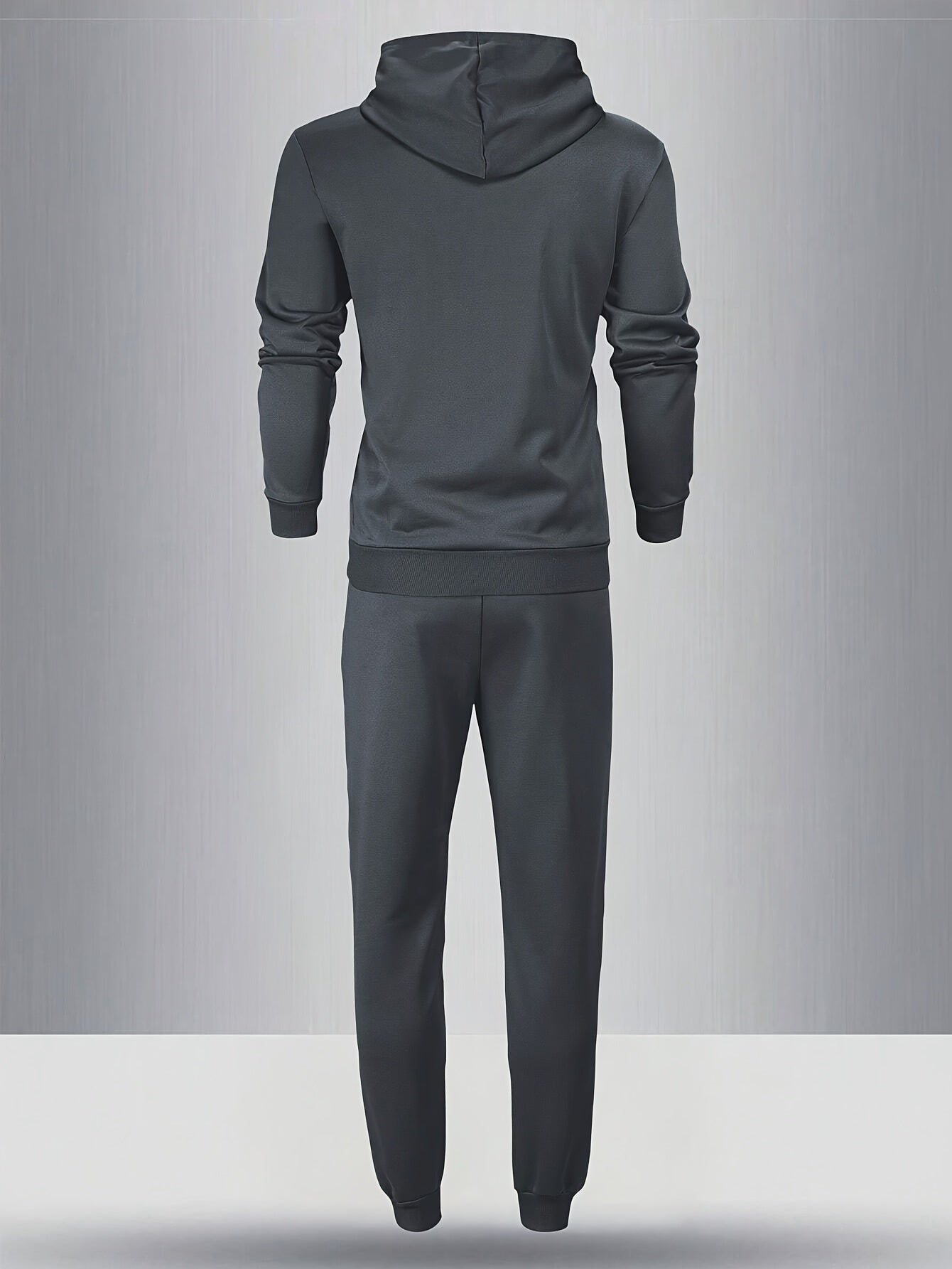 Мужской повседневный спортивный костюм из полиэстера с худи и длинными рукавами, а также джоггеры