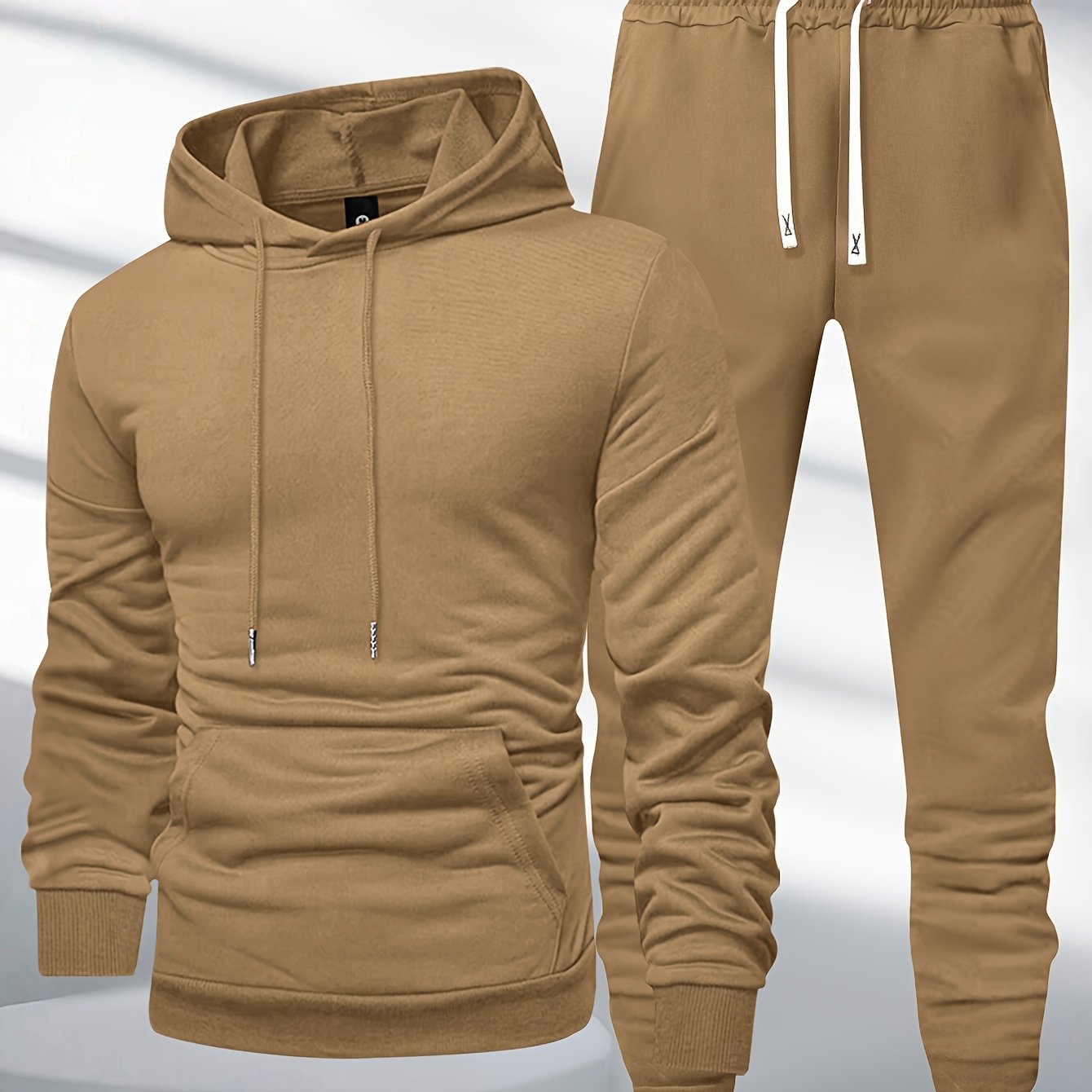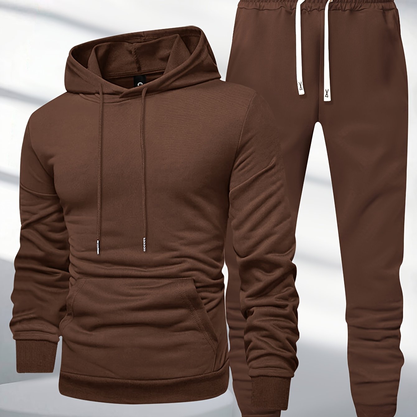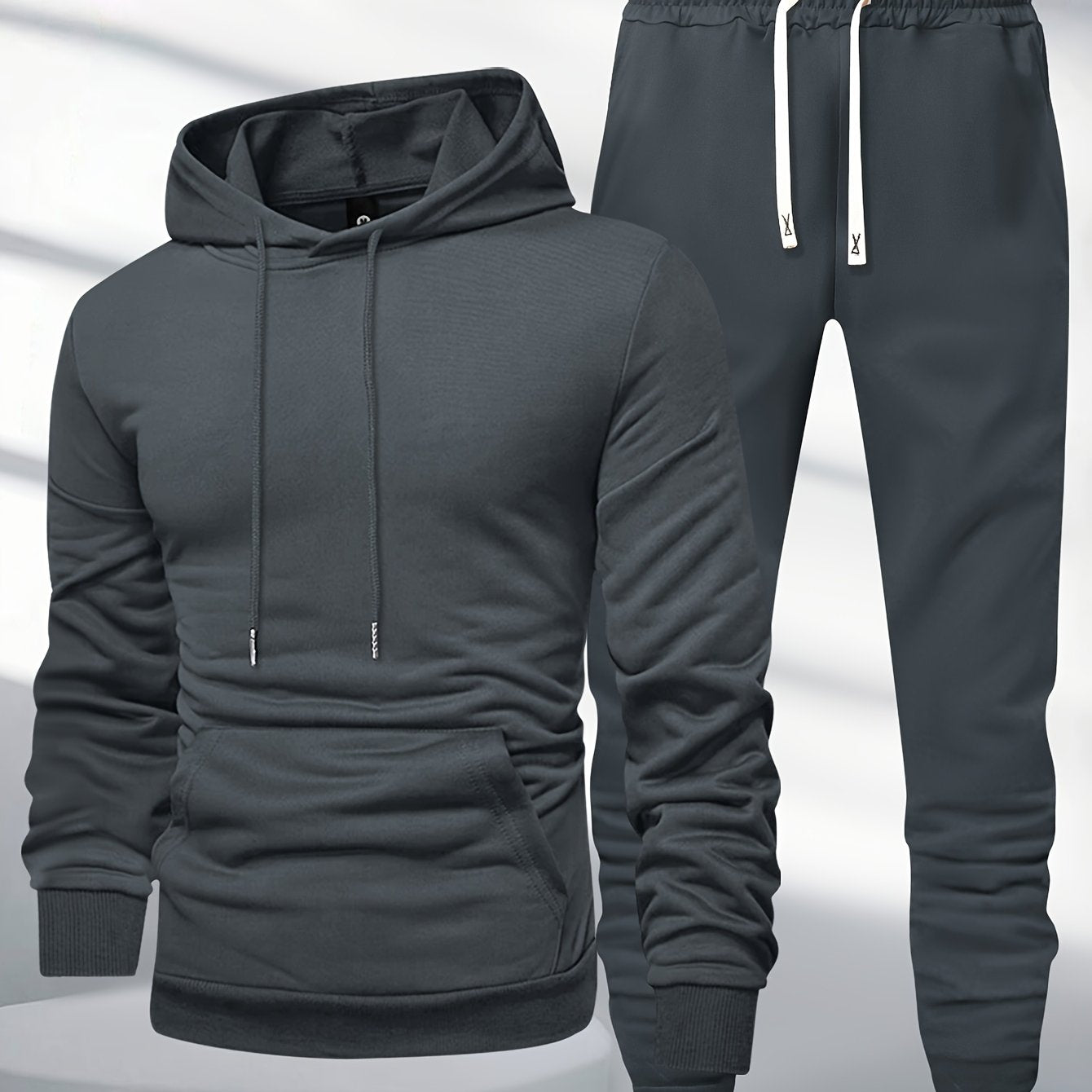 Мужской повседневный спортивный костюм из полиэстера с худи и длинными рукавами, а также джоггеры