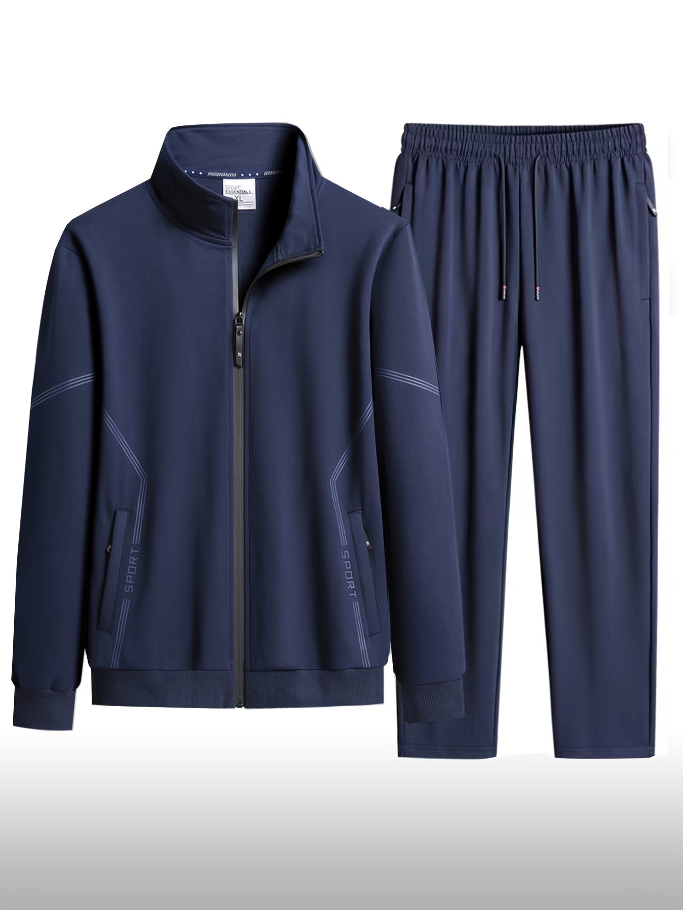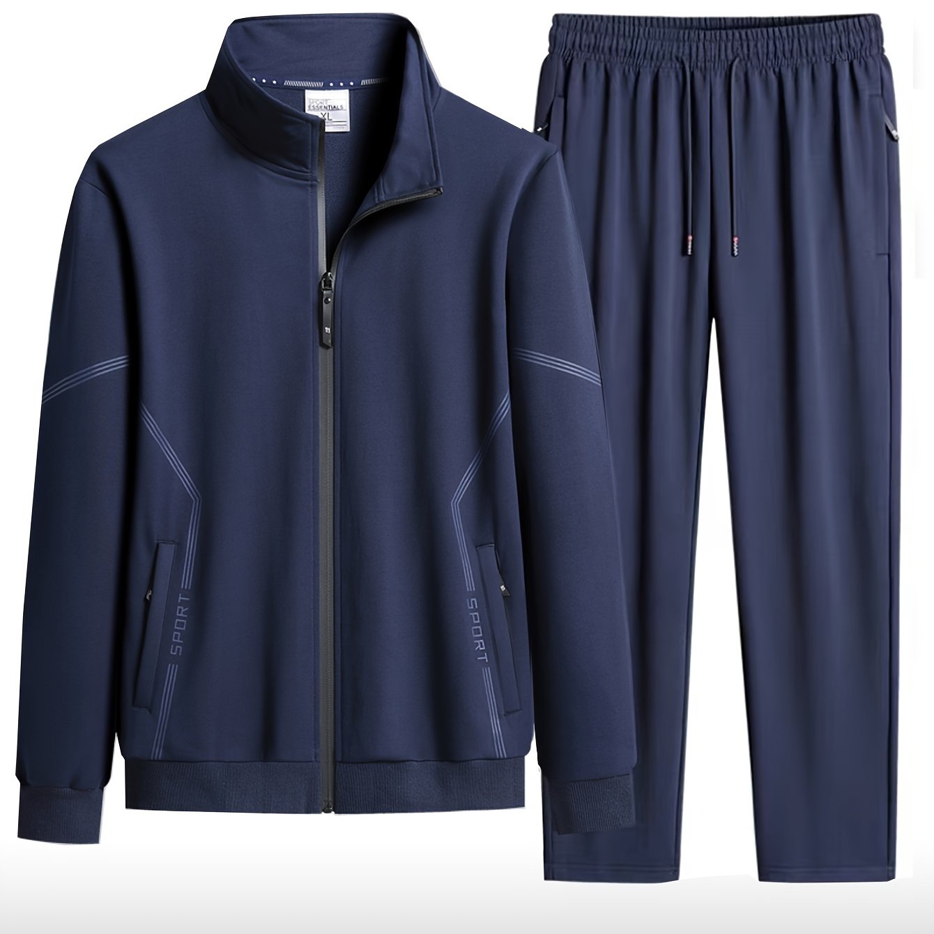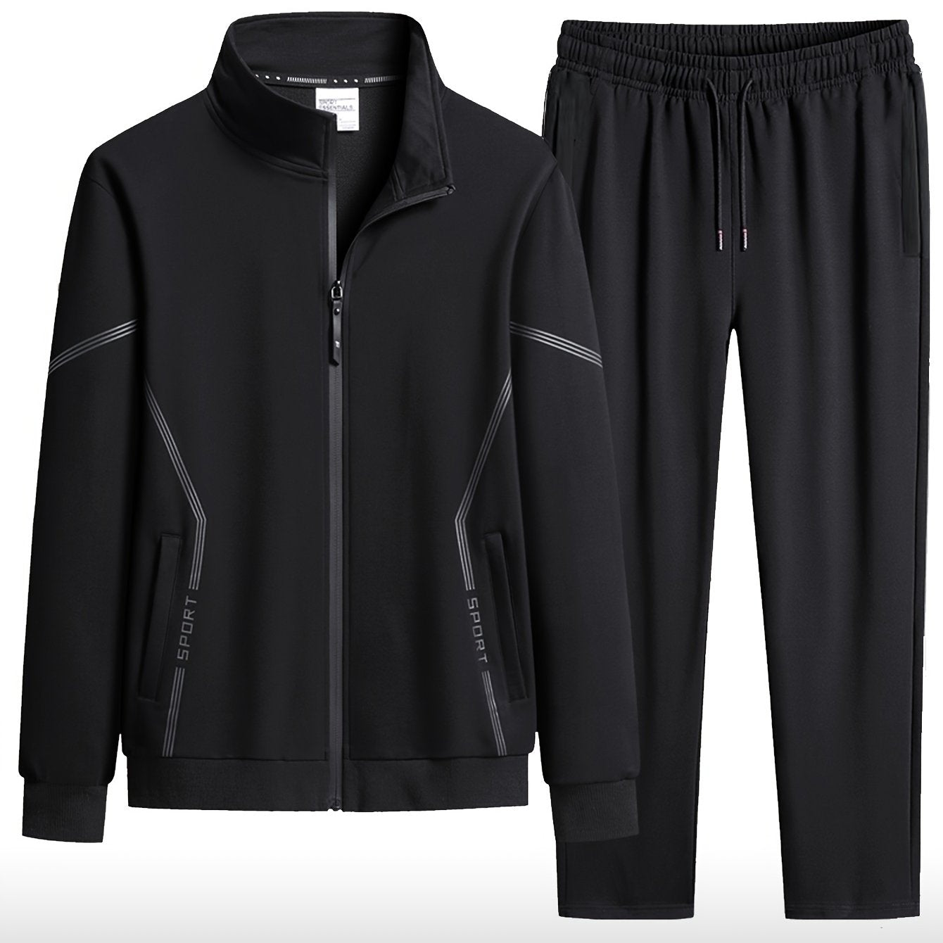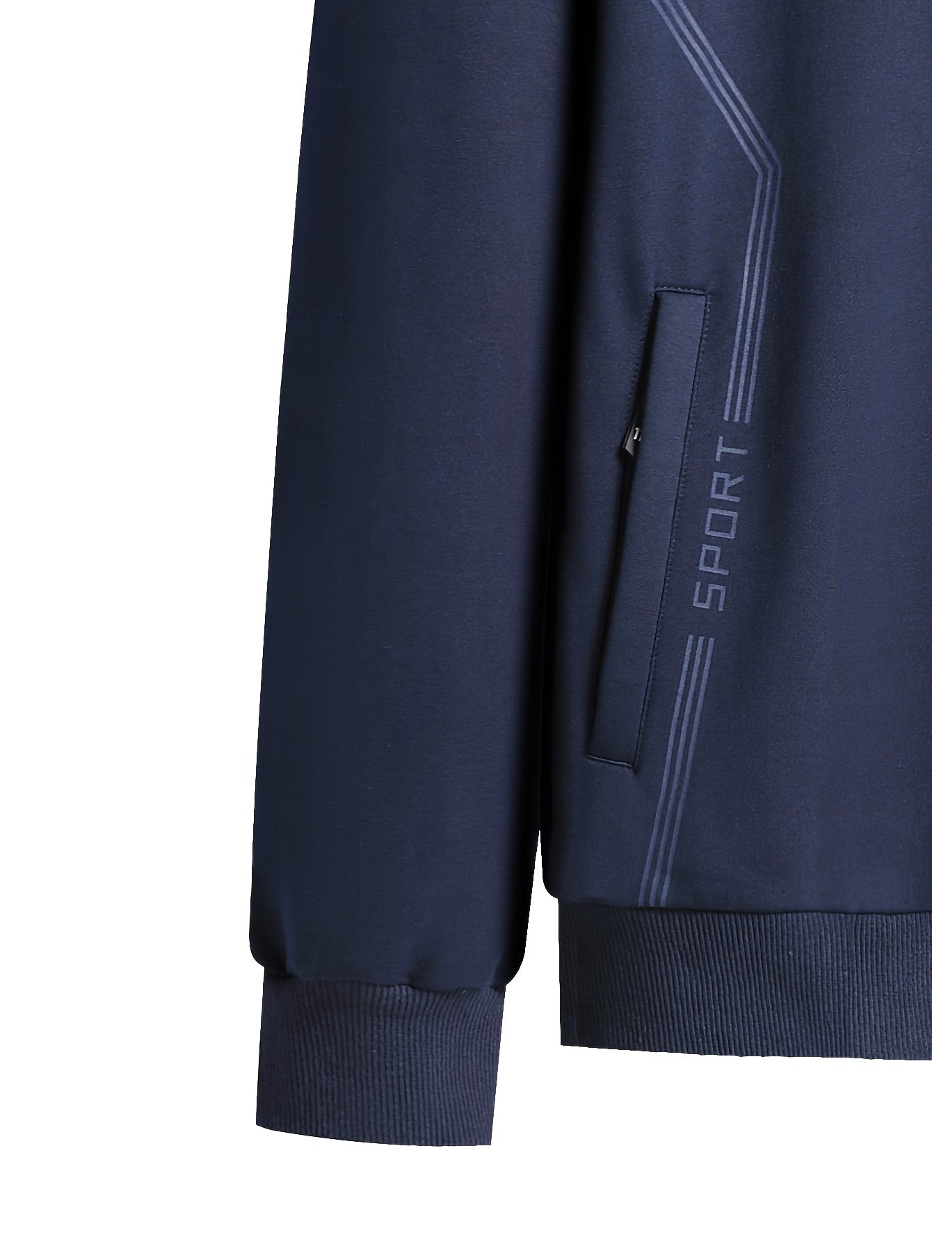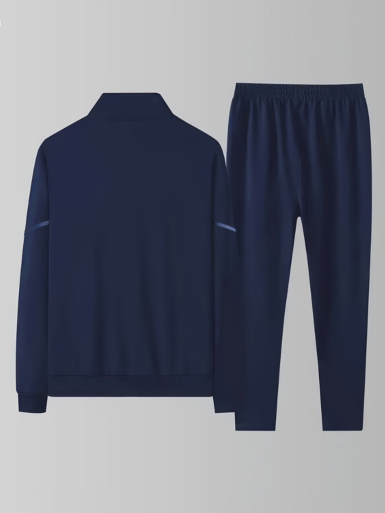 Мужской повседневный спортивный костюм из полиэстера однотонный с карманами, весна-осень, куртка с воротником и джоггеры