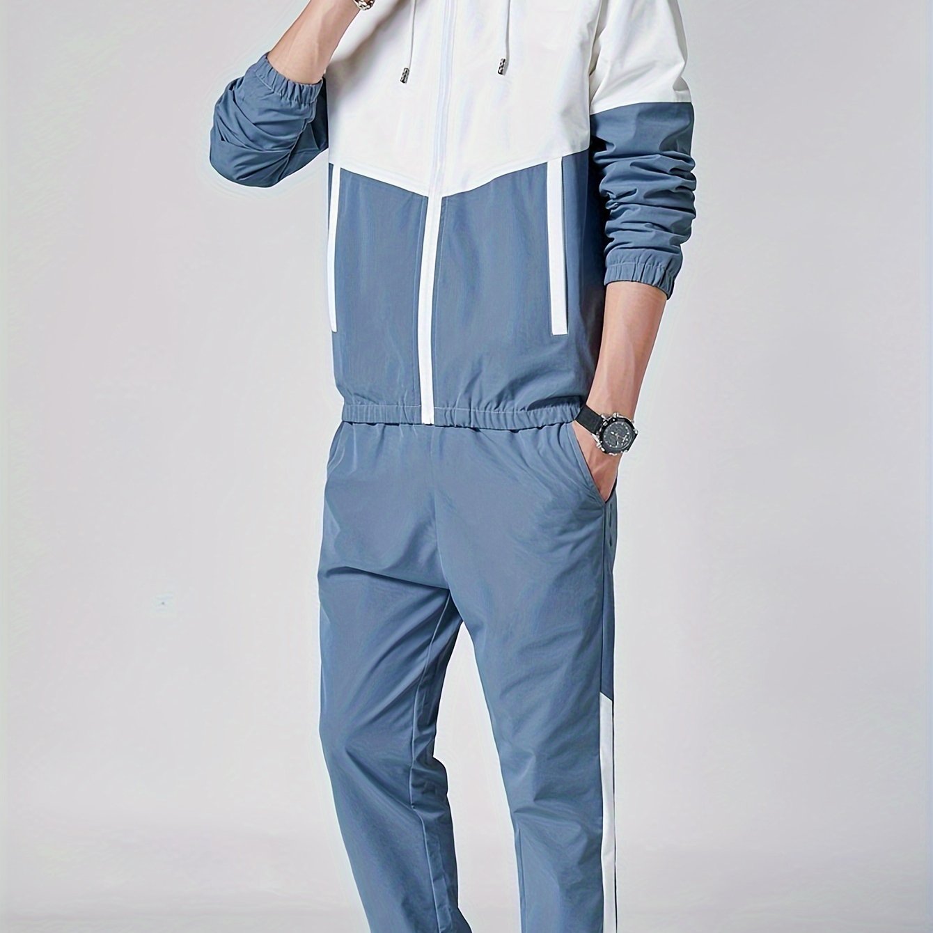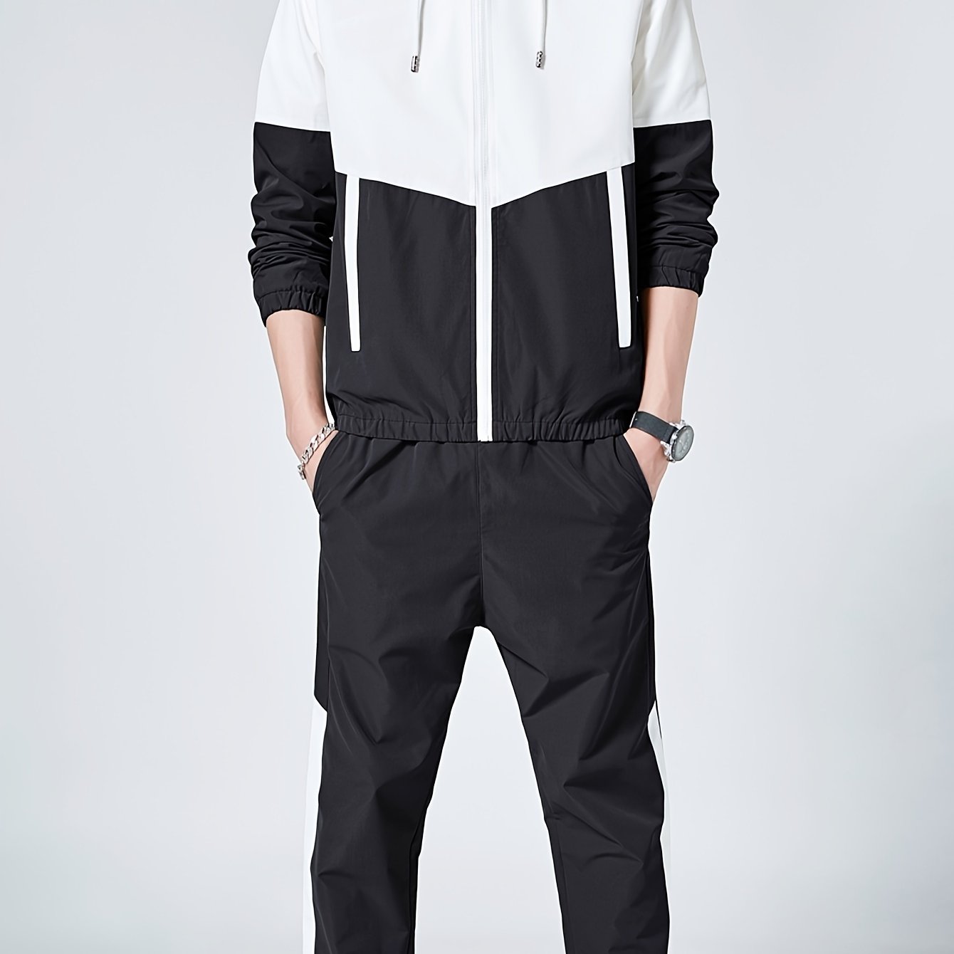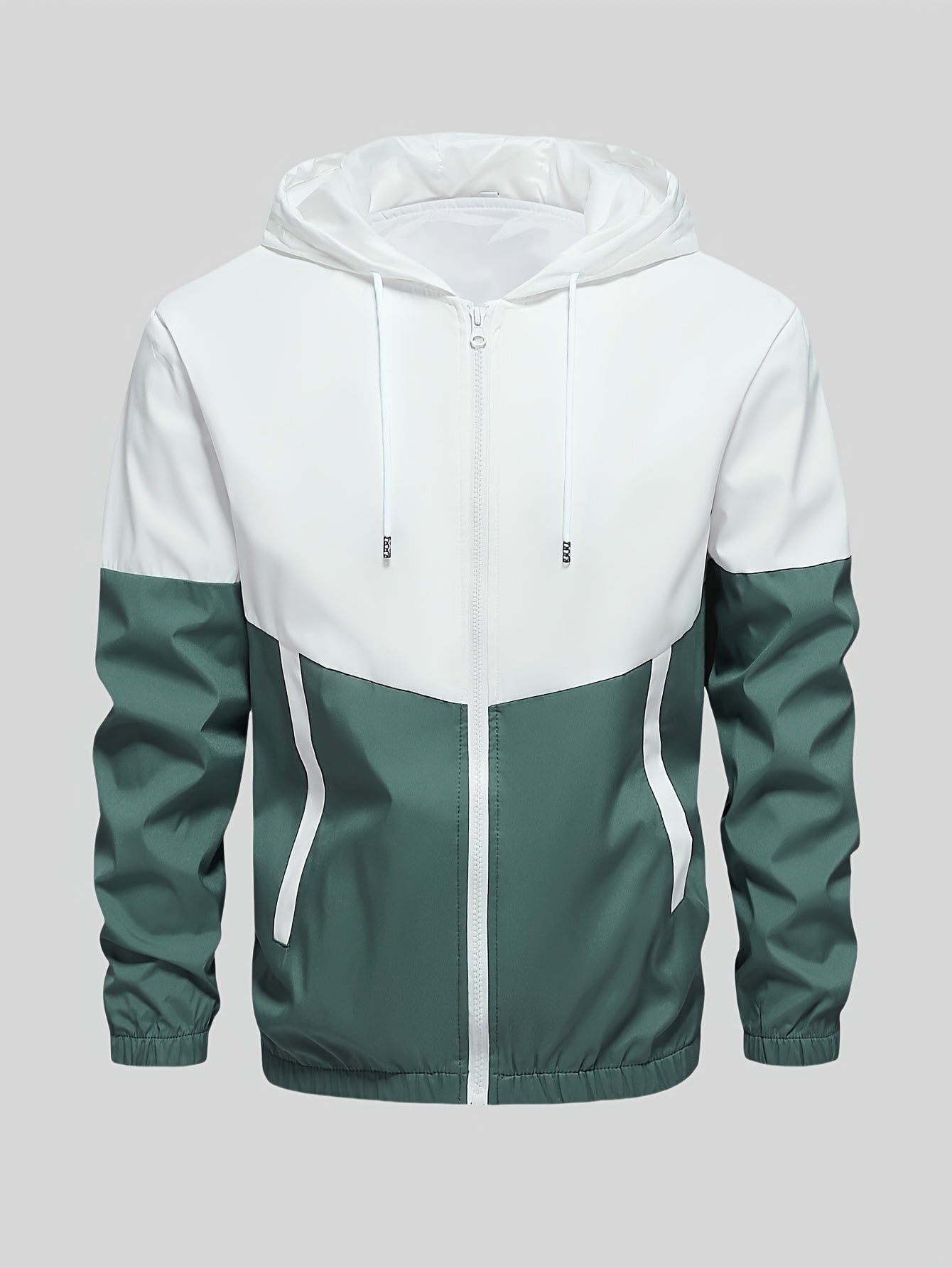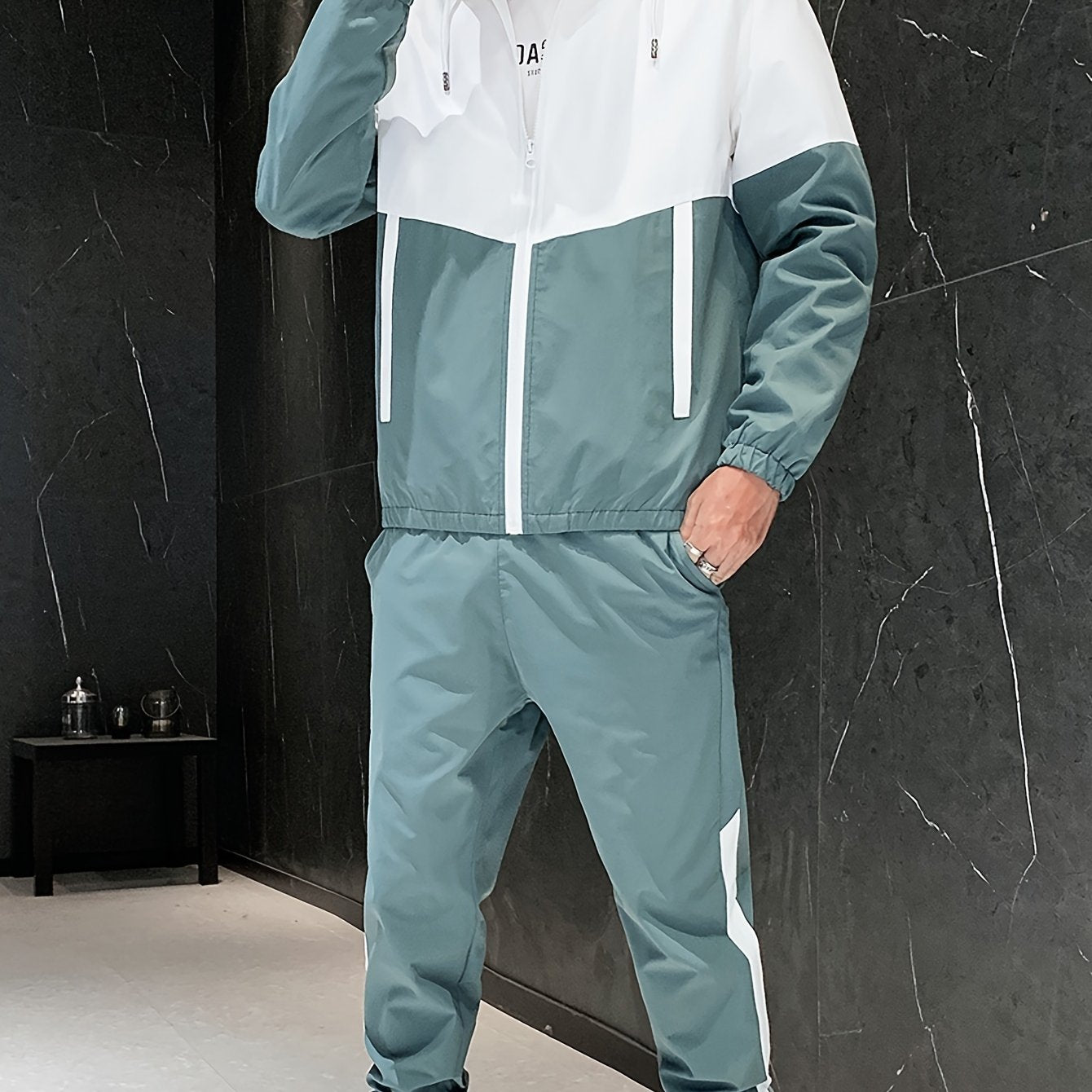 Мужской зеленый и белый спортивный костюм из полиэстера с плетением, куртка с капюшоном и штаны для бега, гольфа, походов