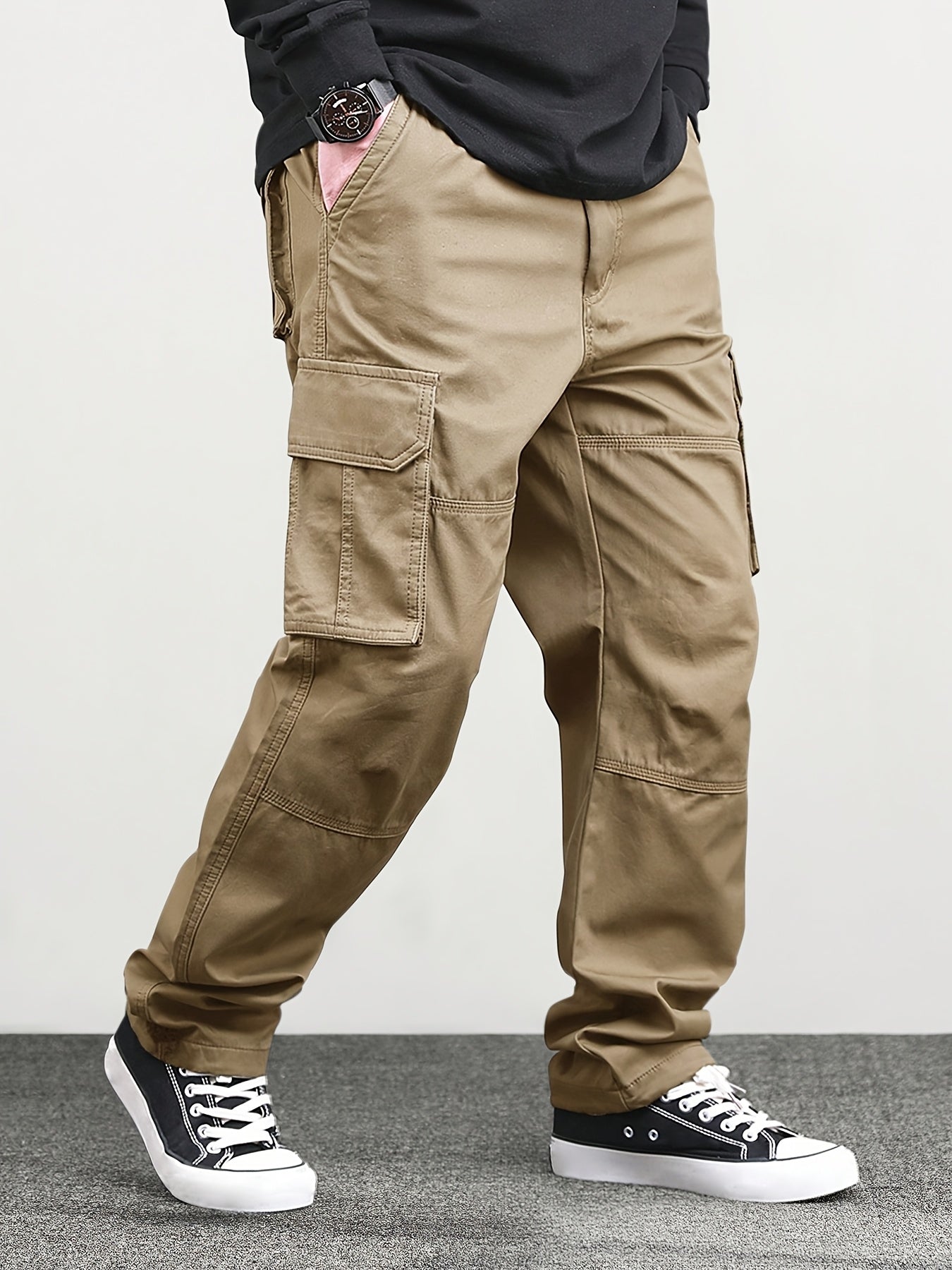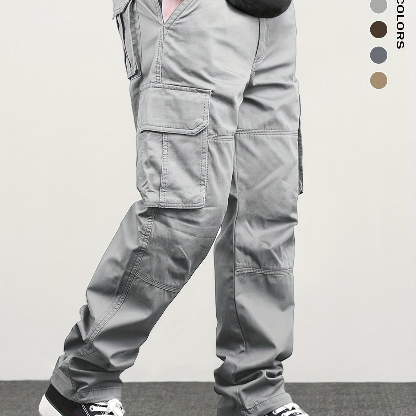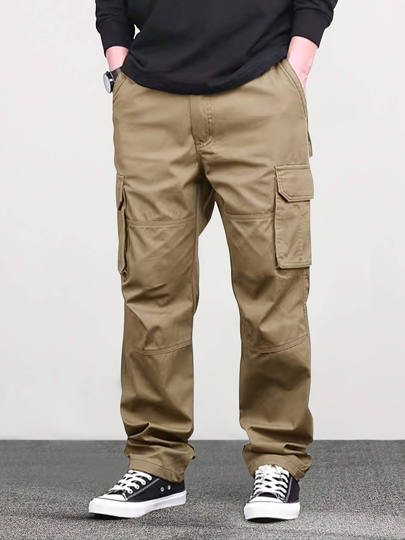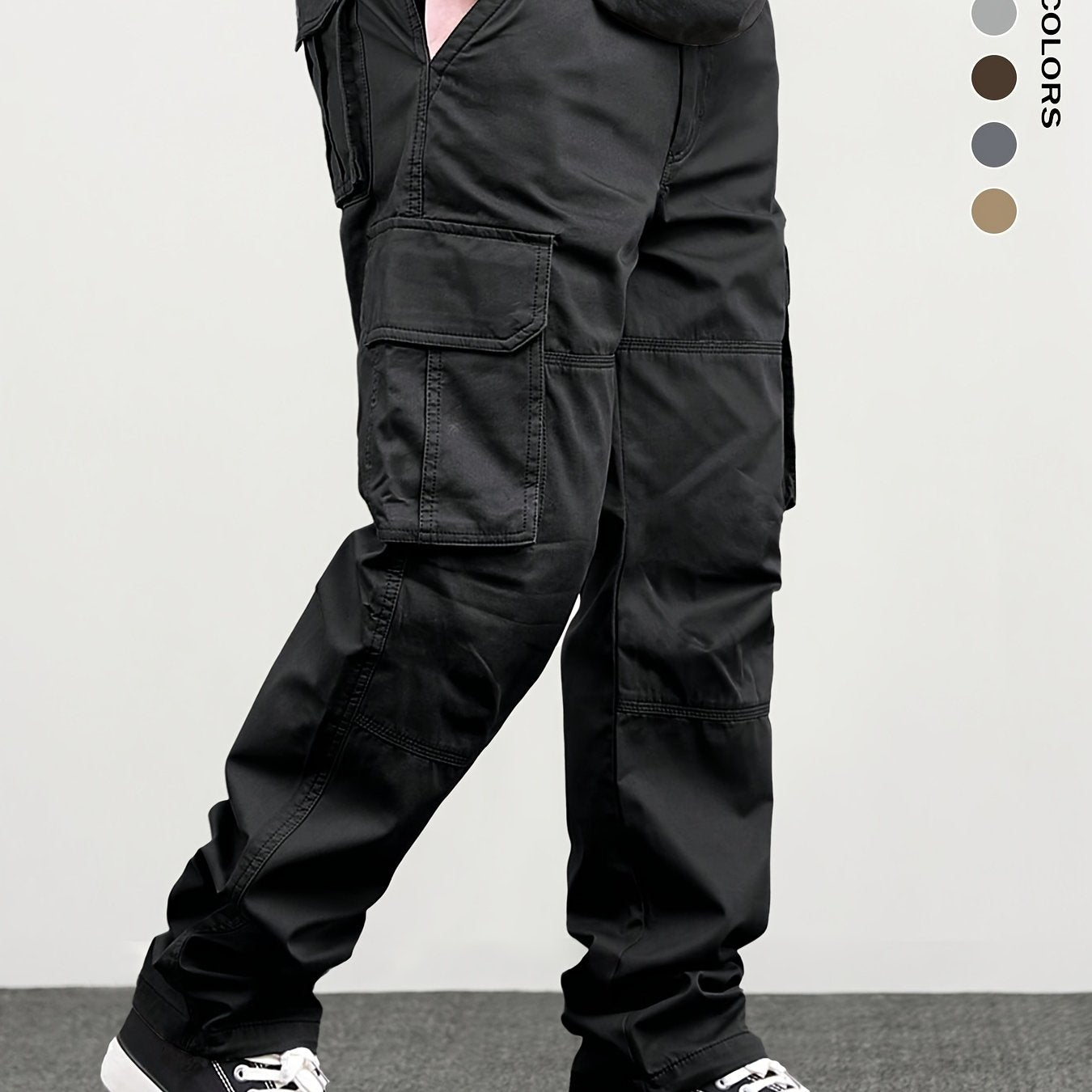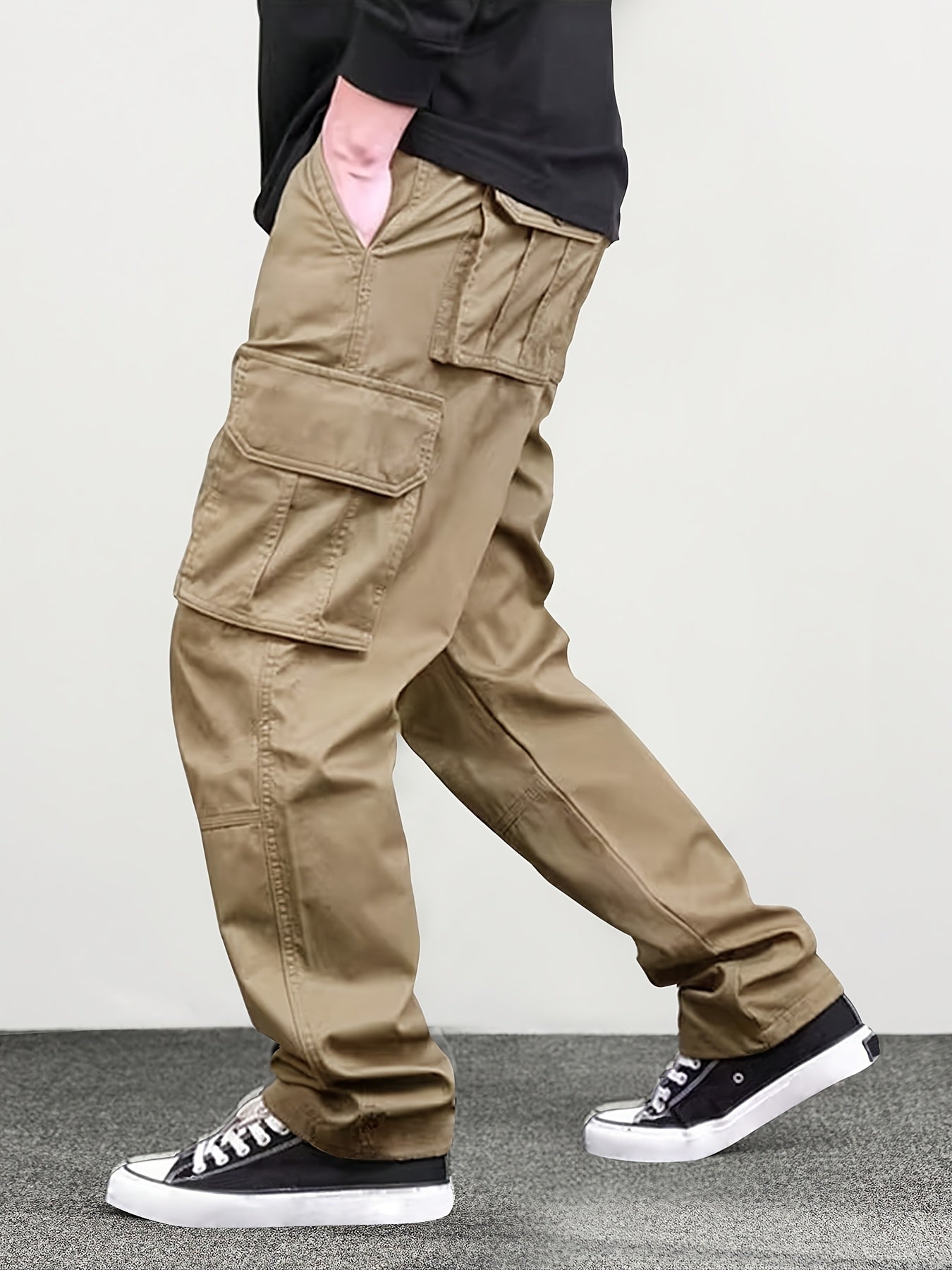 Мужские брюки-карго из полиэстера однотонные с несколькими карманами свободного кроя с эластичным поясом на шнурке для уличной одежды