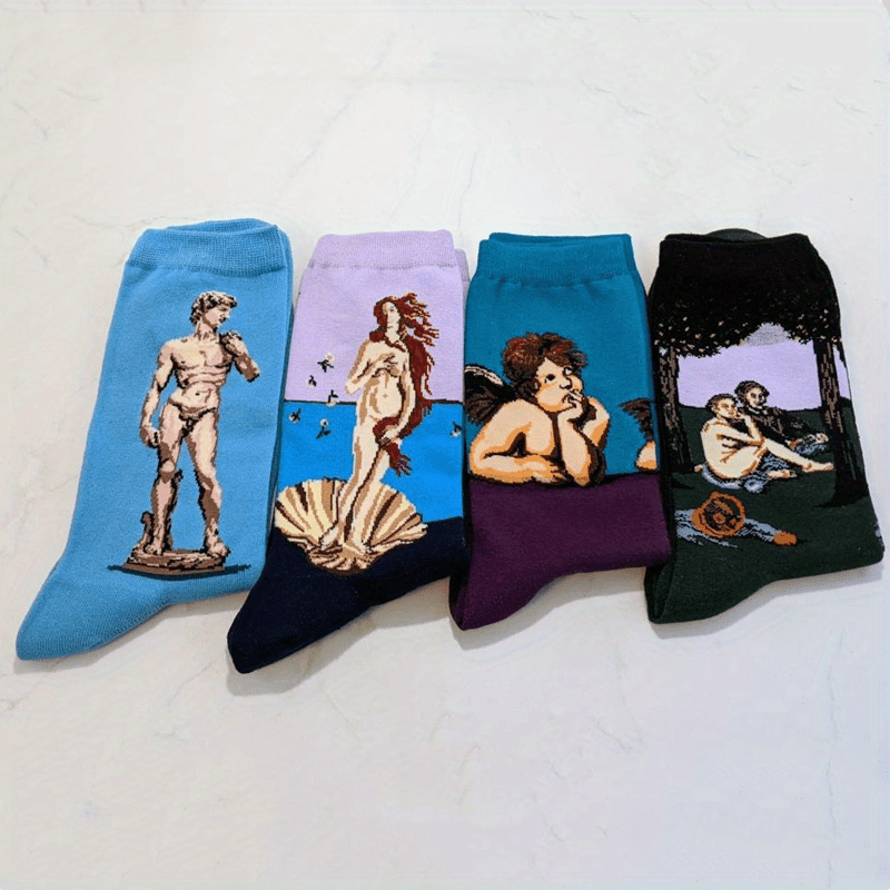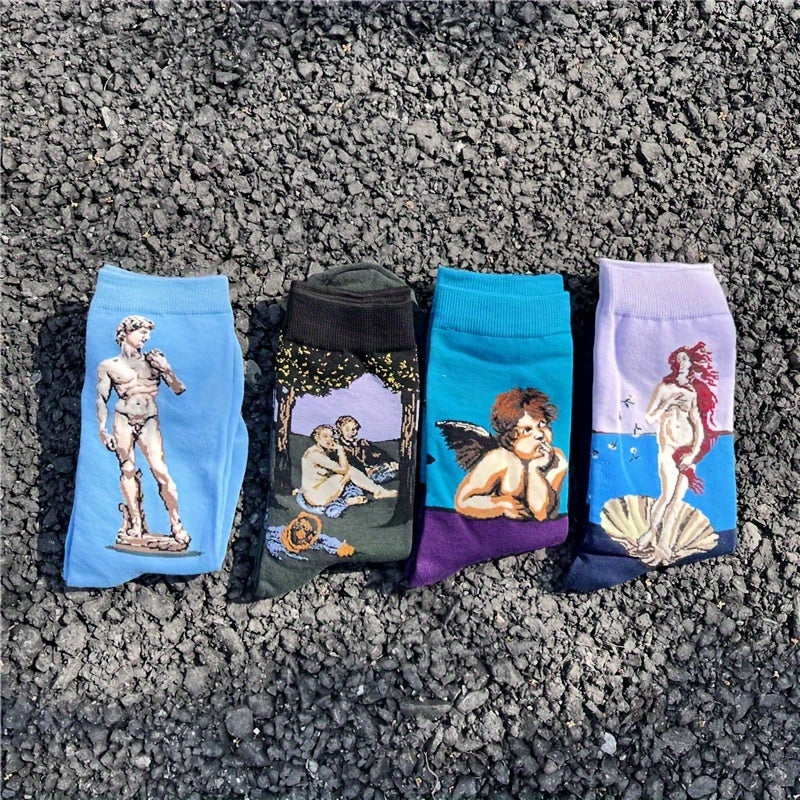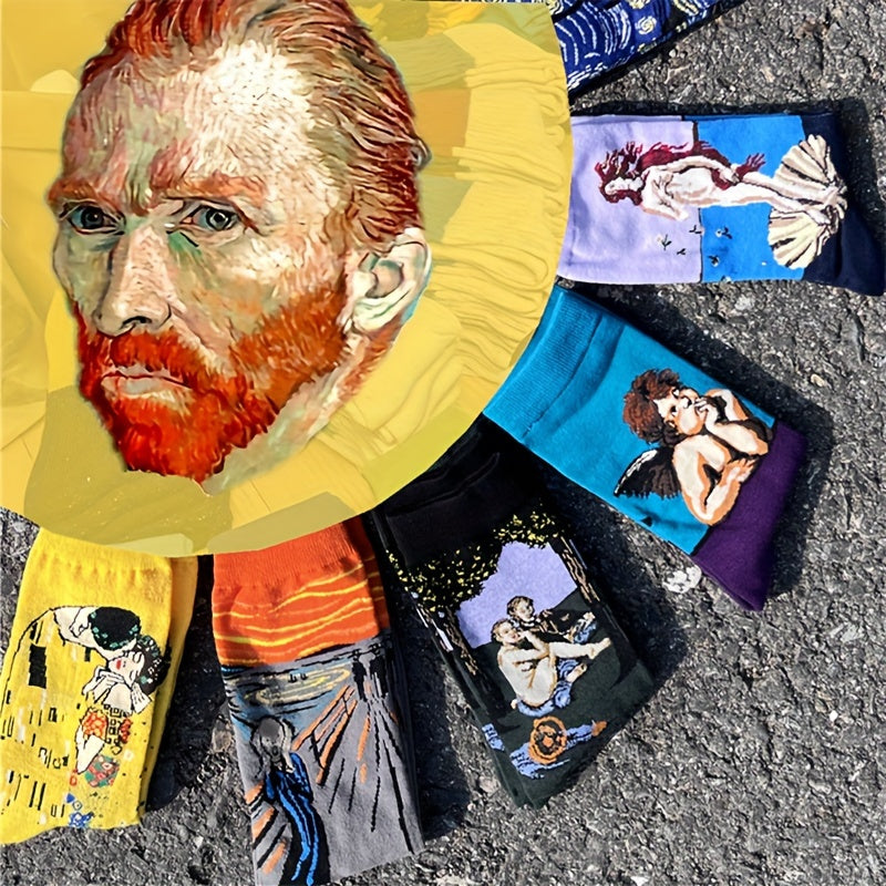 Мужские хлопковые носки с рисунками звездного неба и масляной живописи