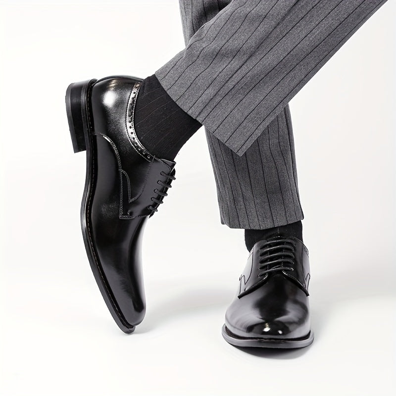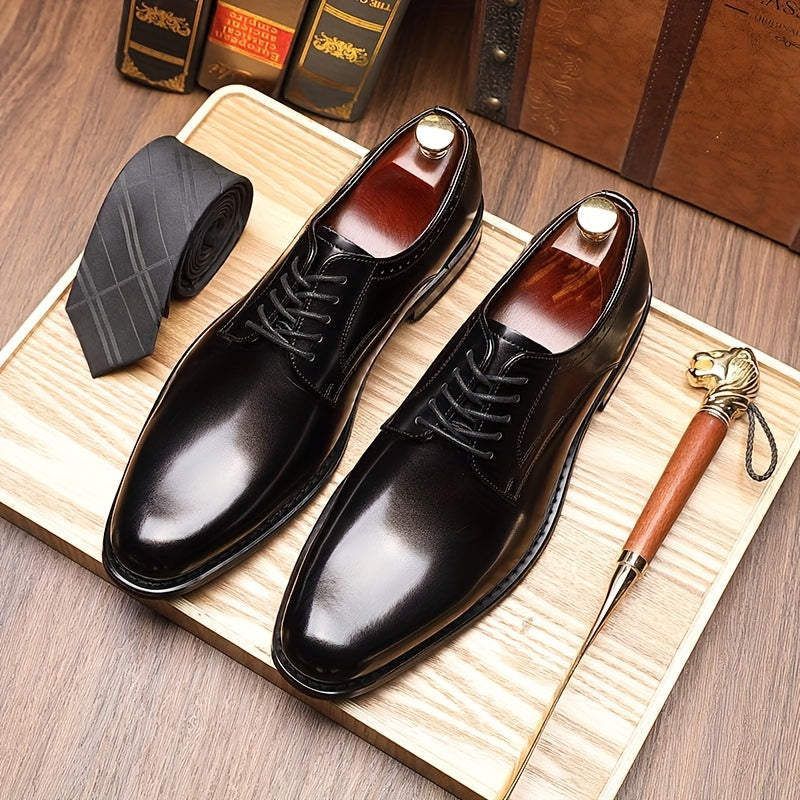Мужские кожаные дерби-туфли однотонные с простым носком, нескользящая резиновая подошва, шнуровка, повседневные деловые