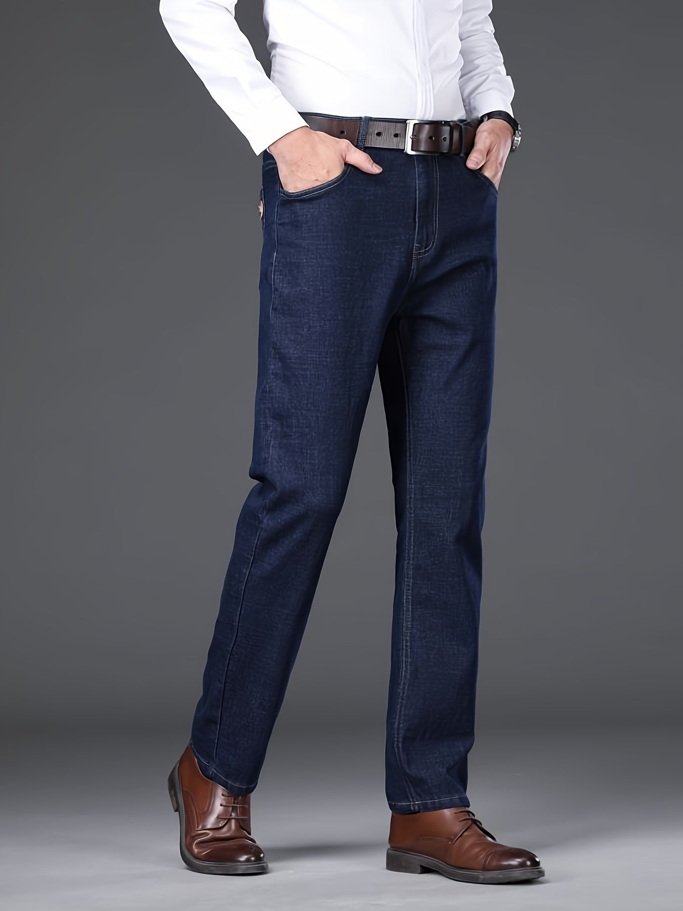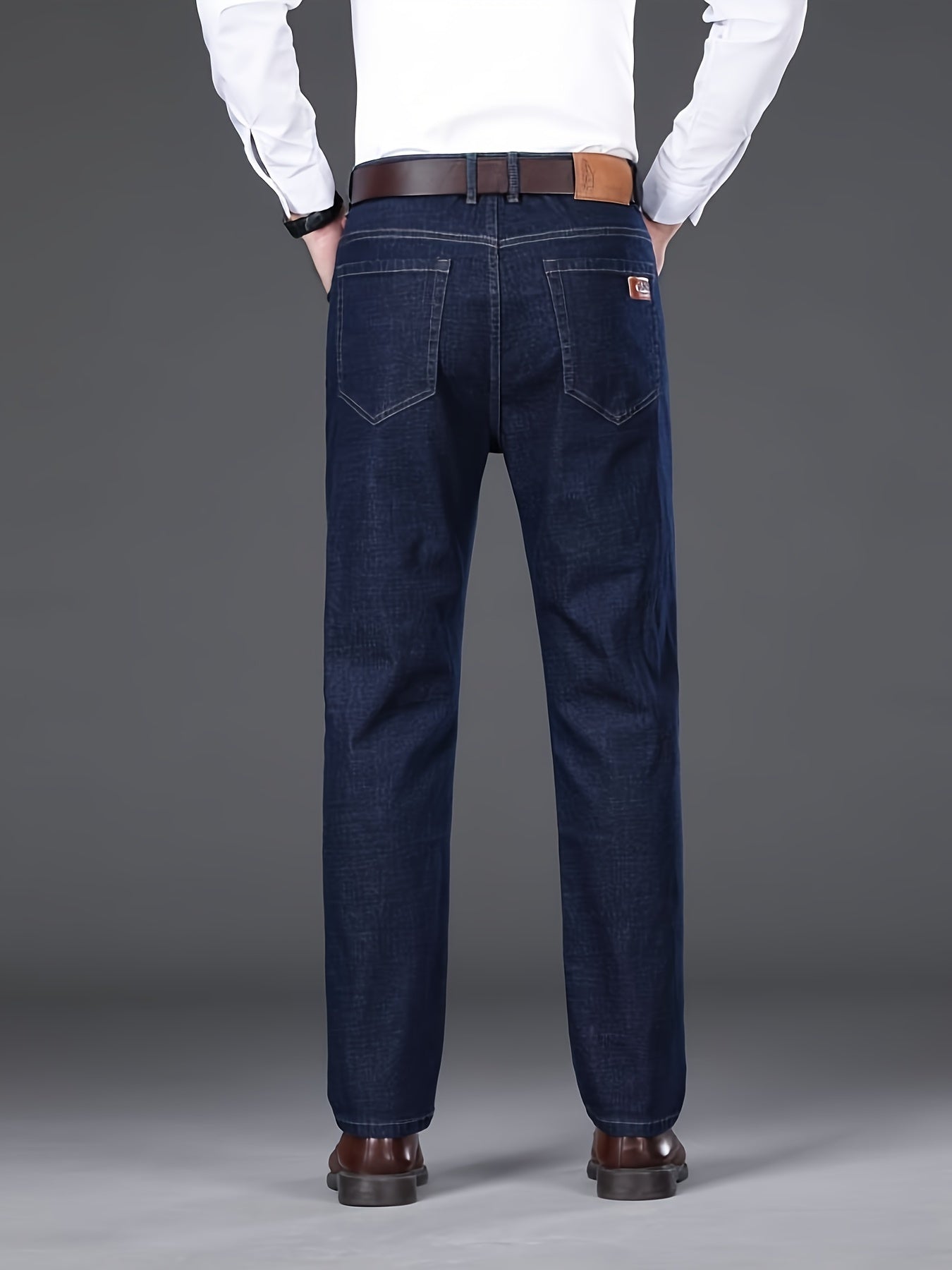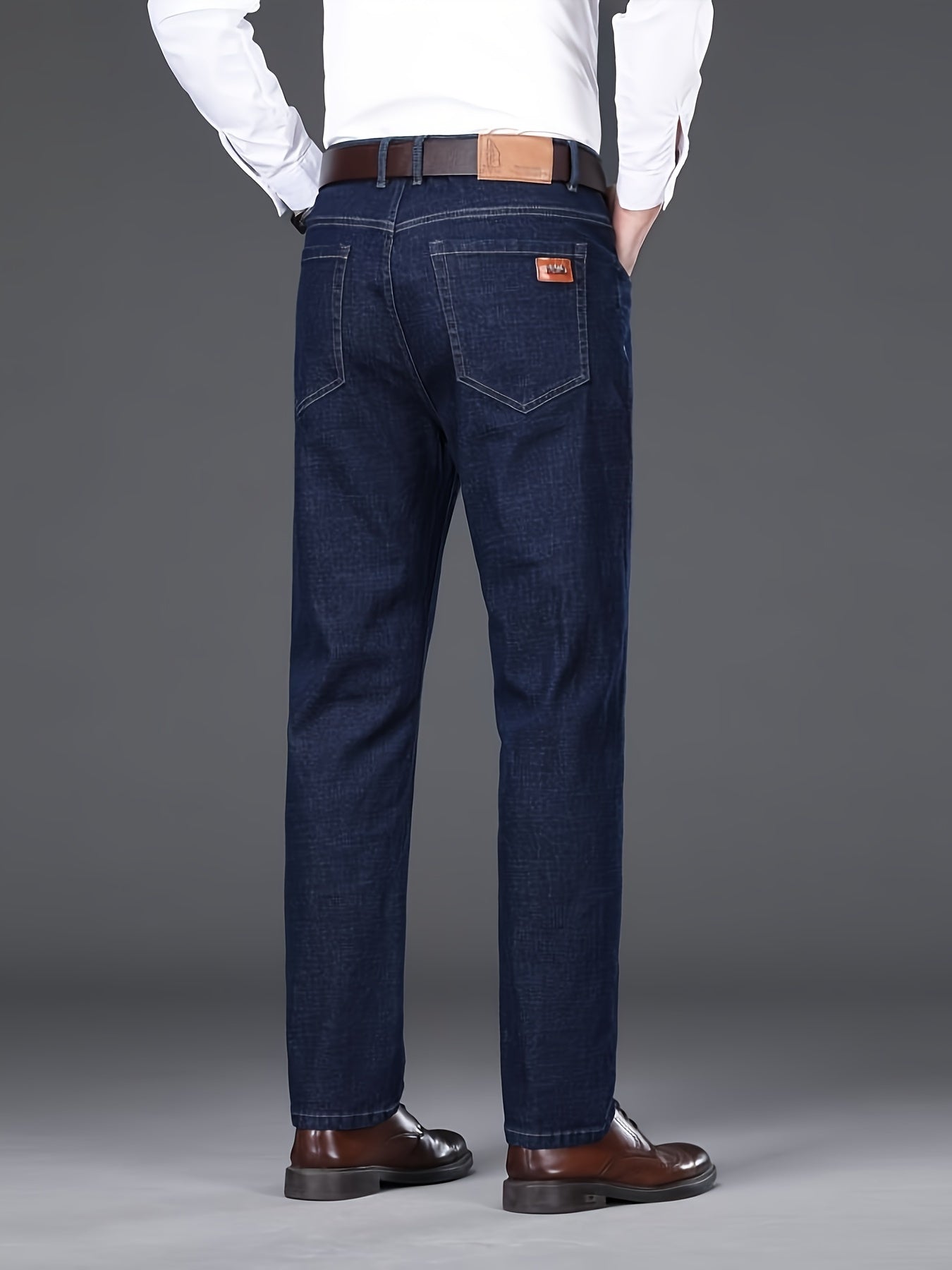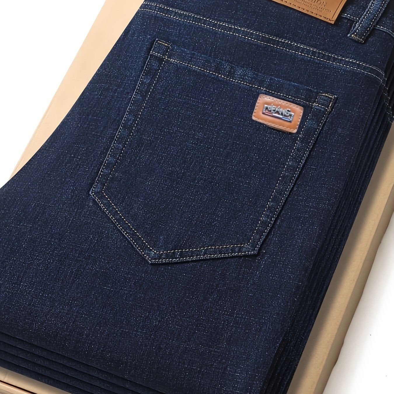 Мужские тёмно-синие джинсы прямого кроя с нашивками из хлопкового смесового прочного денима