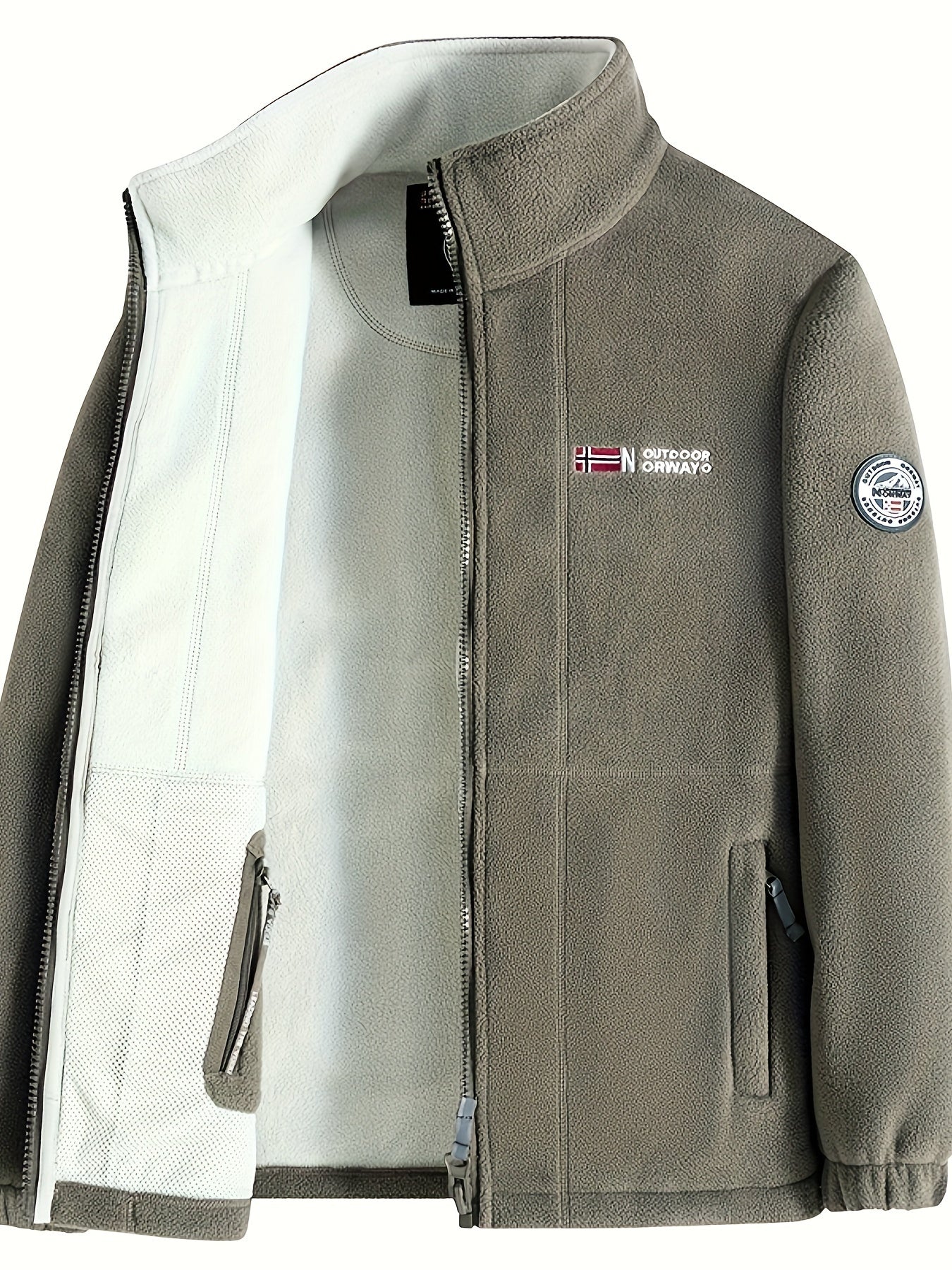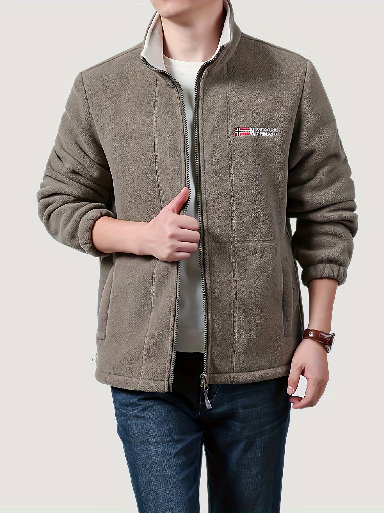 Мужская вышитая алфавитная толстовка-куртка из 100% полиэстеровой трикотажной ткани для осени и зимы
