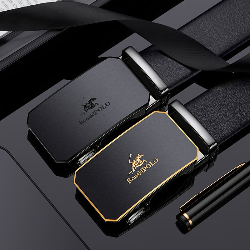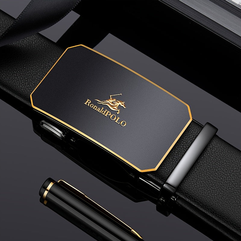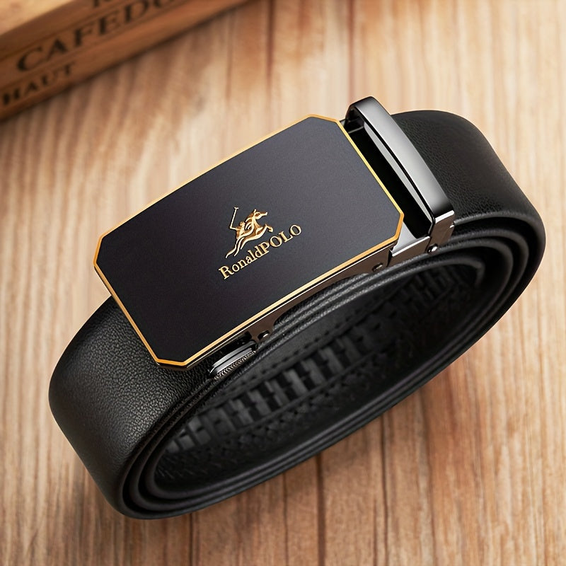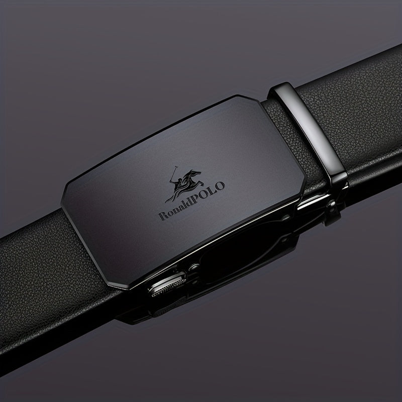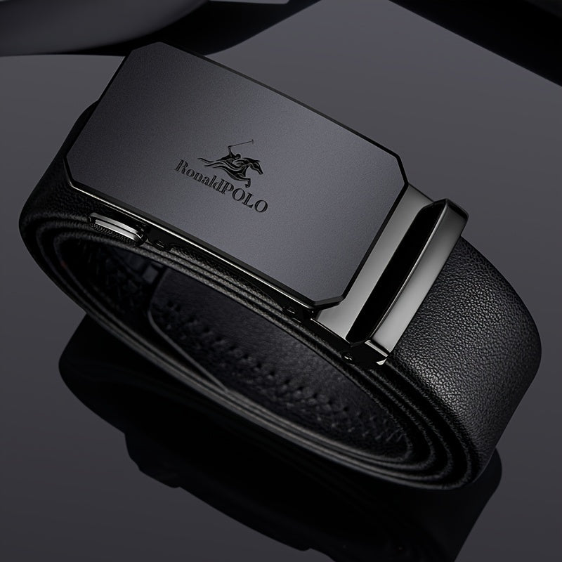 Мужской черный кожаный ремень с автоматической пряжкой для деловой одежды
