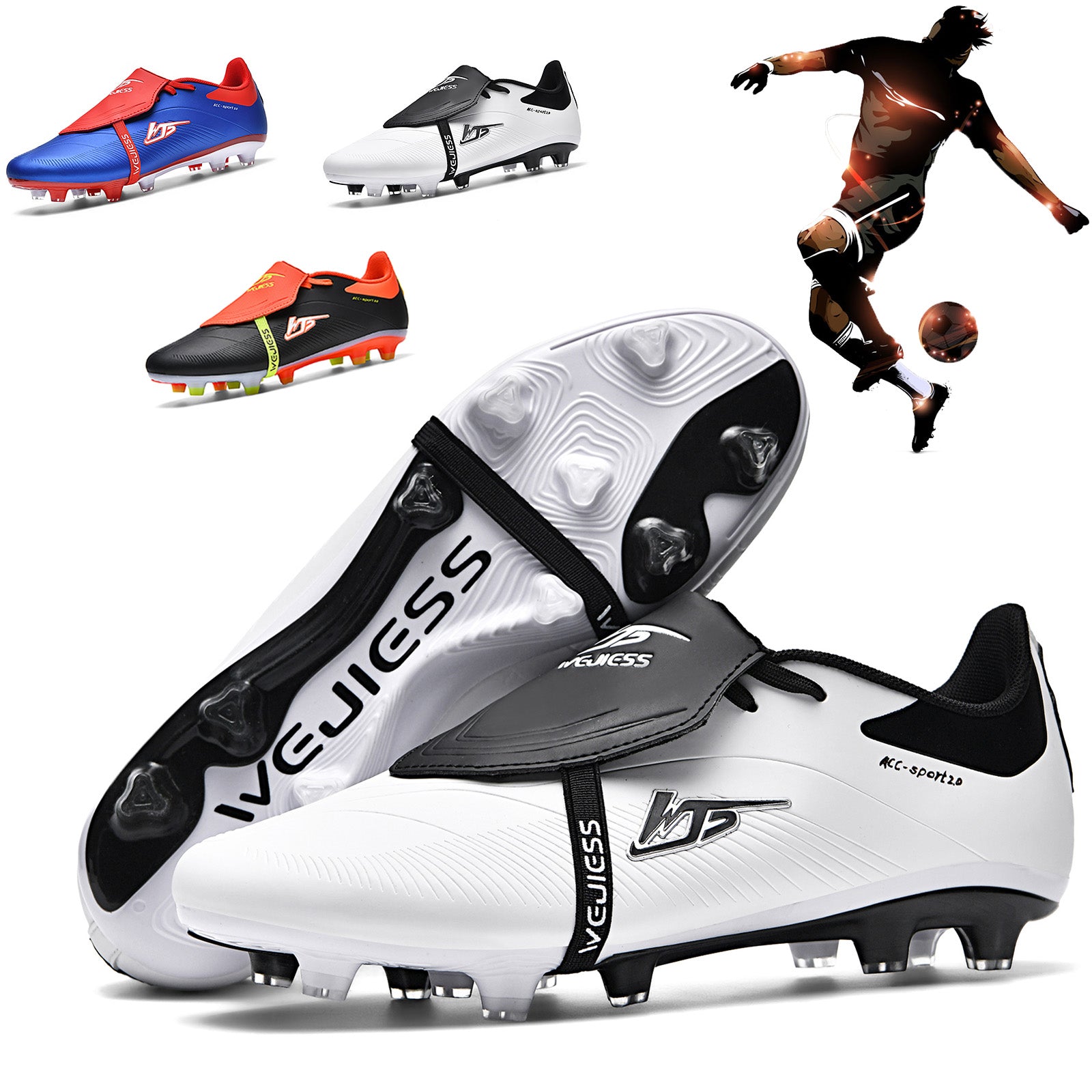Мужские черно-белые высокие футбольные бутсы с противоскользящими шипами, дышащие, легкие