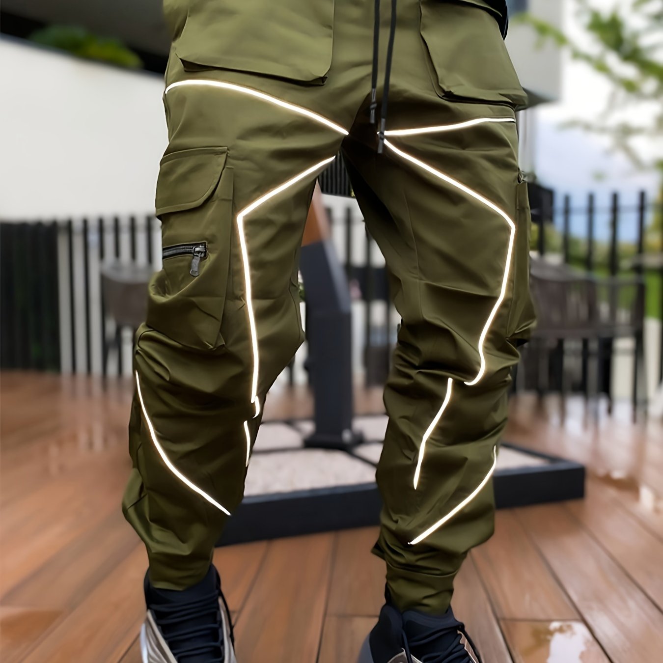 Мужские свободные прямые карго-штаны с множеством карманов, отражающими акцентами, полиэстер, всесезонные