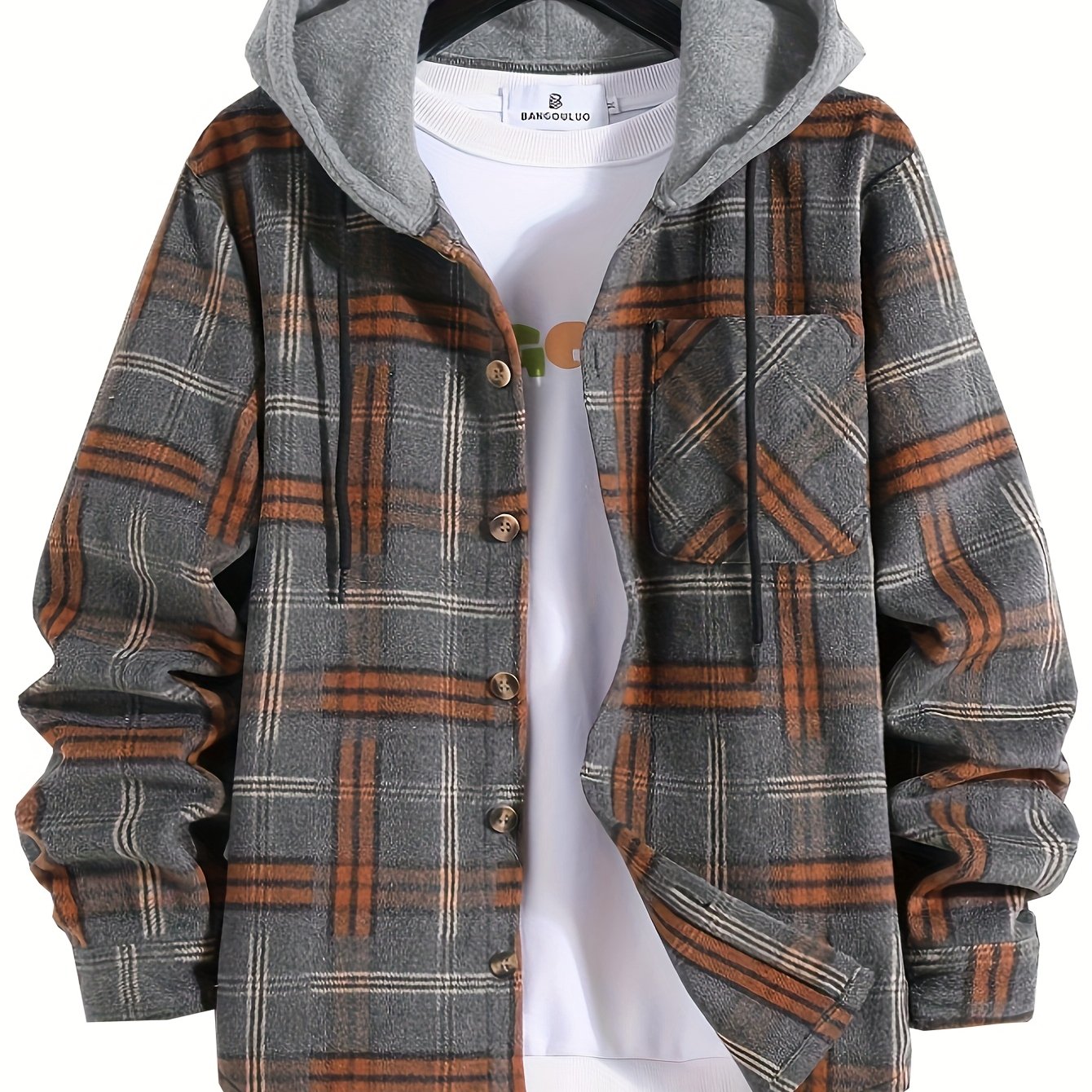 Мужская куртка-парка с капюшоном и длинными рукавами в клетку для осенней повседневной теплой верхней одежды