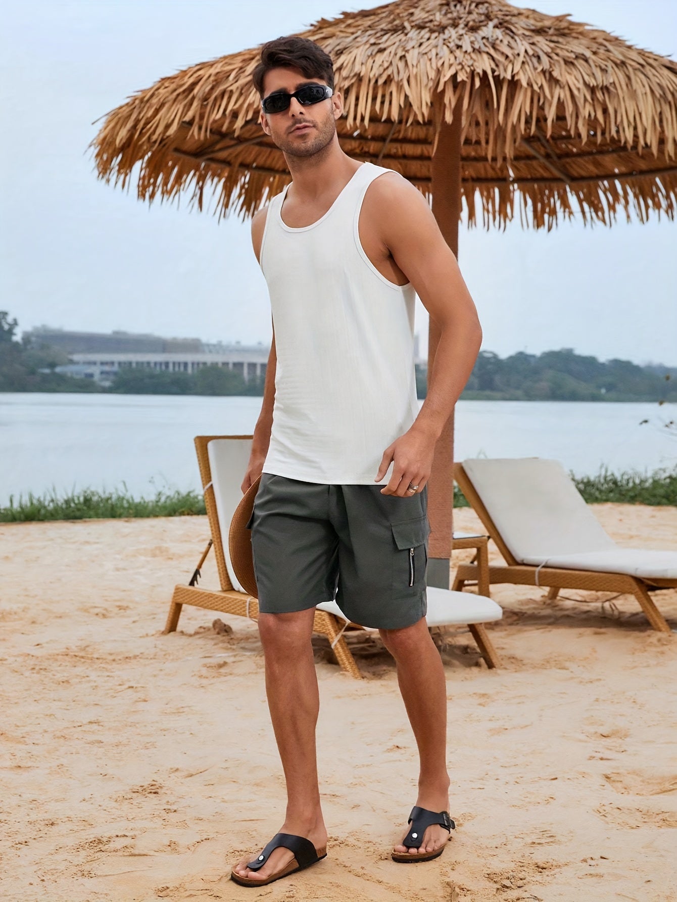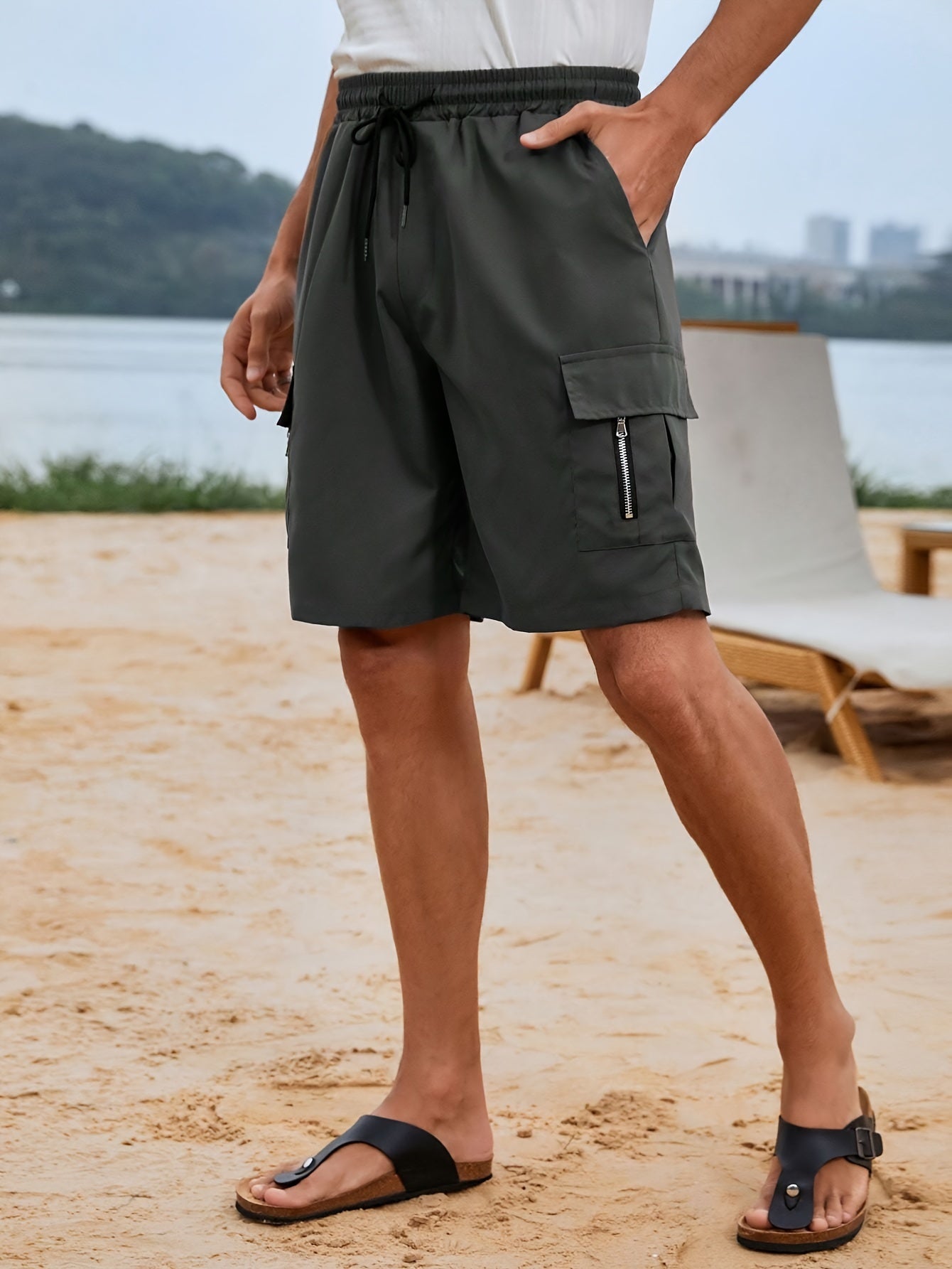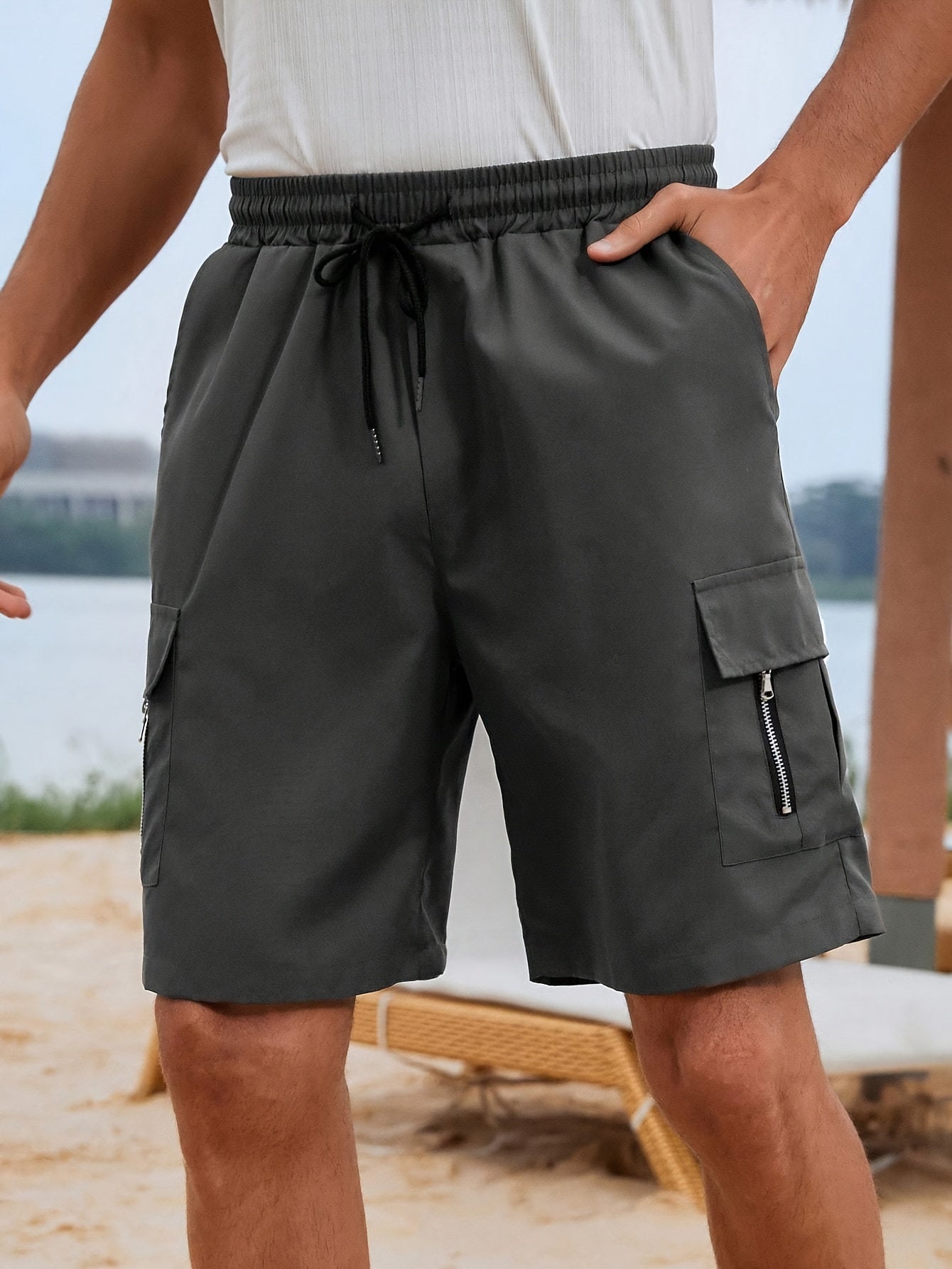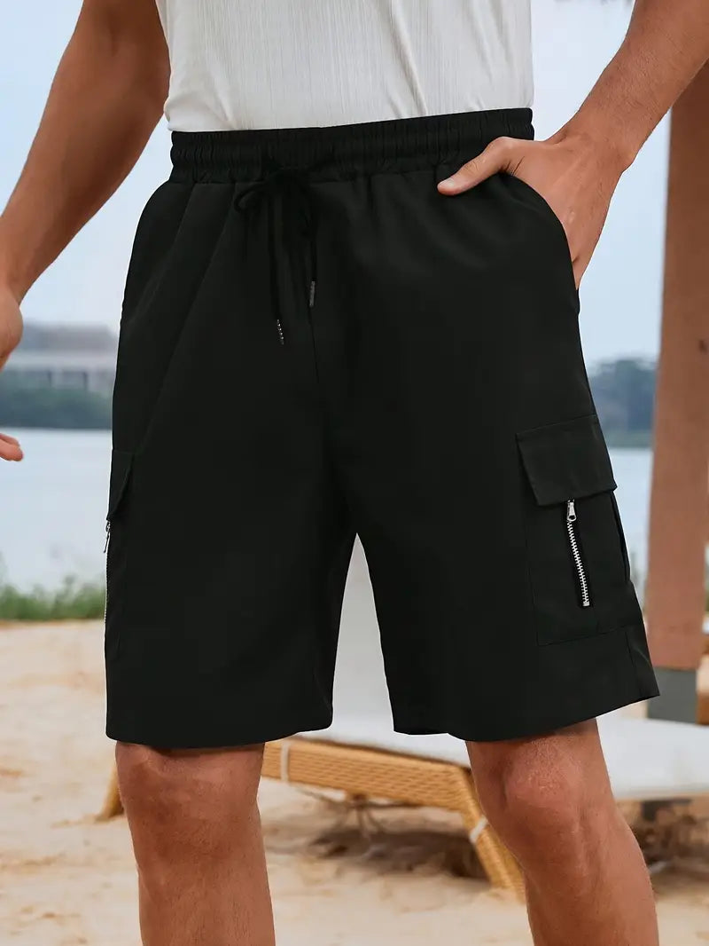 Мужские шорты карго большого размера из прочной тканой ткани с карманами, шнурком на поясе