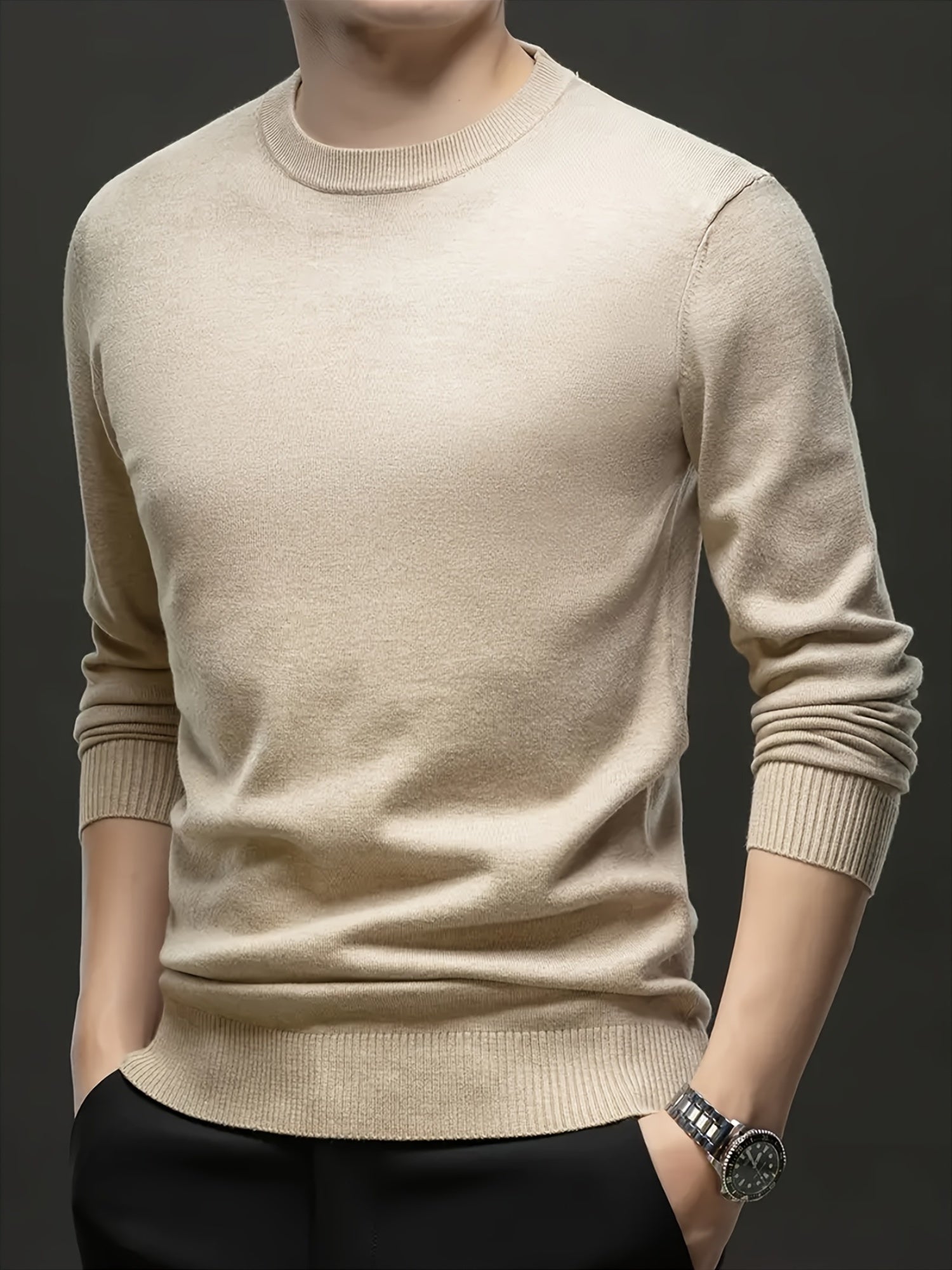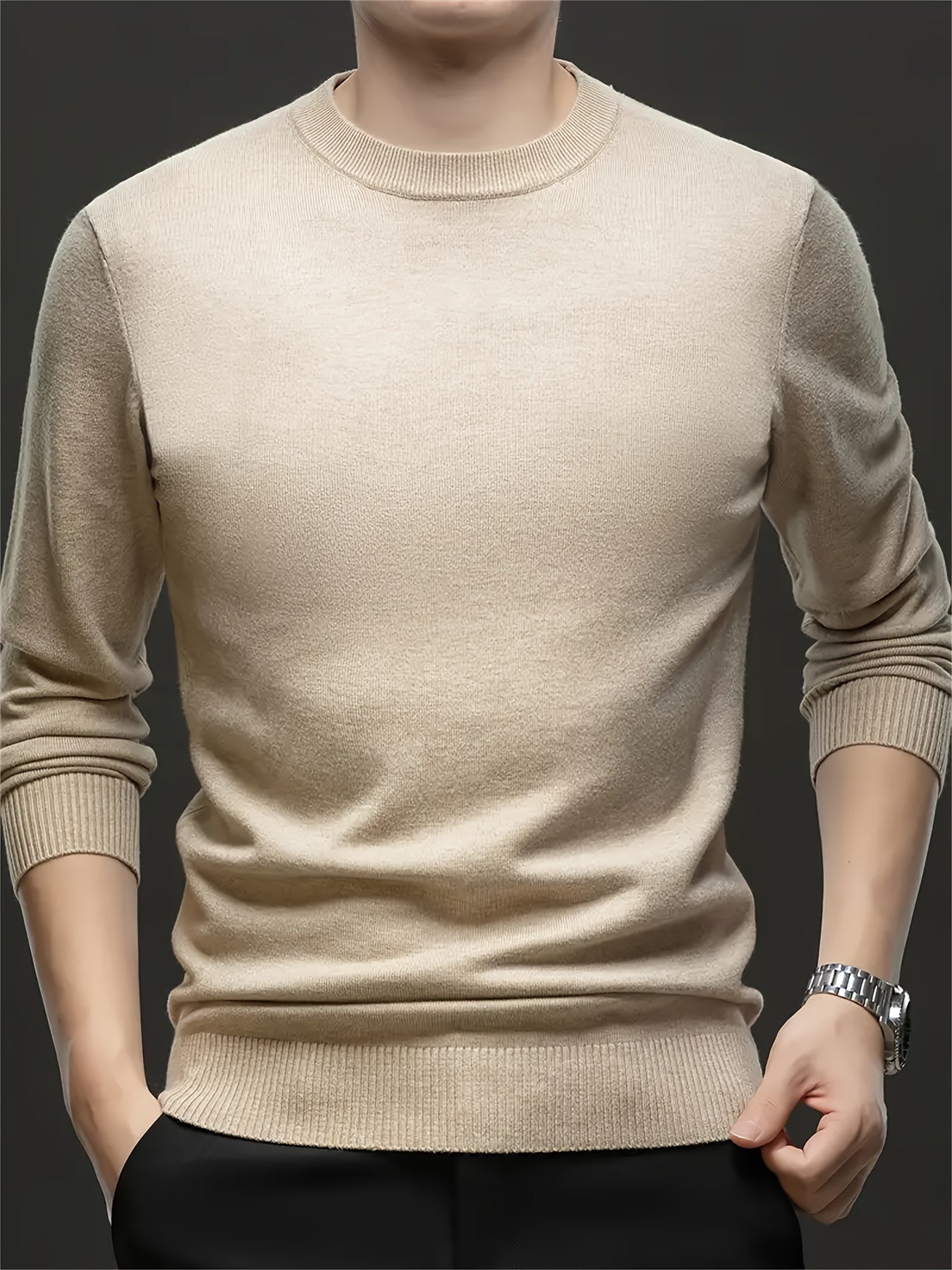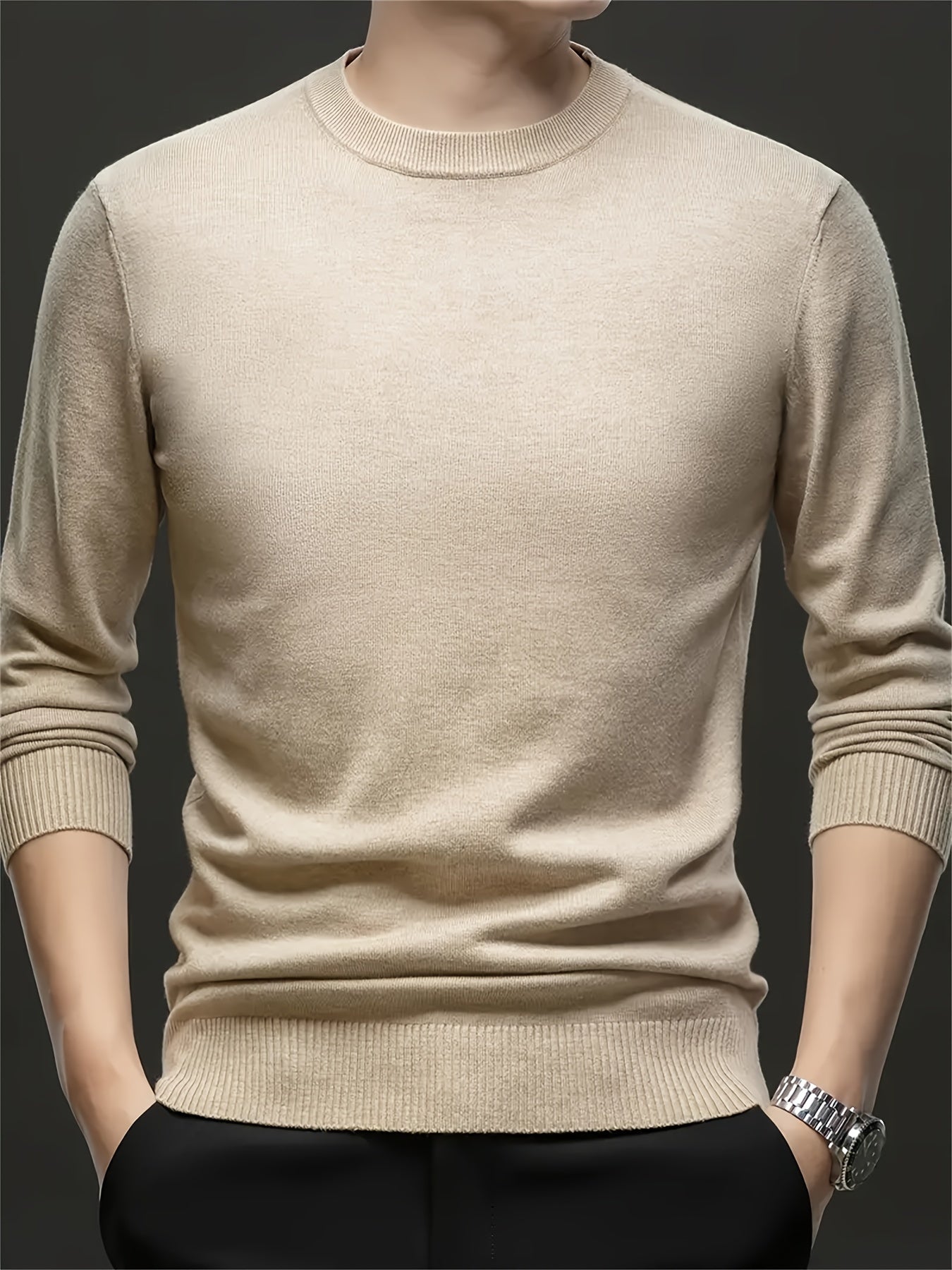 Мужской свитер с круглым вырезом из кашемира большого размера для осени и зимы, с высокой эластичностью, мягкий вязаный