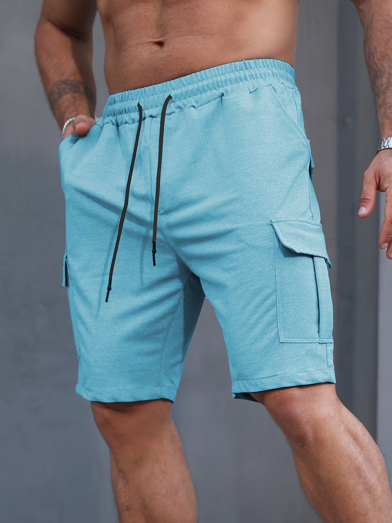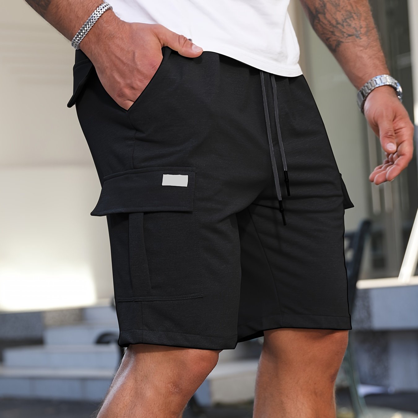 Мужские шорты карго большого размера, лето, свободный крой, полиэстер, однотонные, повседневные
