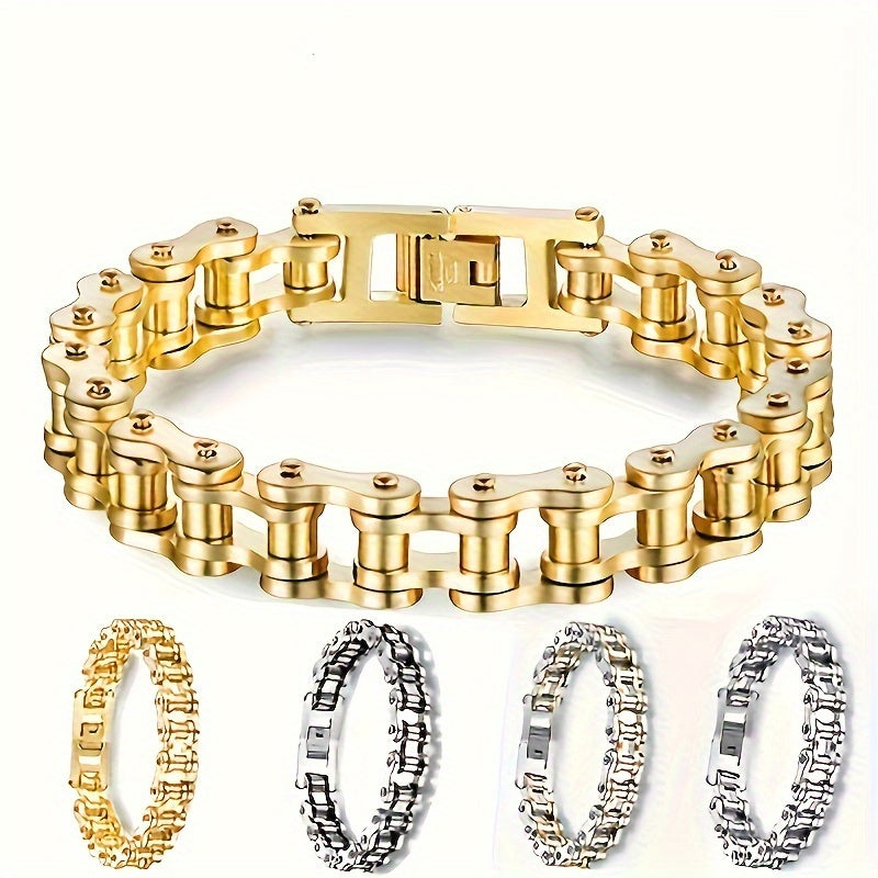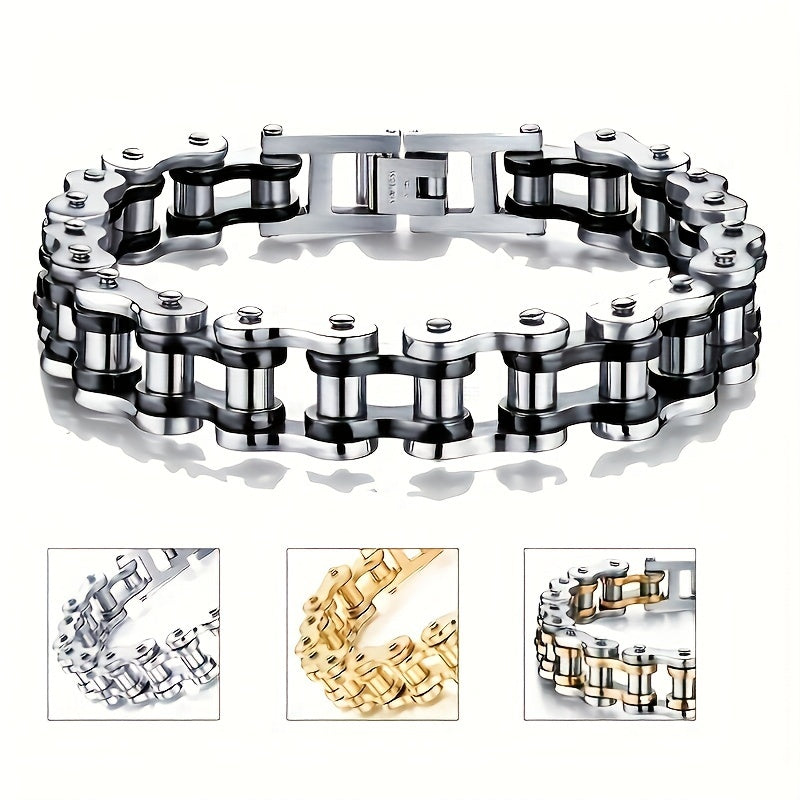 "Мужской панк-хип-хоп браслет из нержавеющей стали в виде мотоциклетной цепи - креативные украшения для стильных ПК"