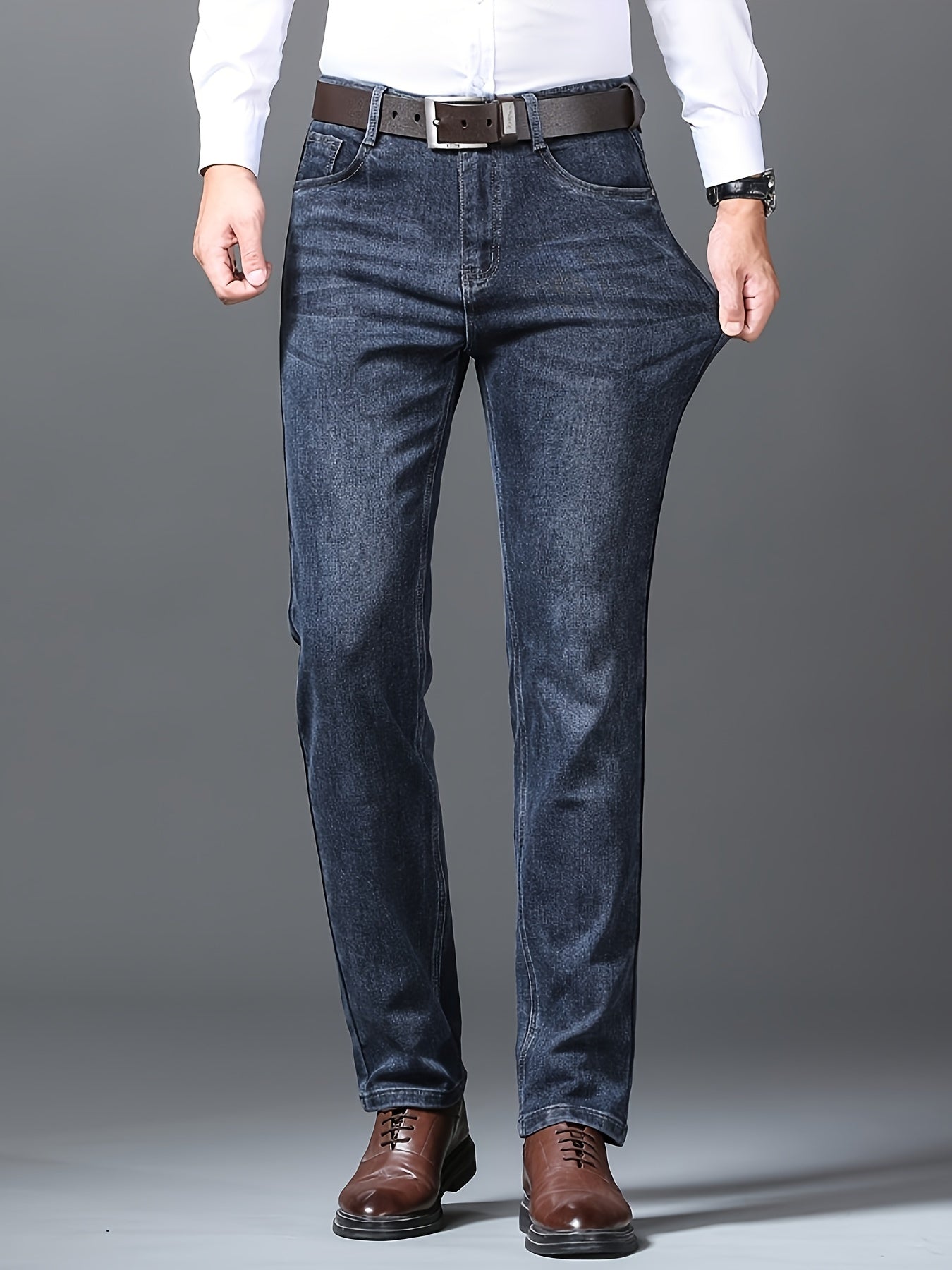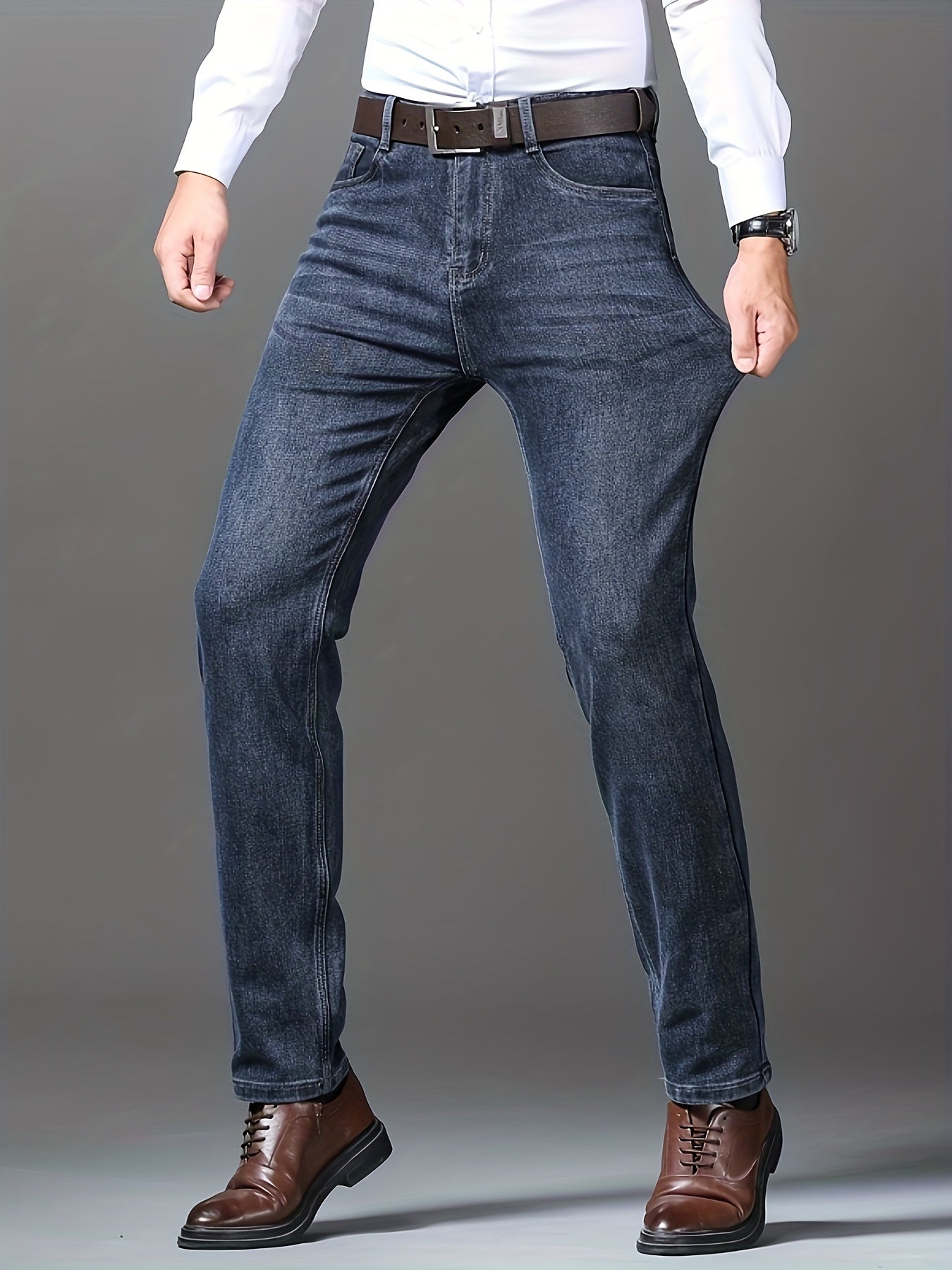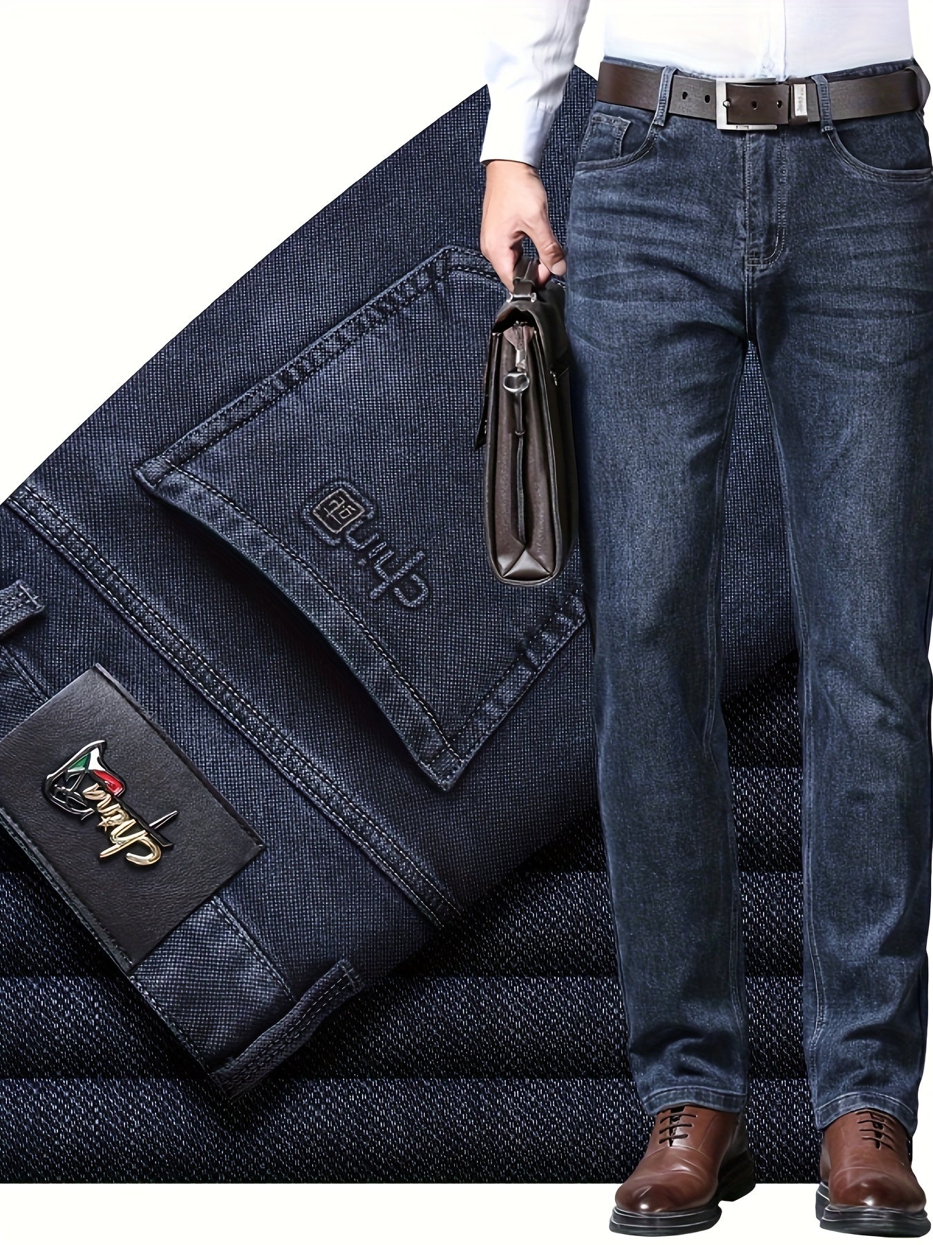 Мужские джинсы с прямыми штанинами из эластичного материала для осени и зимы, деловой повседневный стиль