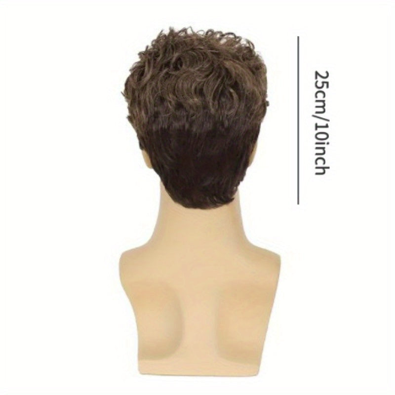 Мужская короткая кудрявая коричневая парик с классным стилем - пушистый и объемный синтетический аксессуар для волос, легкий в уходе, идеально подходит для повседневной носки и вечеринок