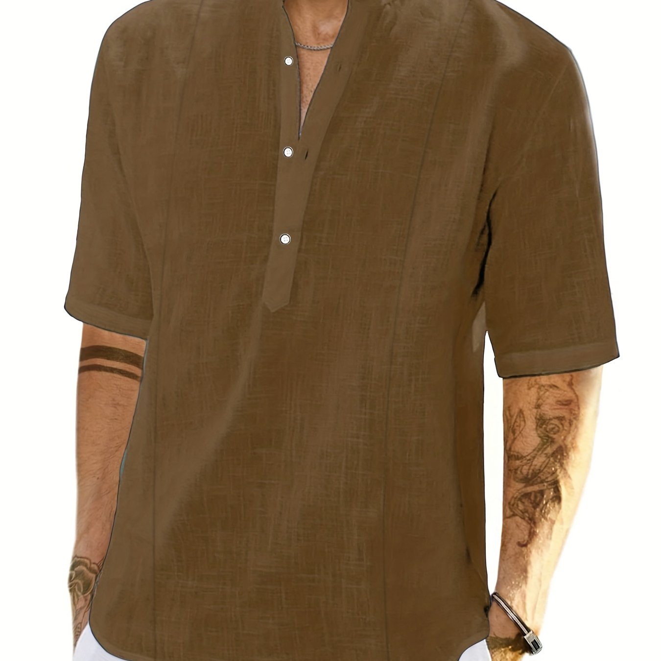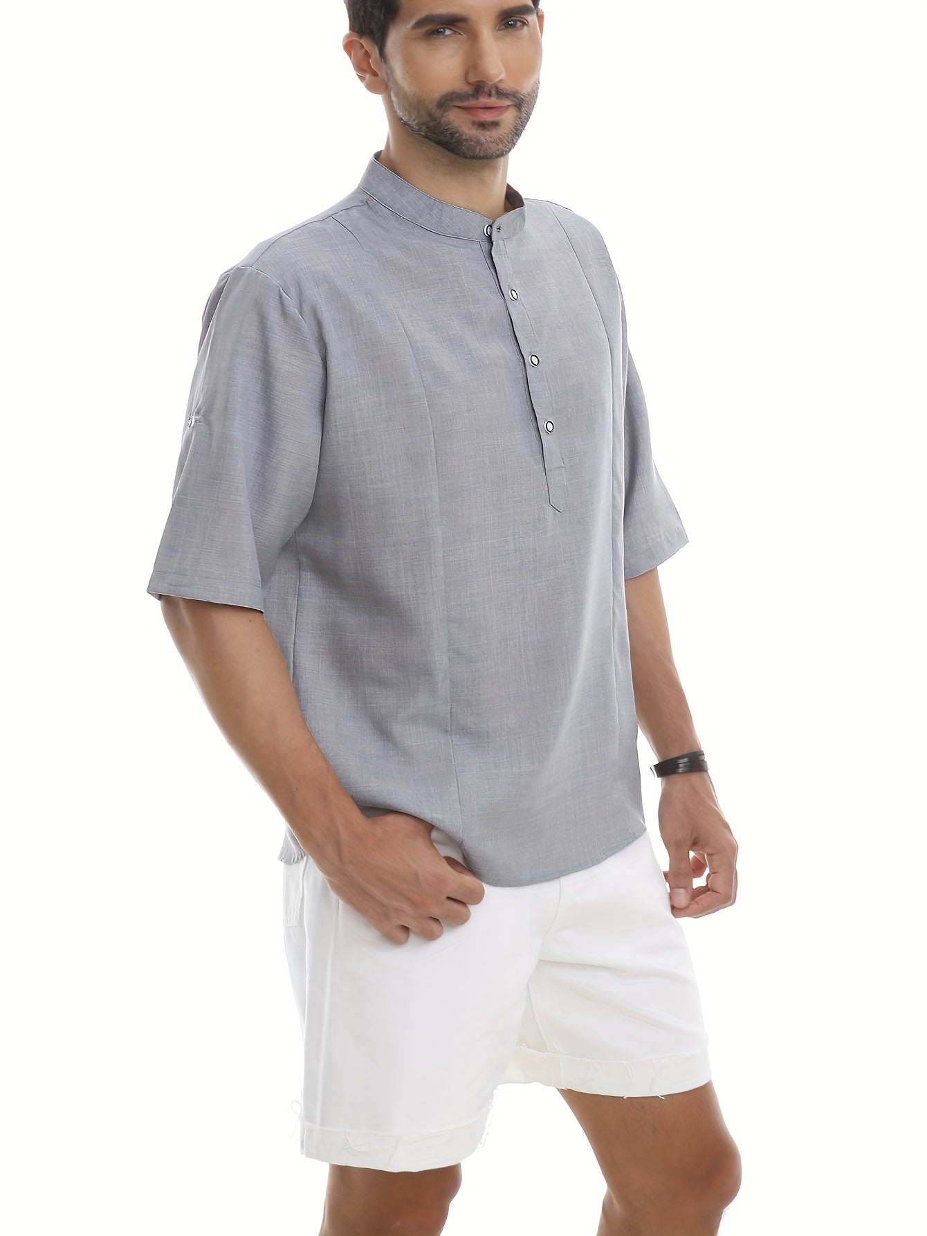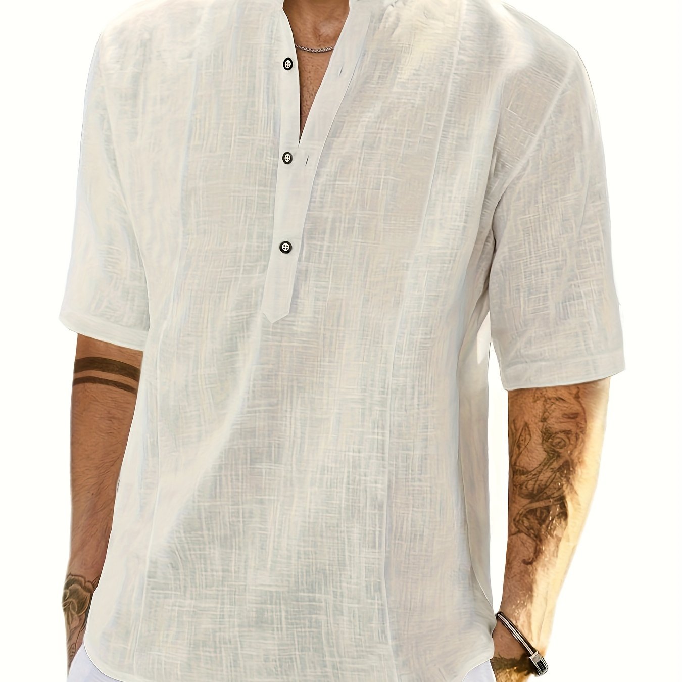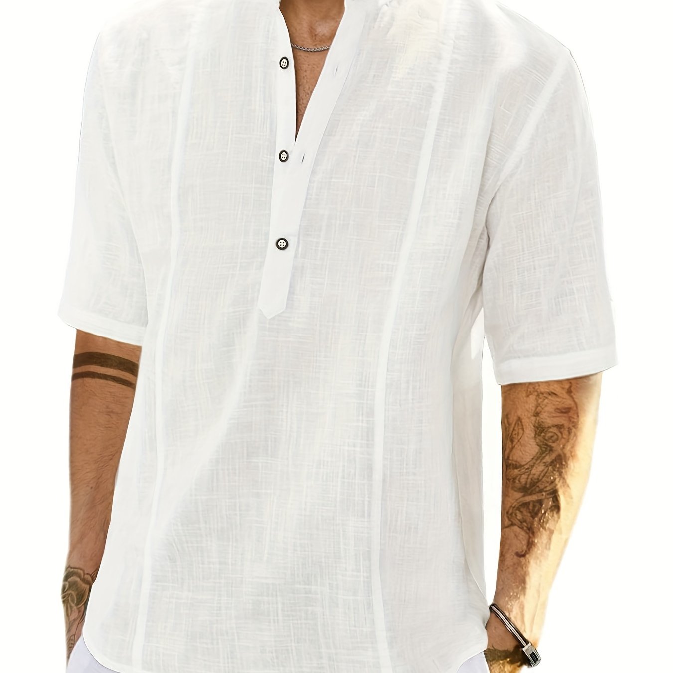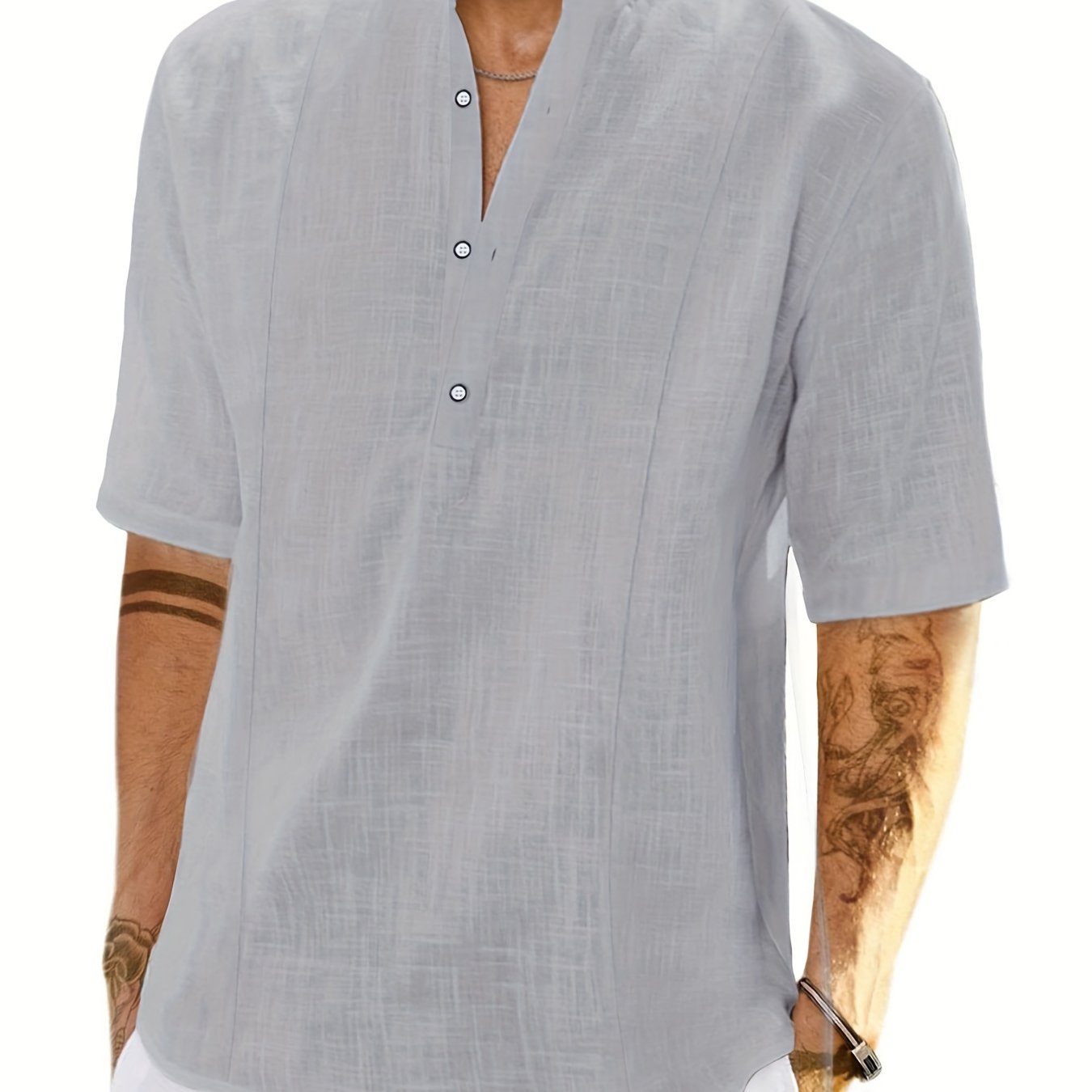 Мужская льняная хлопковая рубашка Henley темно-синего цвета для лета, повседневная, свободного кроя, увеличенного размера