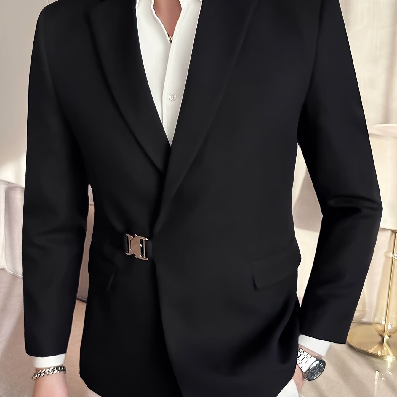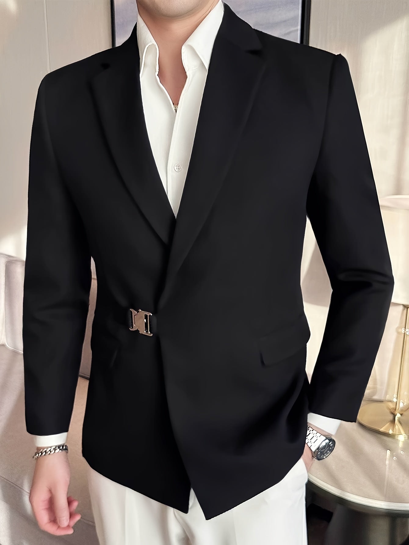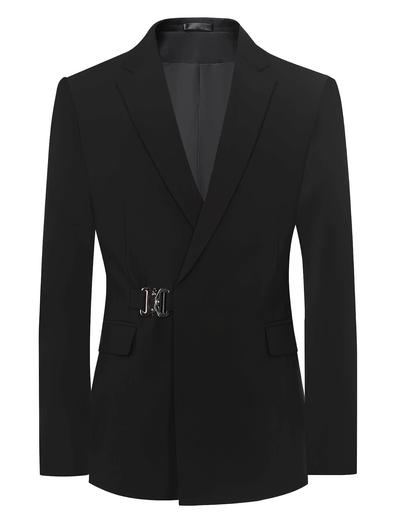 Мужской повседневный пиджак с металлической боковой пряжкой и однотонной полиэстеровой тканью