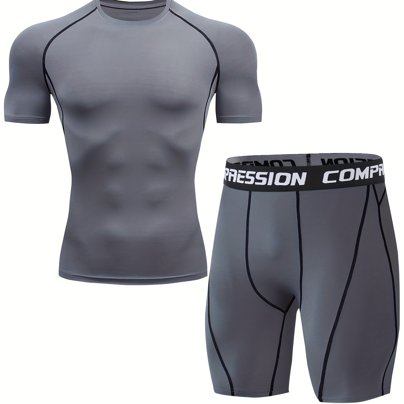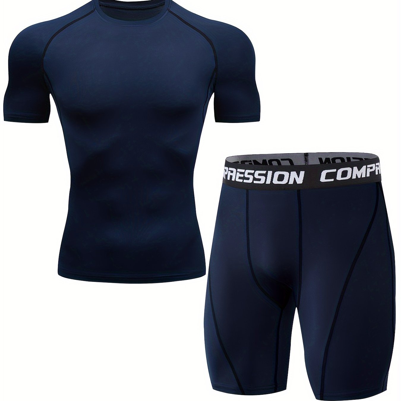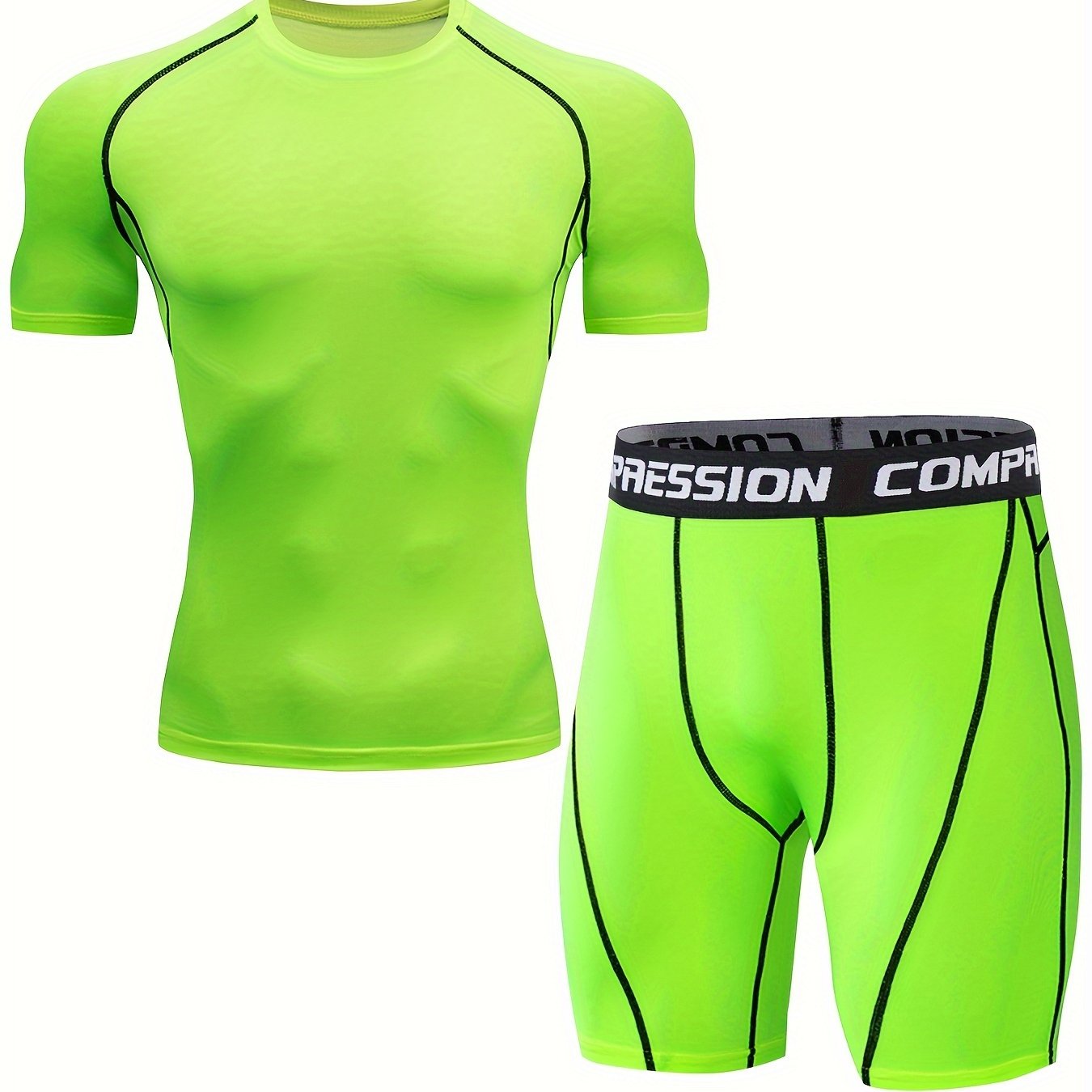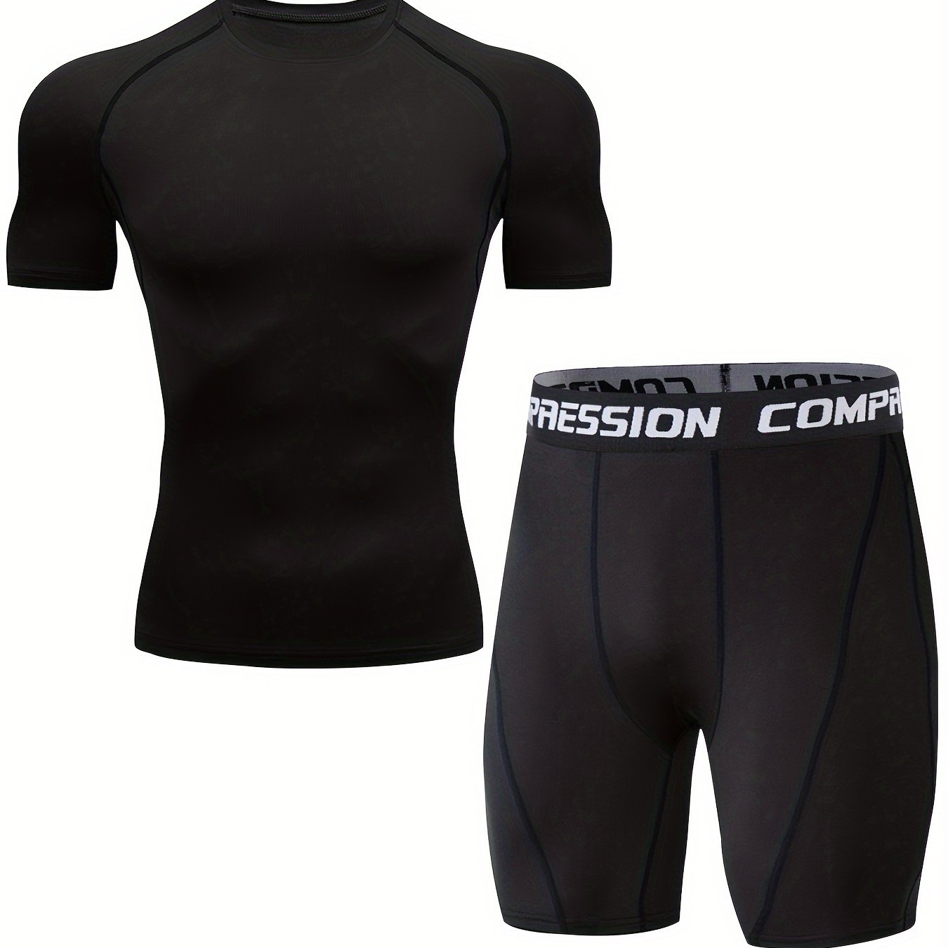 Мужской спортивный комплект для бега: футболка с коротким рукавом, компрессионная майка и шорты, быстро сохнущие, для фитнеса, йоги, тренажерного зала