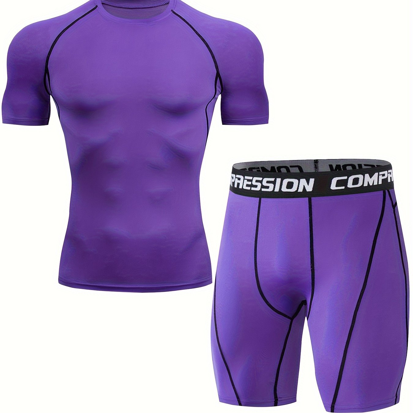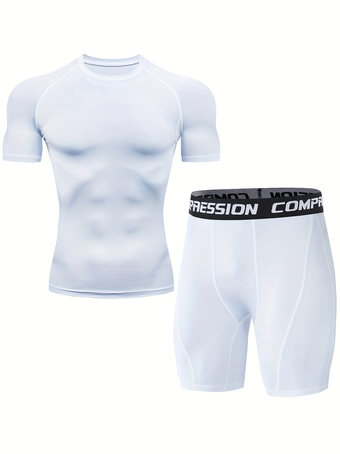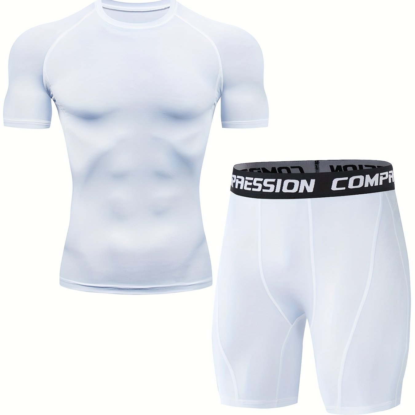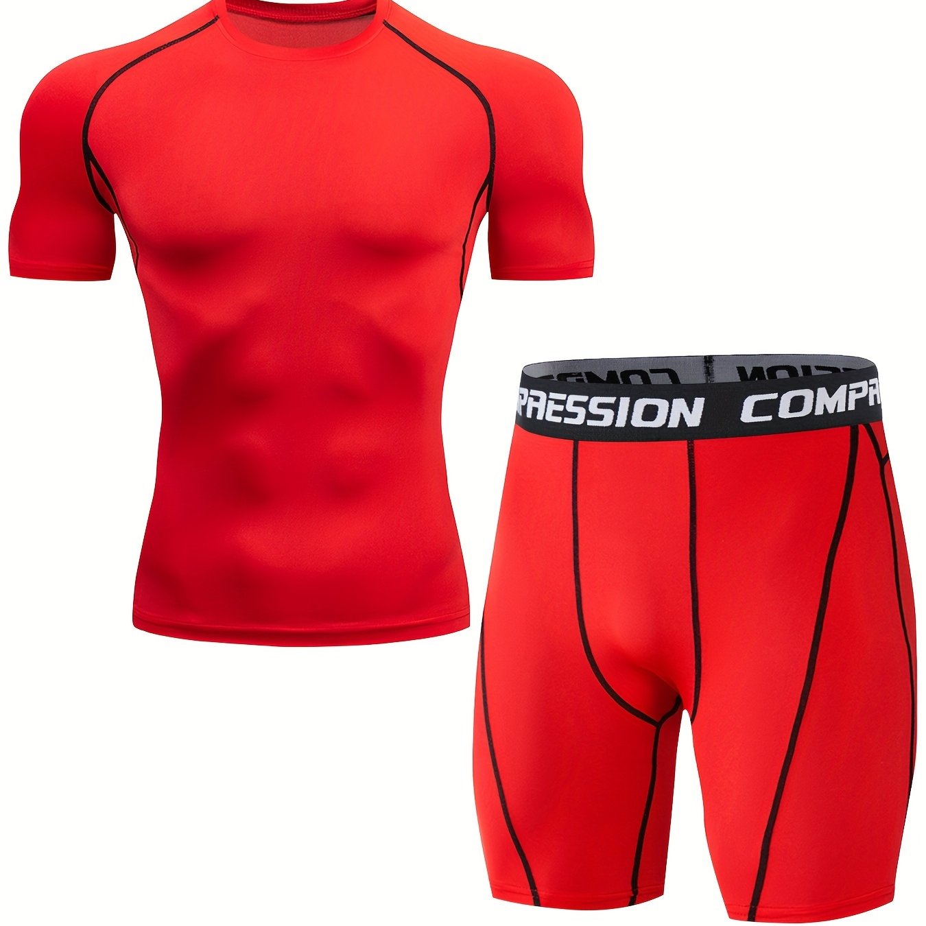 Мужской спортивный комплект для бега: футболка с коротким рукавом, компрессионная майка и шорты, быстро сохнущие, для фитнеса, йоги, тренажерного зала
