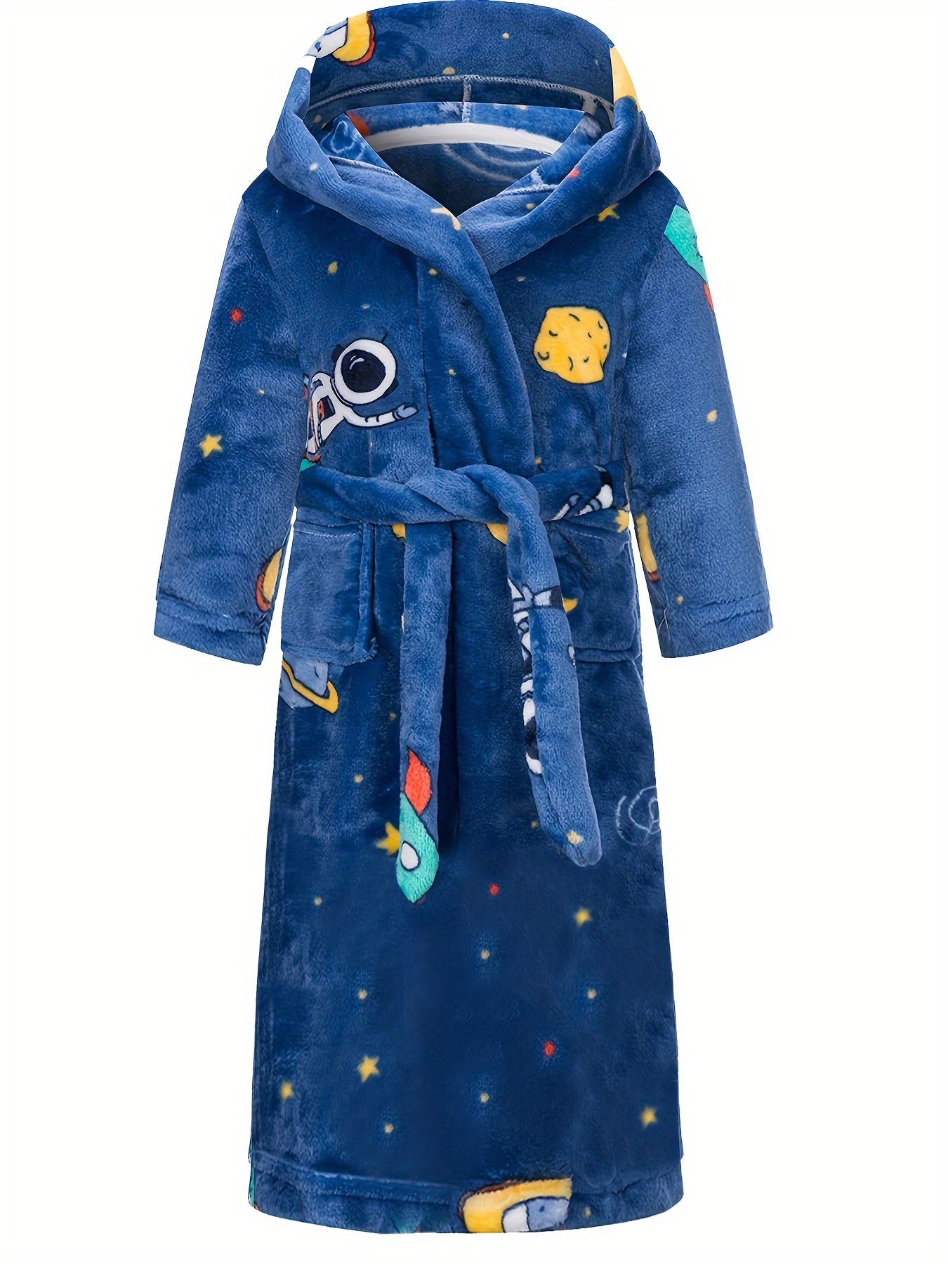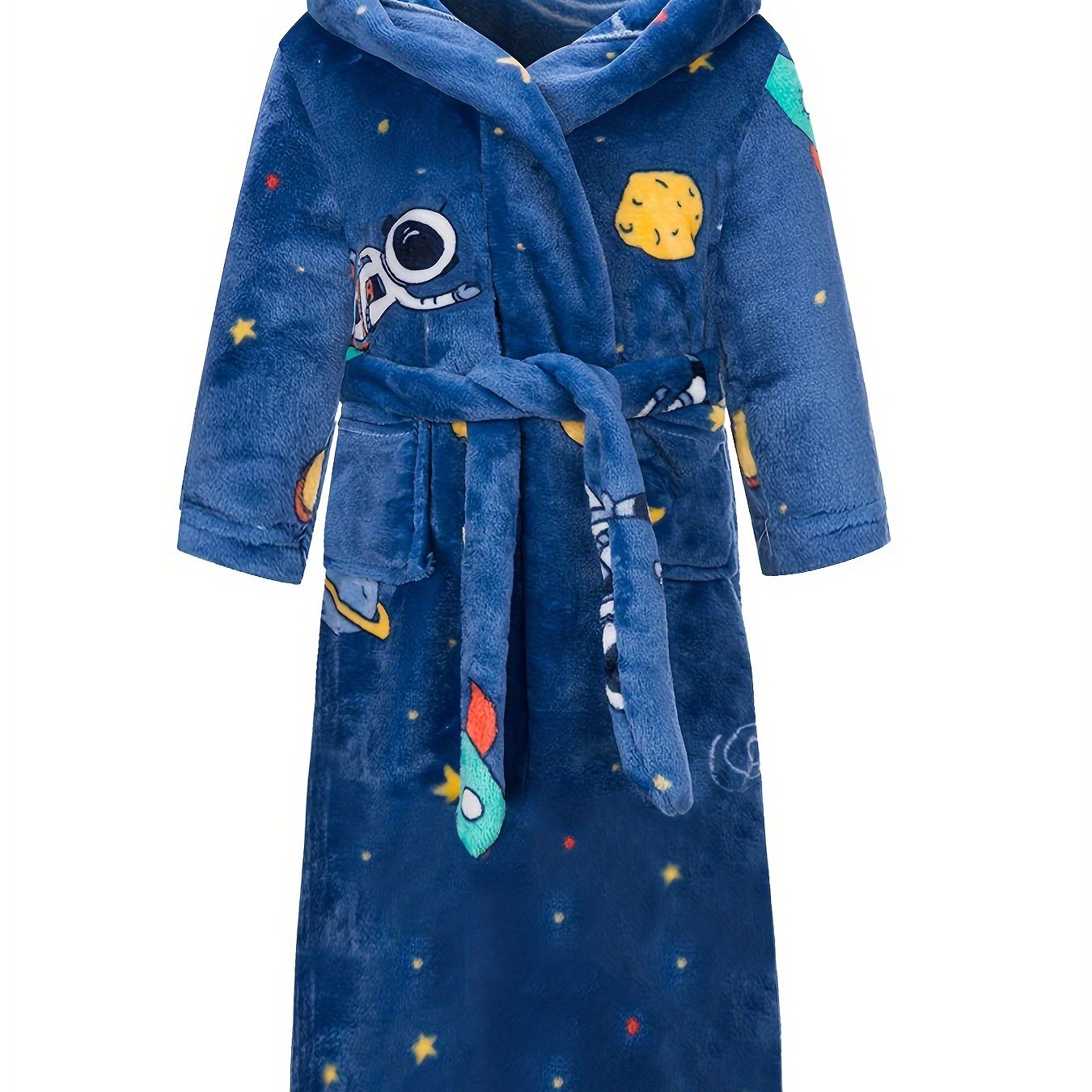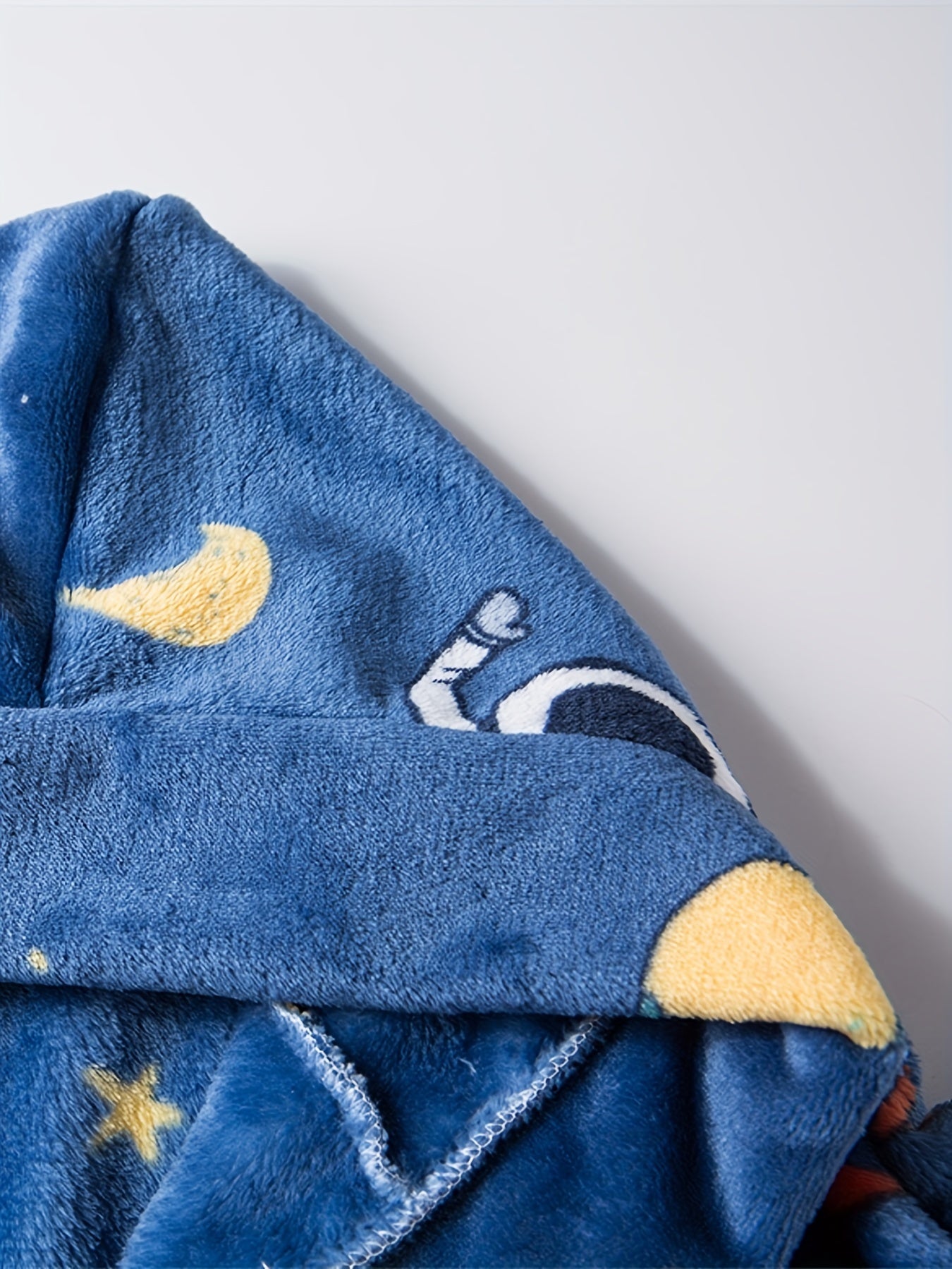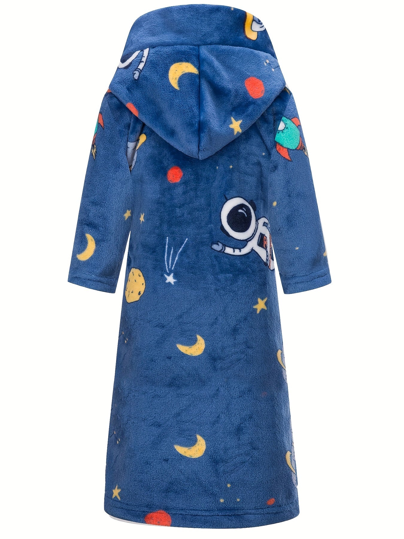 Мужской халат из фланели с капюшоном, с космическим узором и коралловым флисом, домашняя одежда