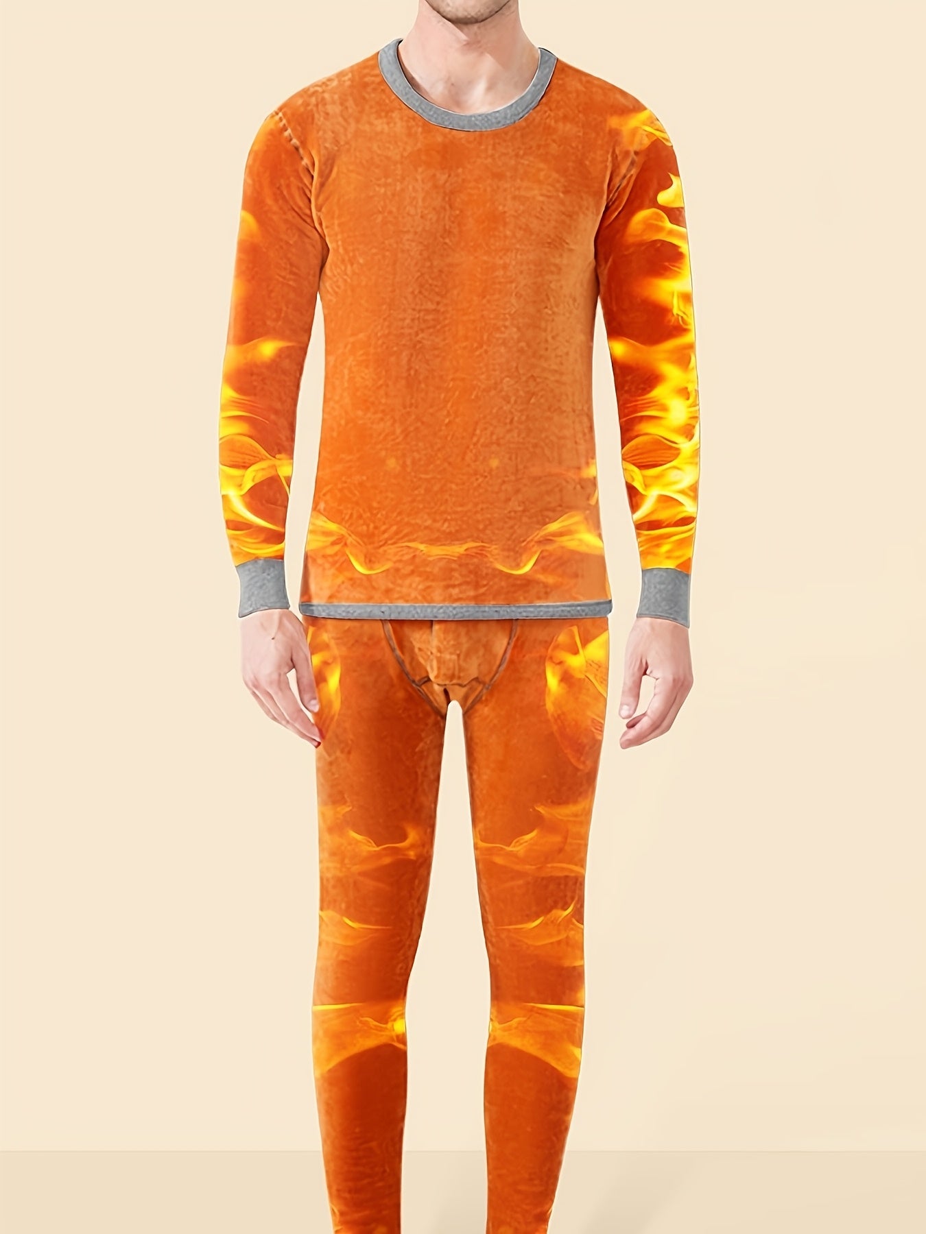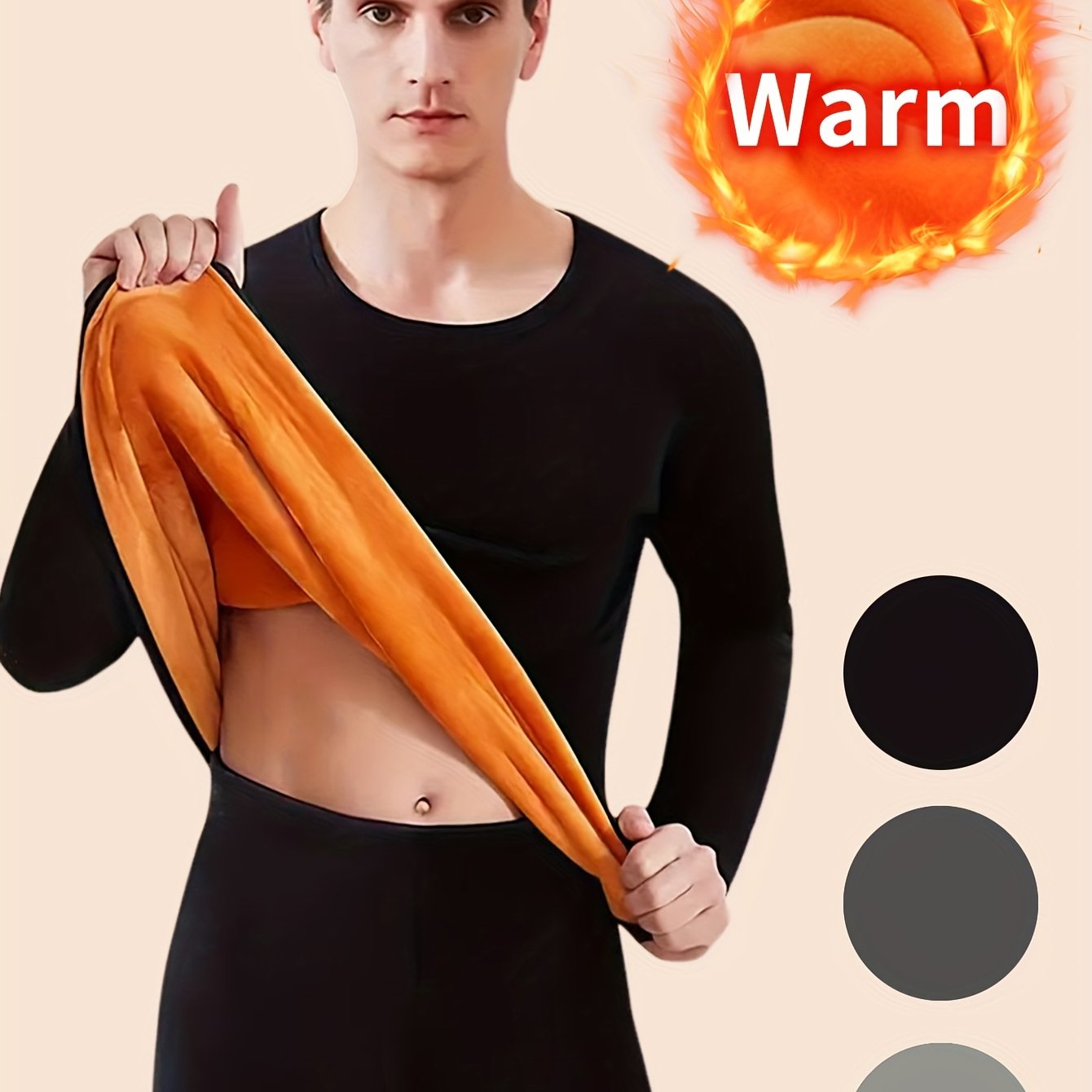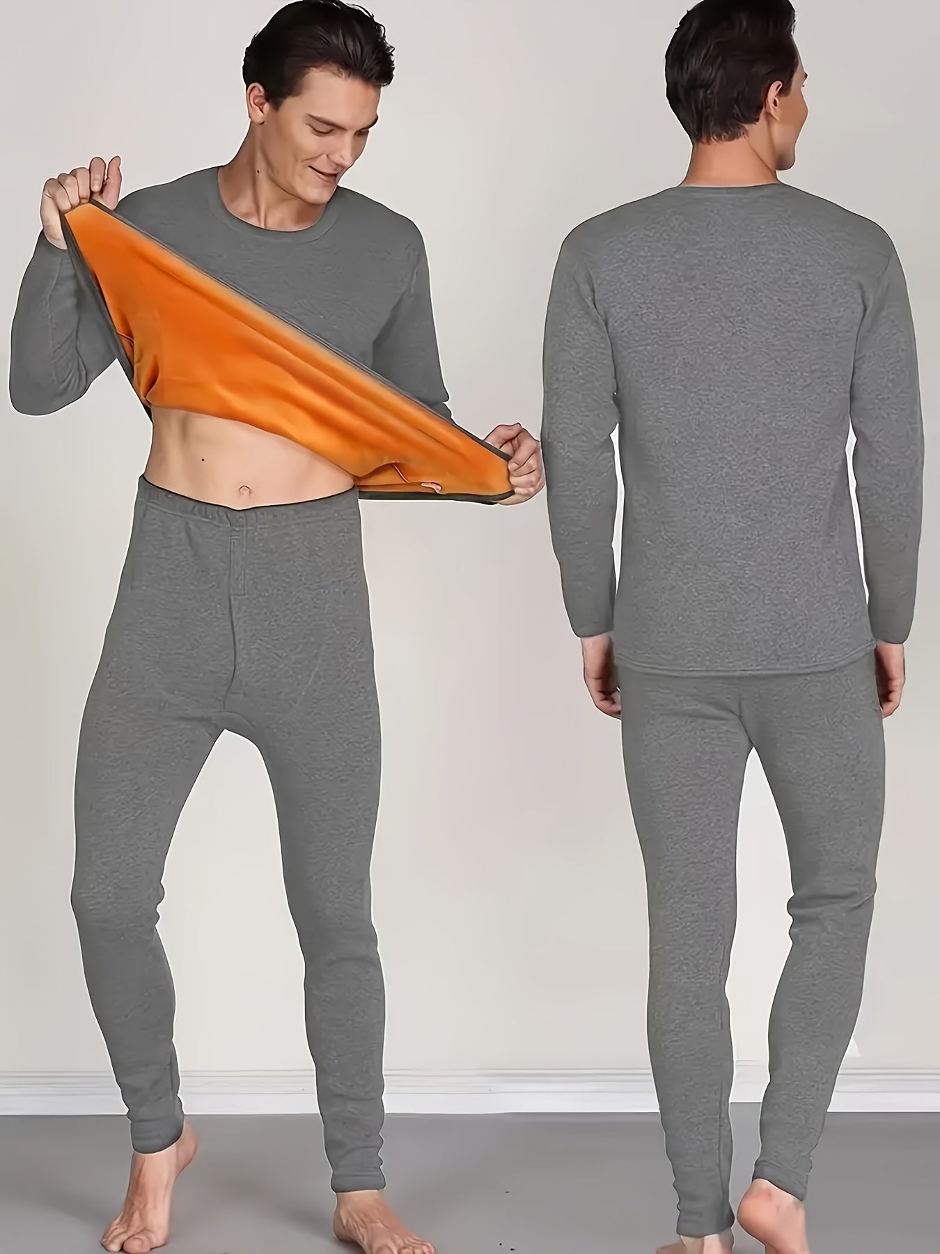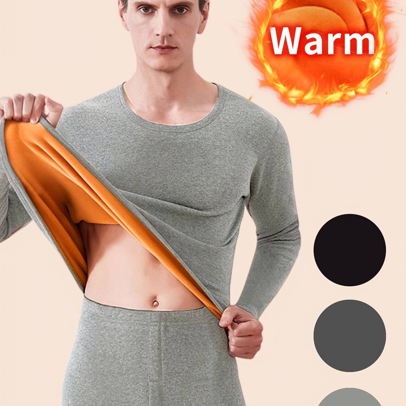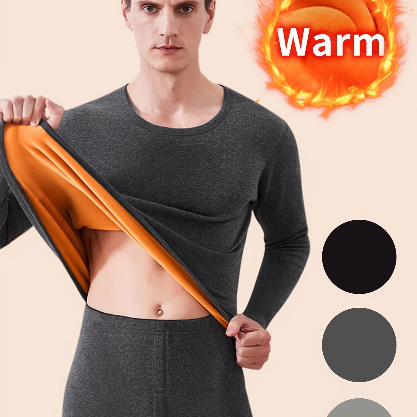 Мужской зимний флисовый пижамный комплект с круглым вырезом, однотонная трикотажная ткань, узкие штаны