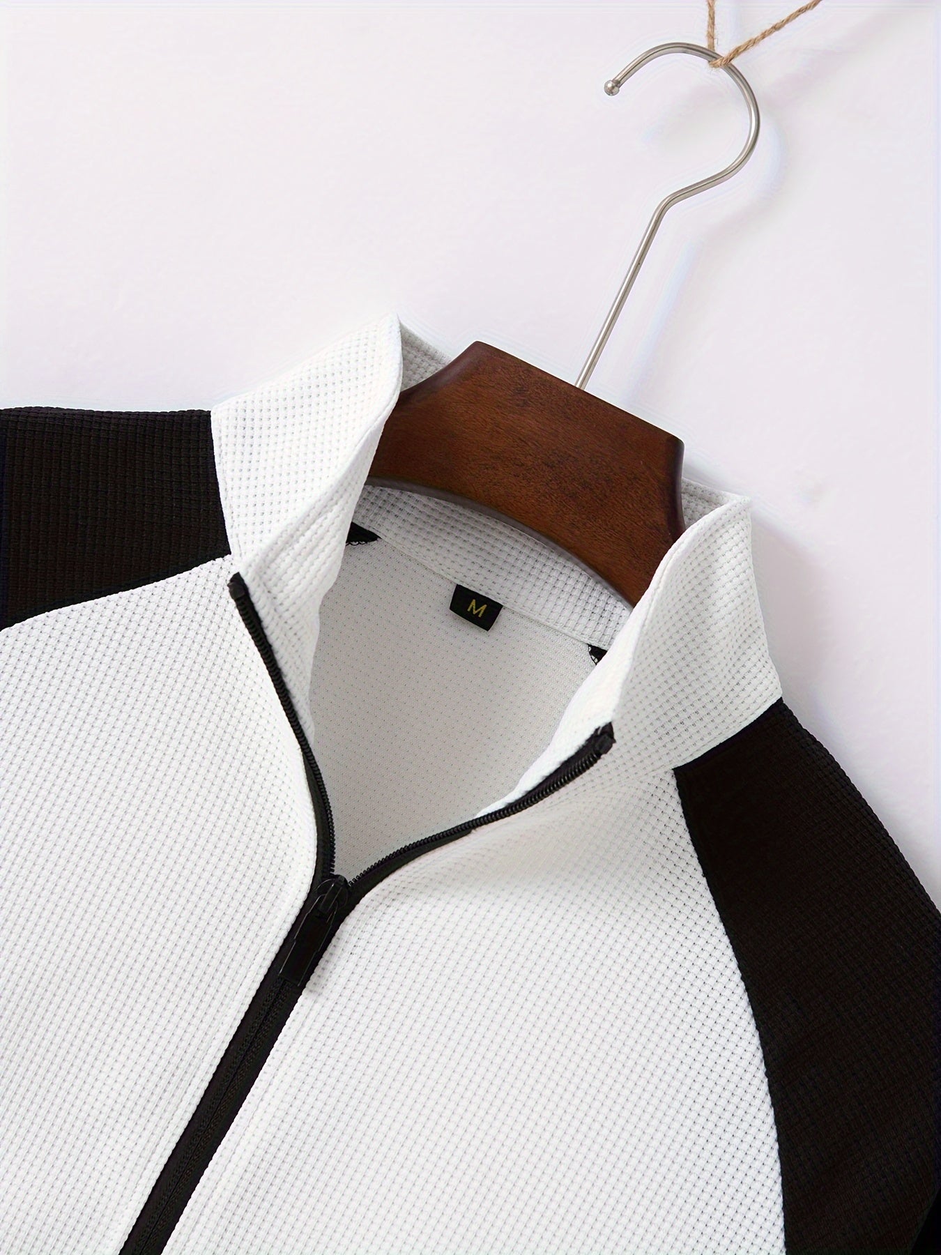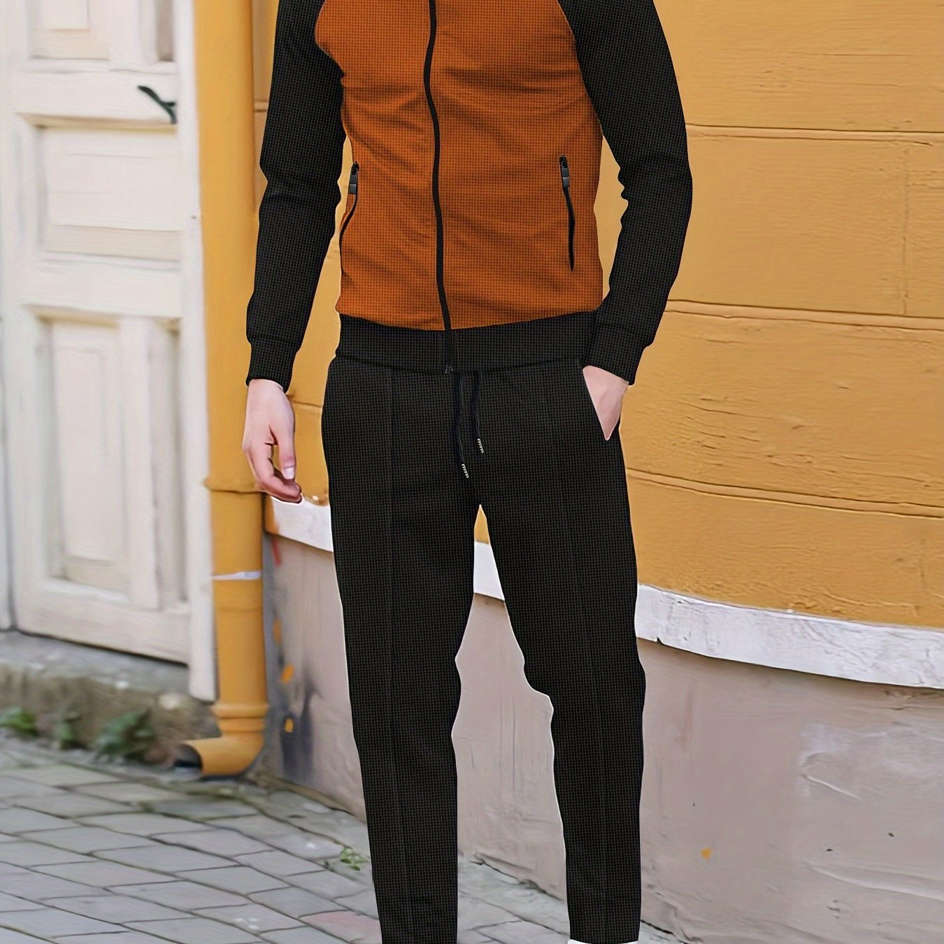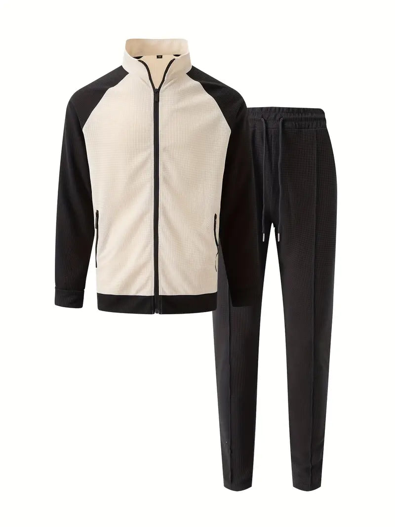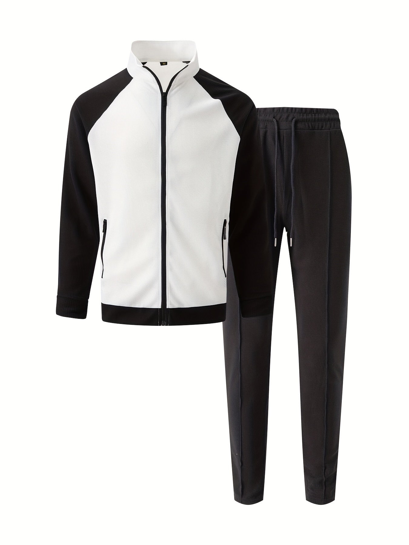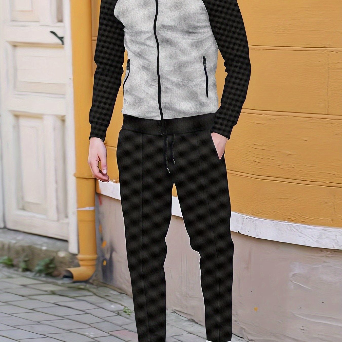 Мужской спортивный костюм из полиэстера: куртка на молнии и джоггеры, весна-осень, цветовые блоки