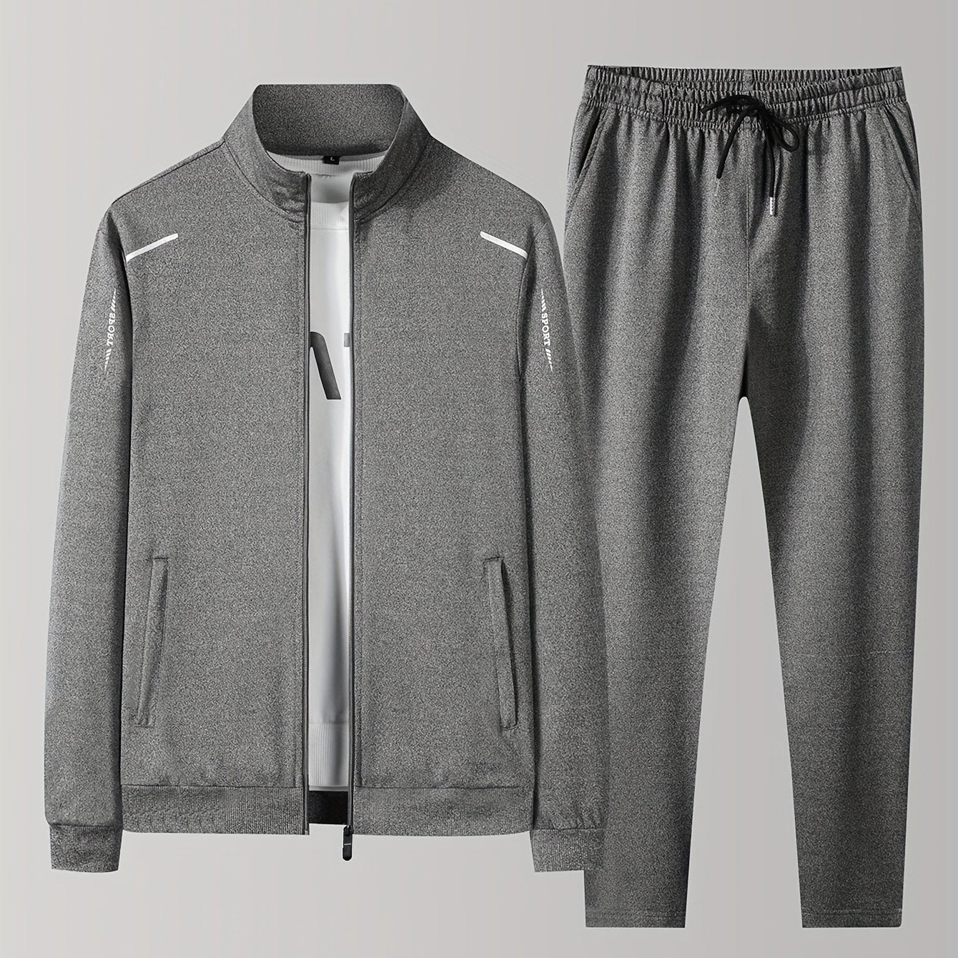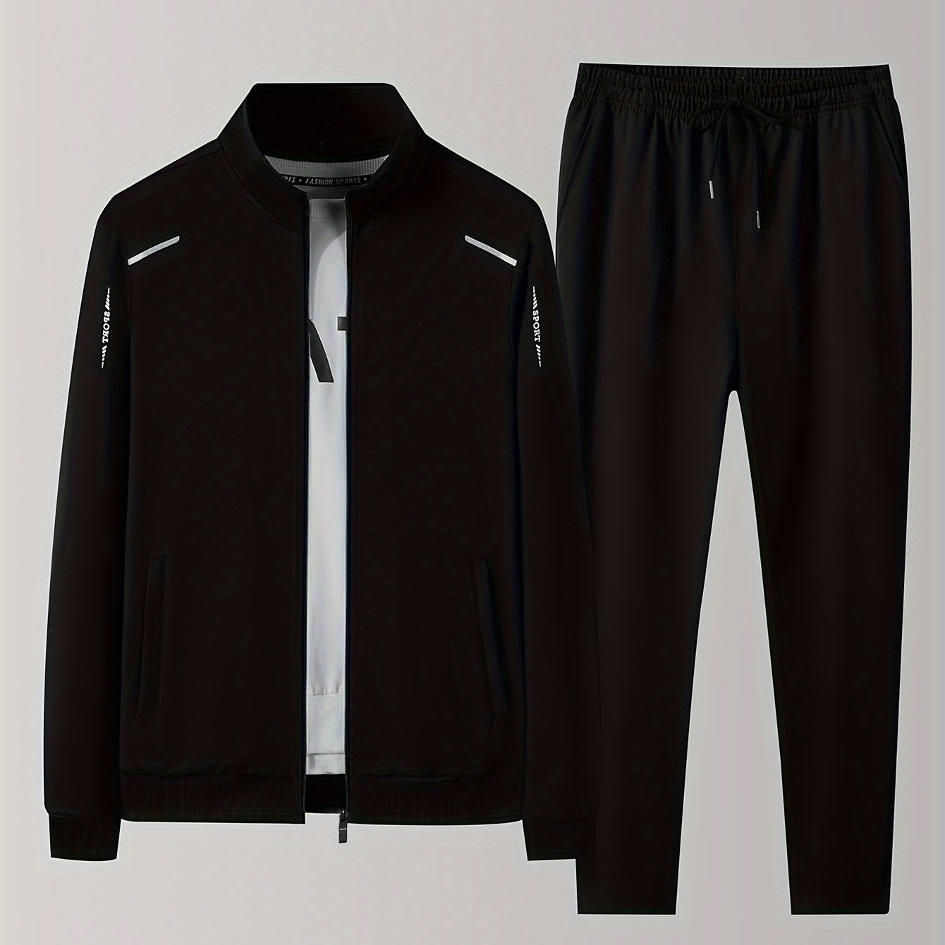 Мужской комплект куртки на молнии и спортивных штанов для весны и осени, полиэстер, однотонный, классический крой