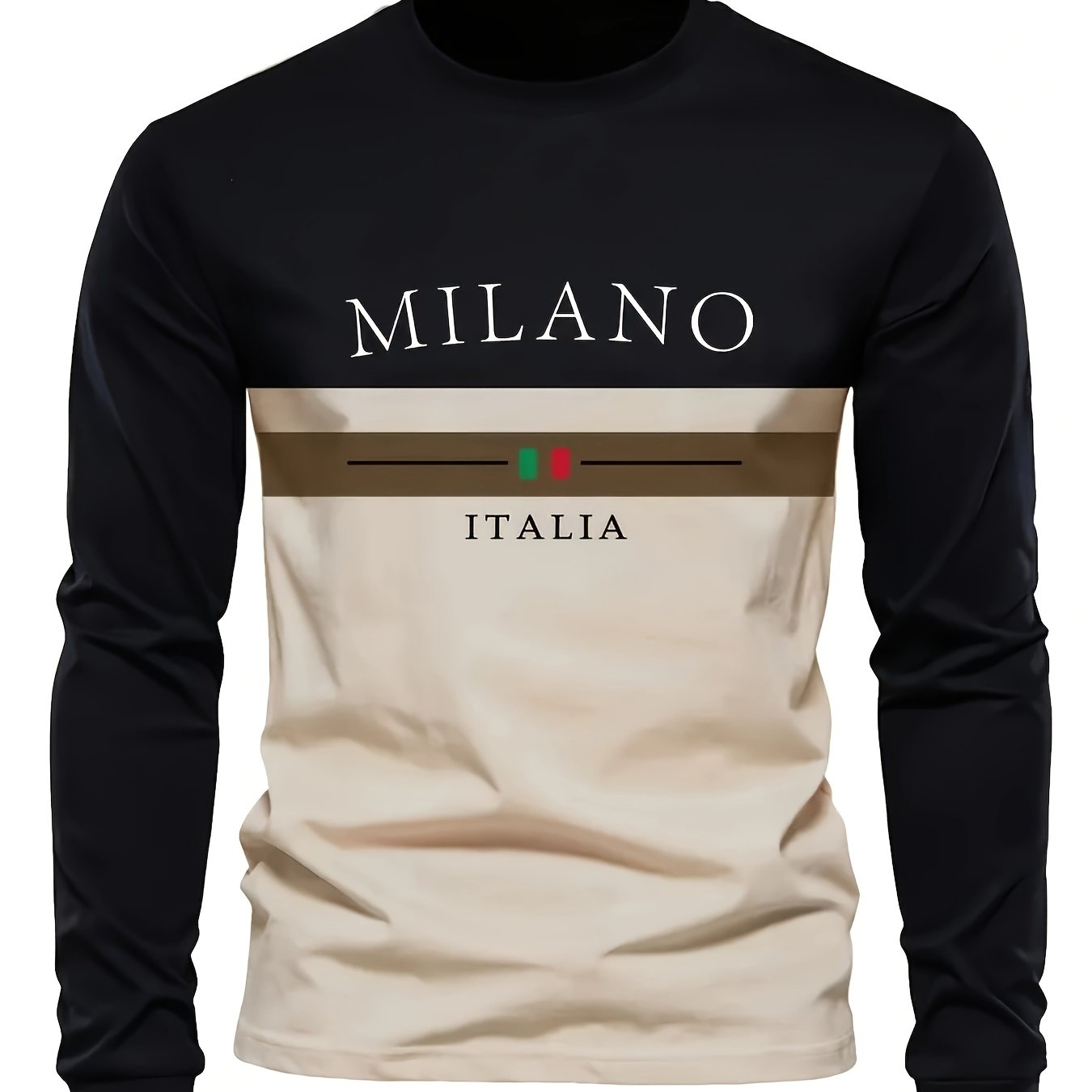 Мужская футболка с длинным рукавом и графическим принтом, полиэстер, круглый вырез, алфавитный узор, повседневная