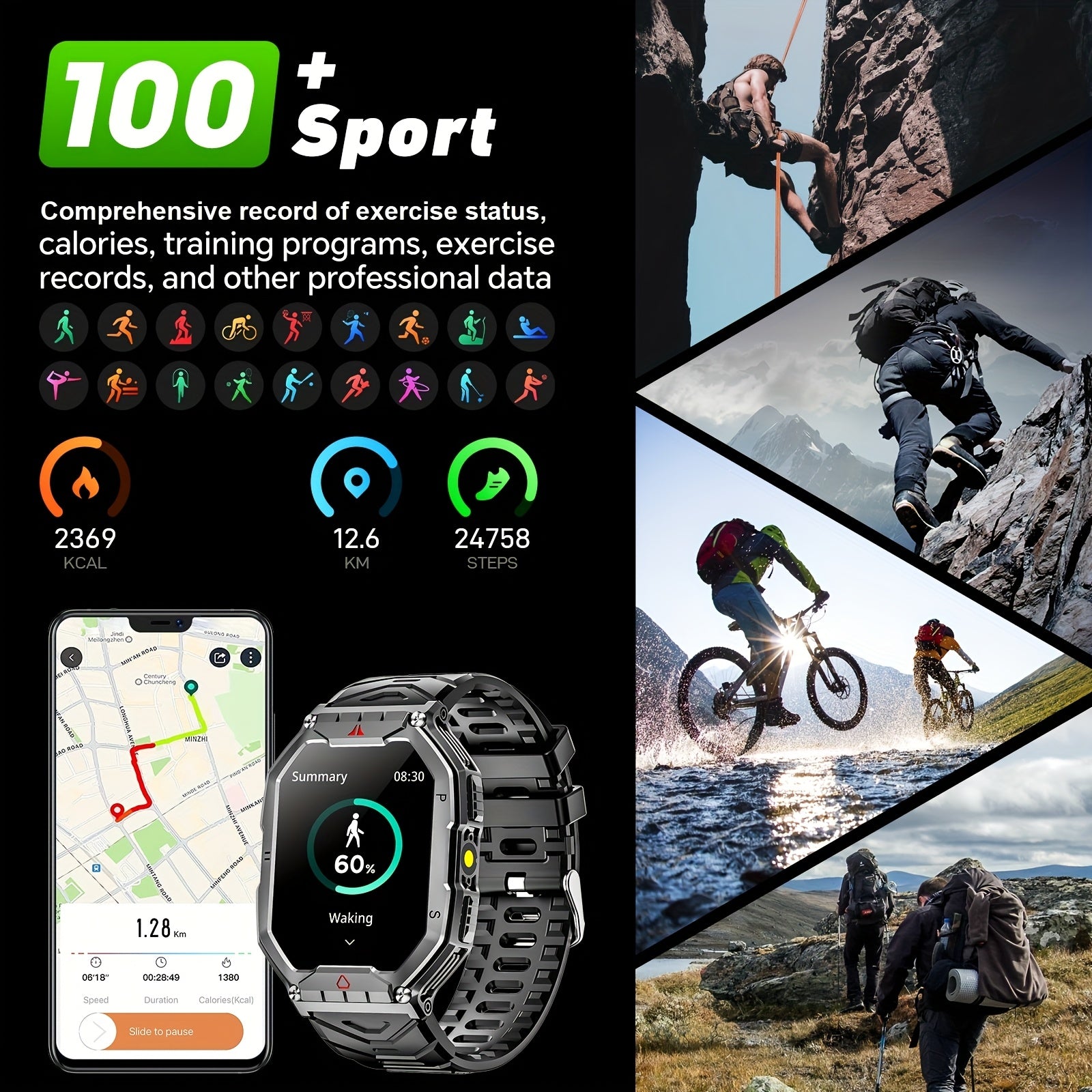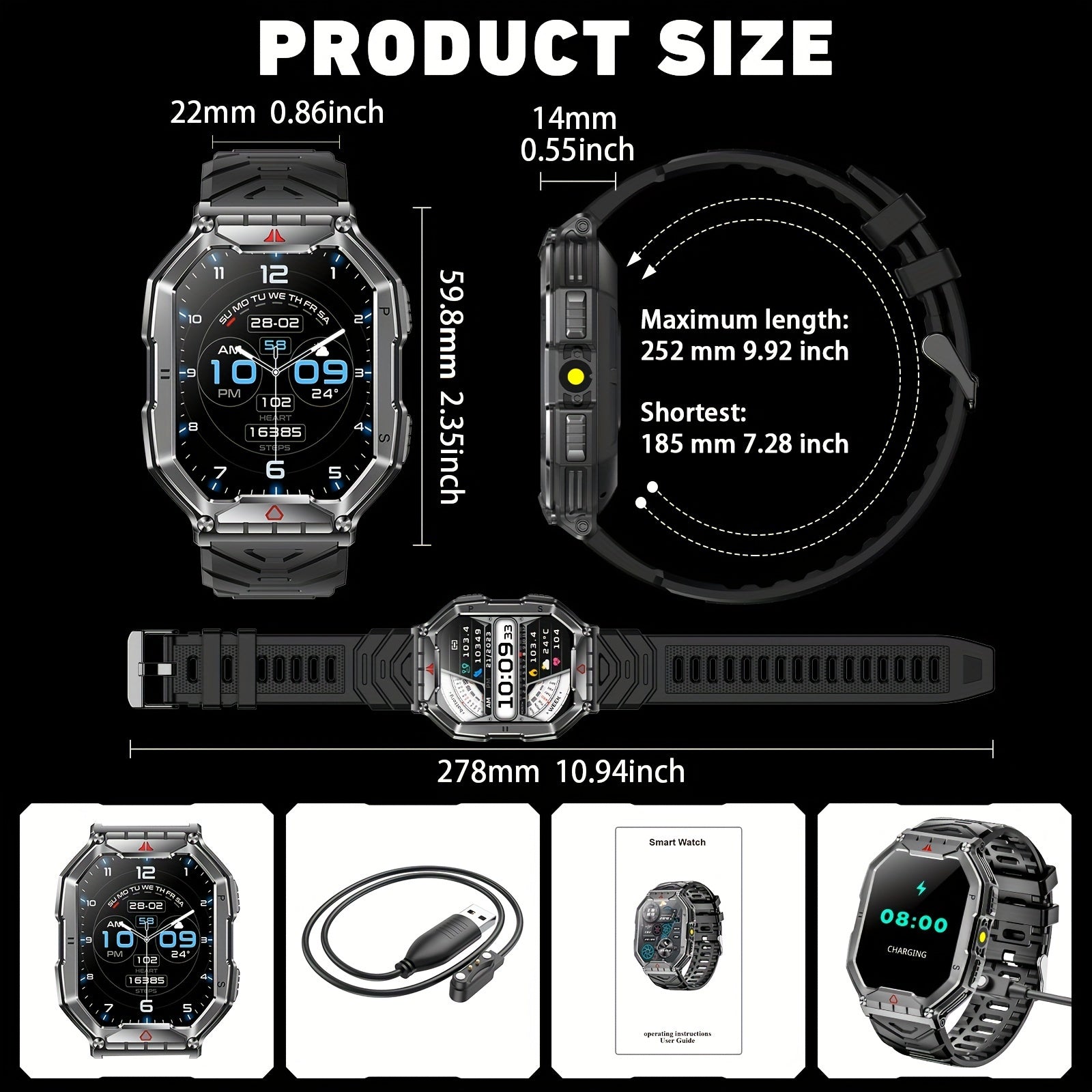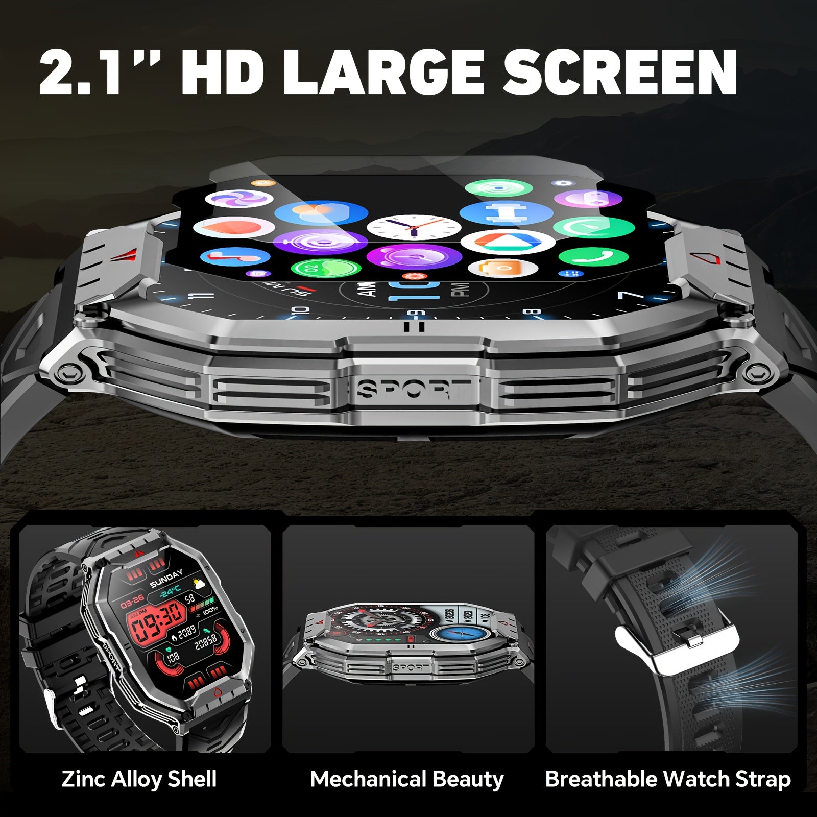 Мужские умные часы с полным сенсорным экраном 2,1 дюйма, фитнес-трекером и беспроводными звонками