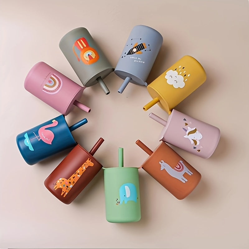 Мини 6 унций водяной стакан с соломинкой и крышкой для детей, портативный небьющийся тренировочный стакан для первого опыта питья воды у малышей. Изготовлен из силикона пищевого качества, без BPA, идеальный пасхальный подарок для начинающих.