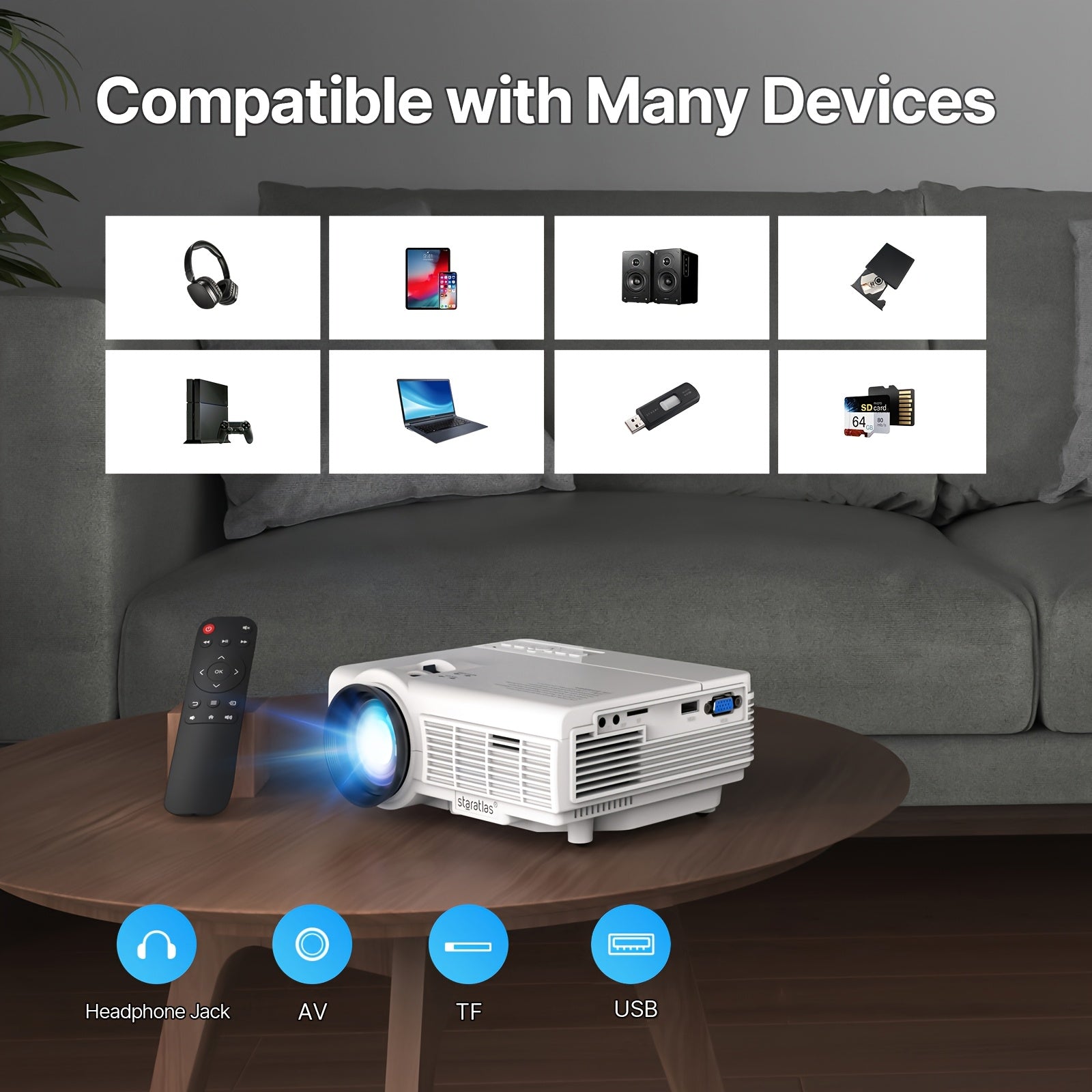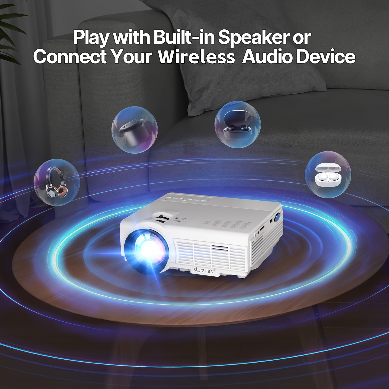 Мини HD-проектор с встроенным динамиком, беспроводной, для использования внутри и снаружи