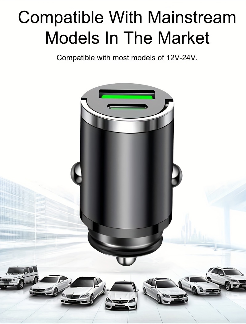 Мини-металлическое автомобильное зарядное устройство с быстрой зарядкой PD USB для мобильных устройств