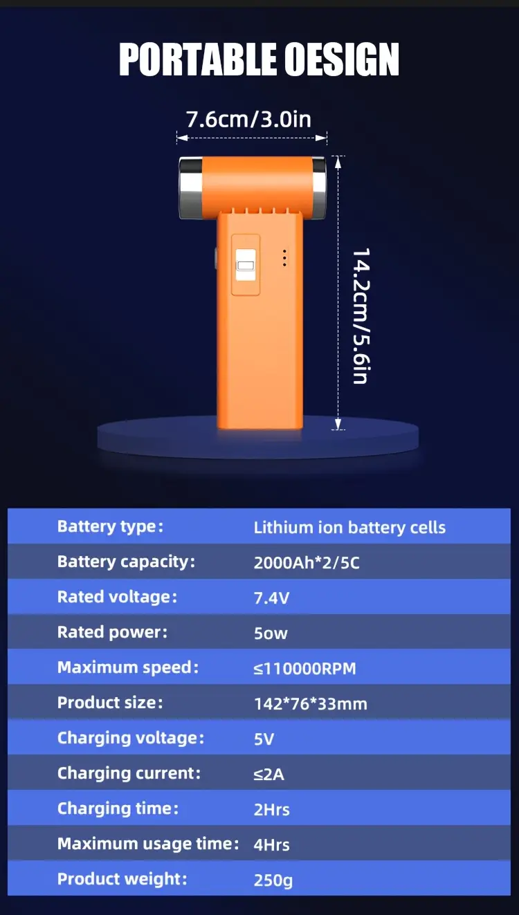Мини портативный турбонасос с 3 скоростями, перезаряжаемый через USB для кемпинга на открытом воздухе