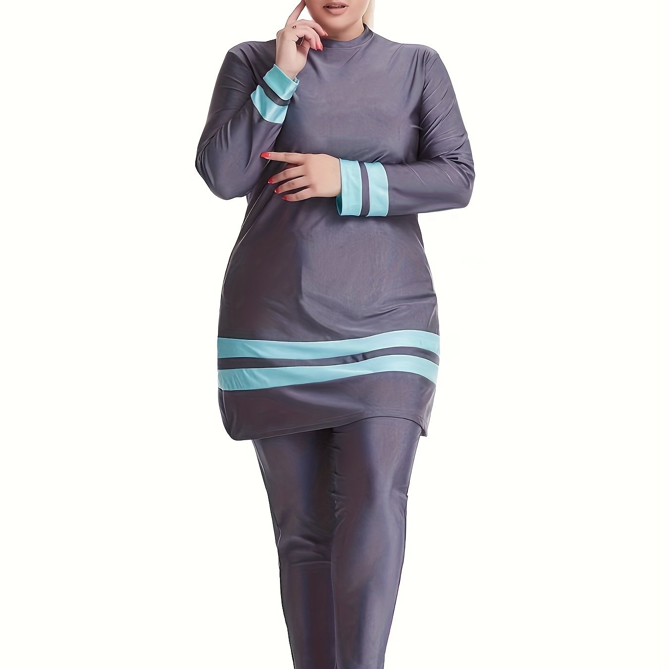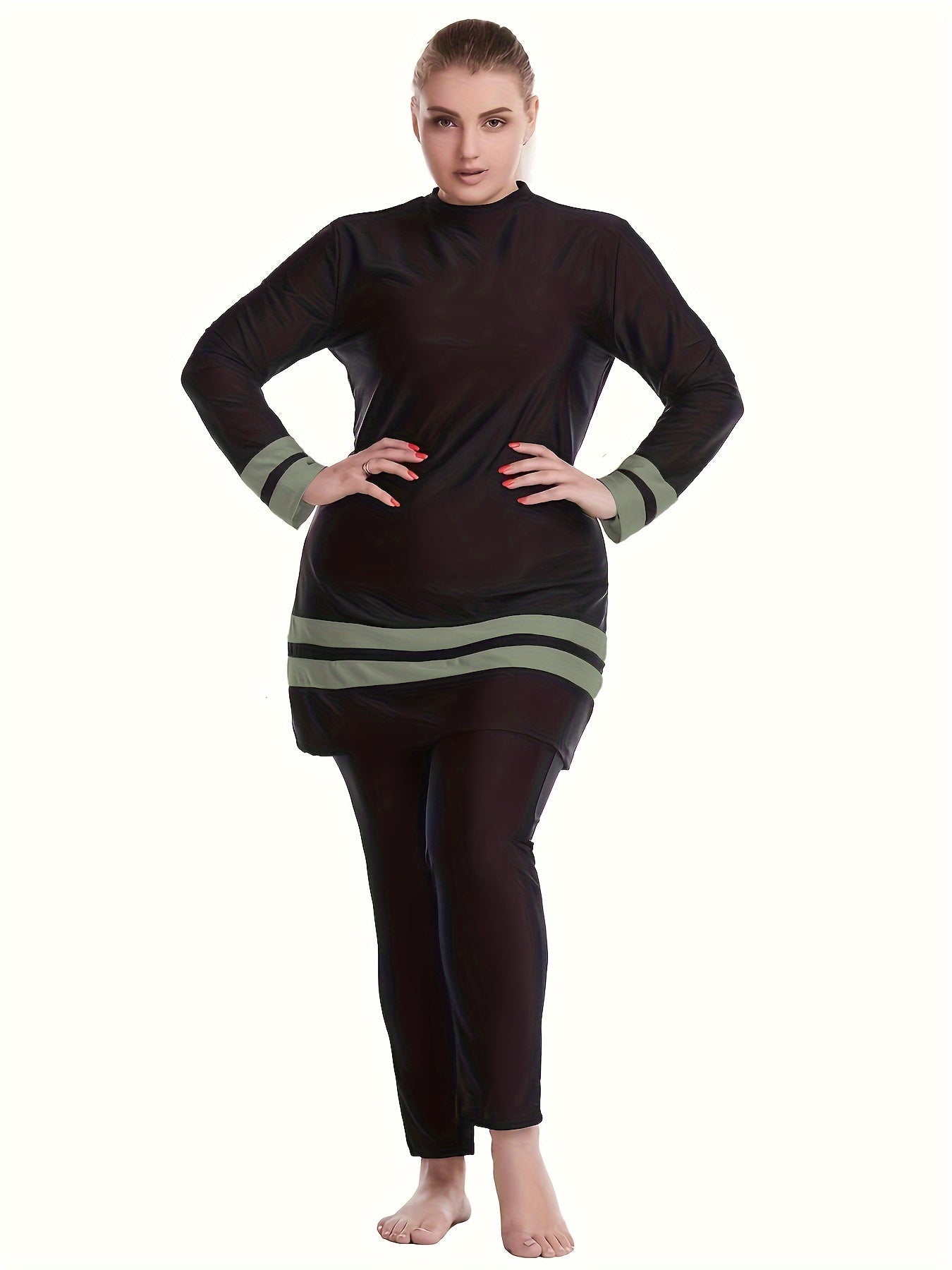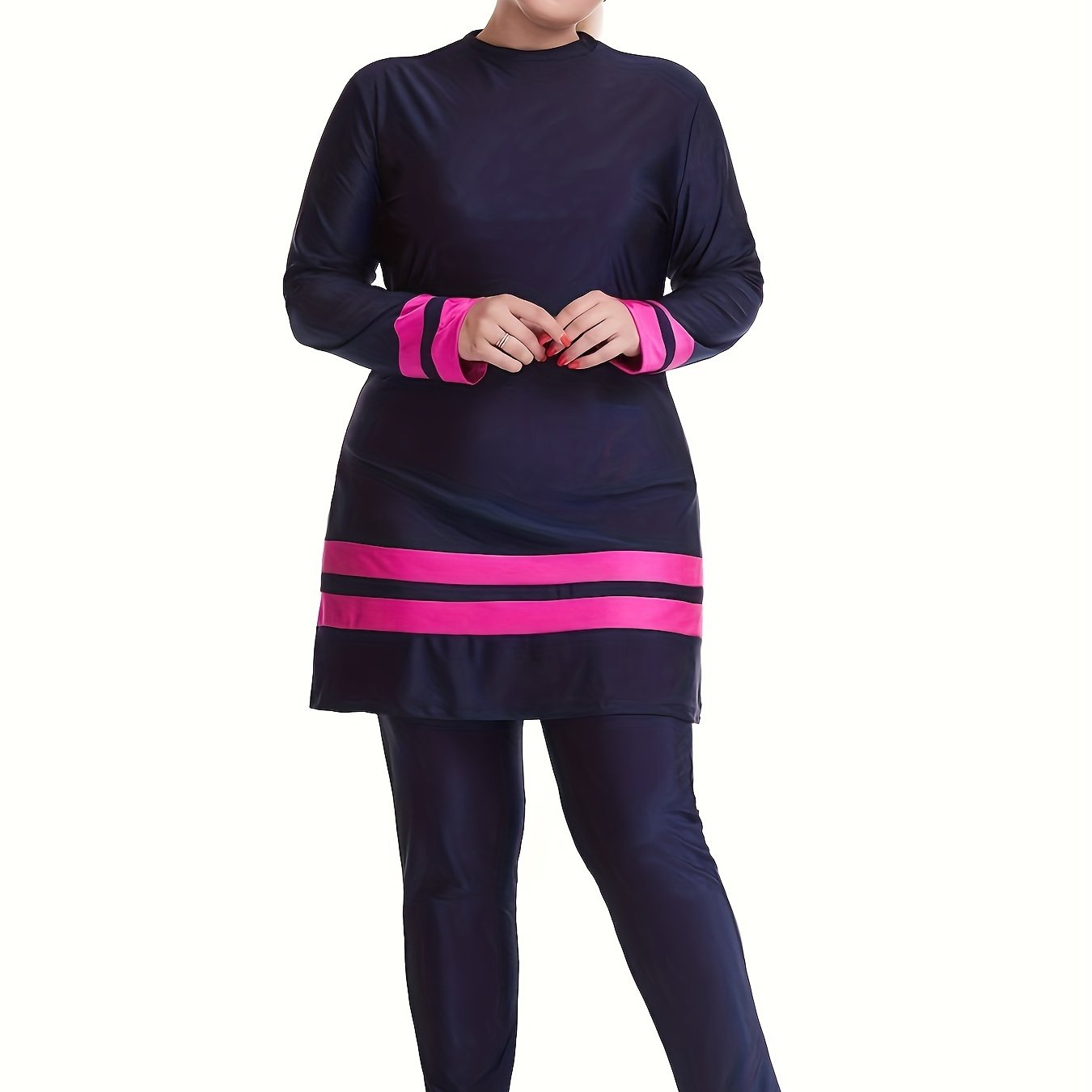Скромный женский купальник с защитой от солнца, топ и штаны с длинным рукавом, полоски, полиэстер, эластан