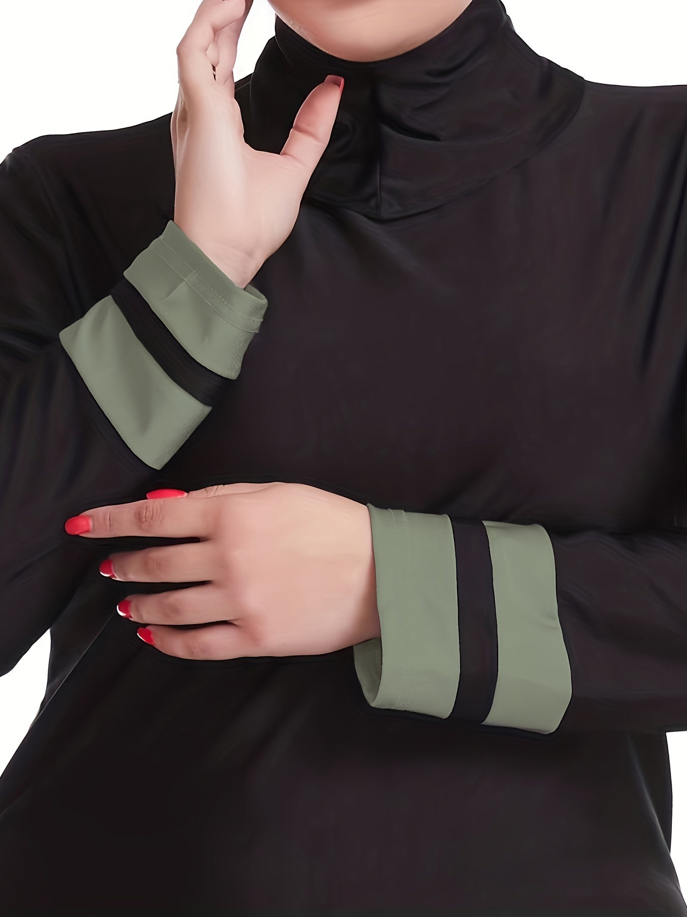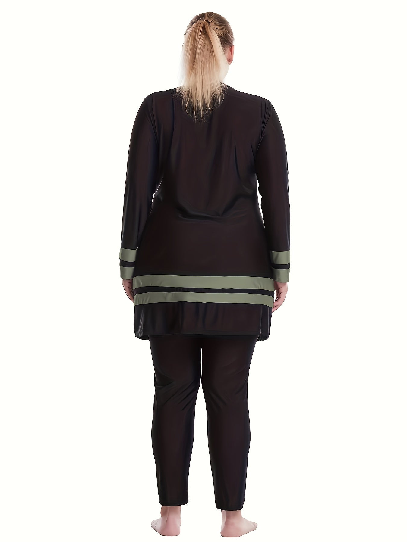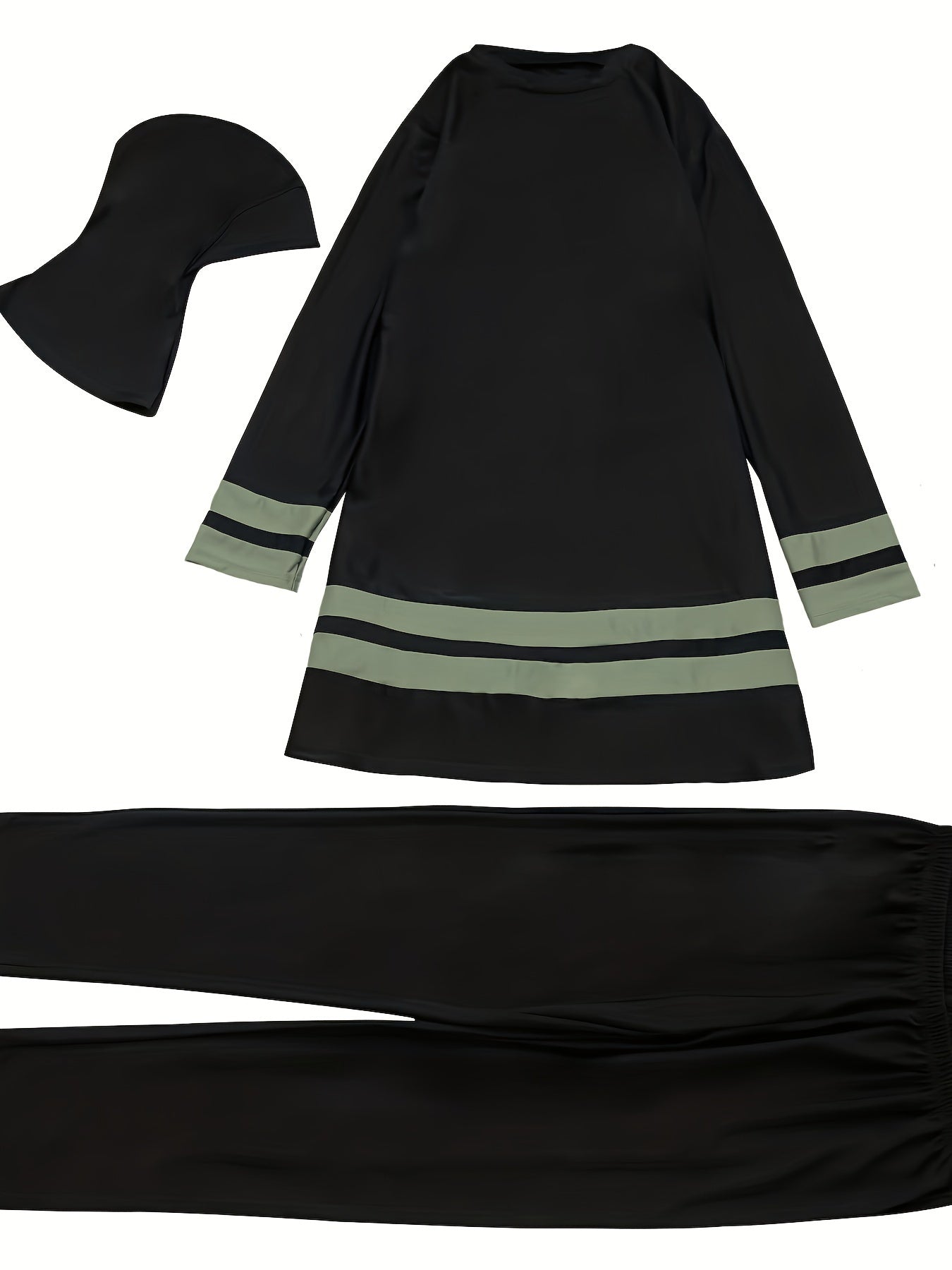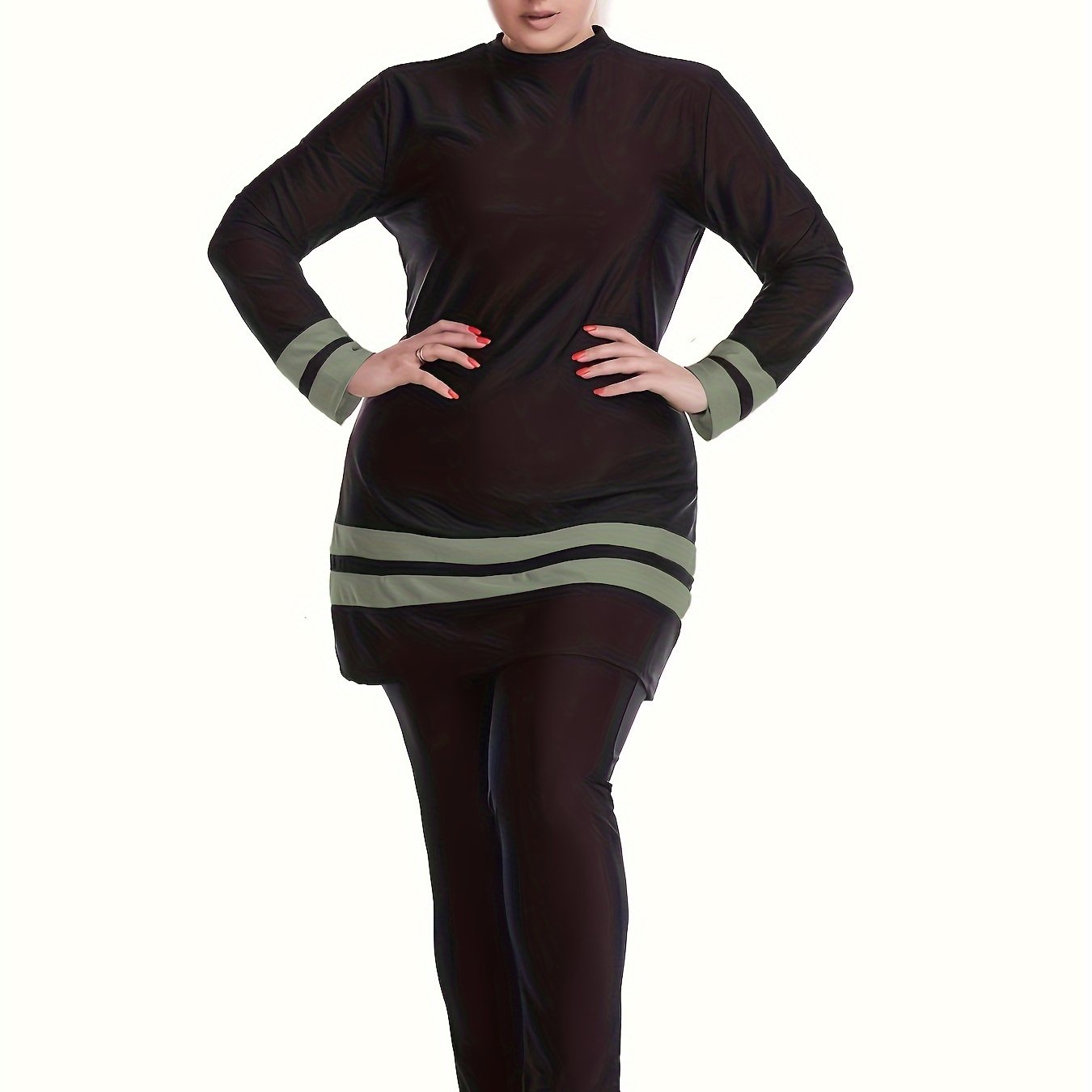 Скромный женский купальник с защитой от солнца, топ и штаны с длинным рукавом, полоски, полиэстер, эластан