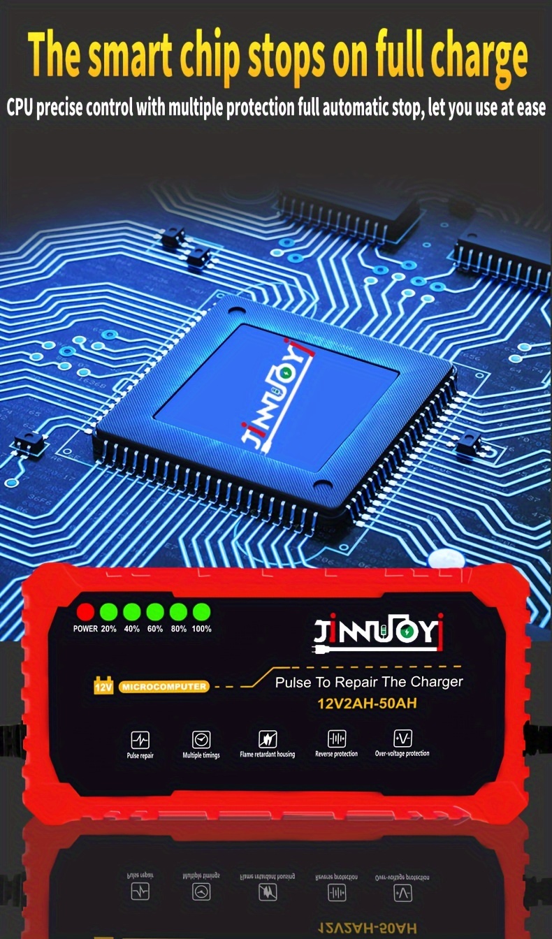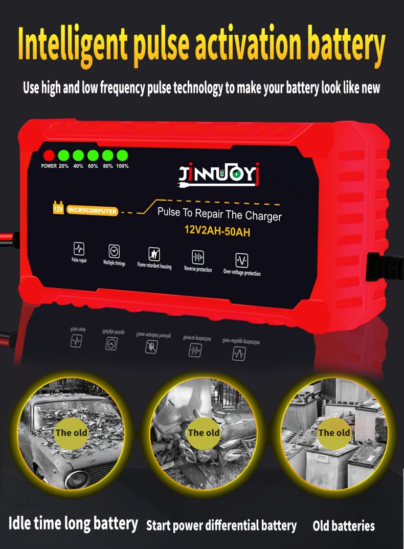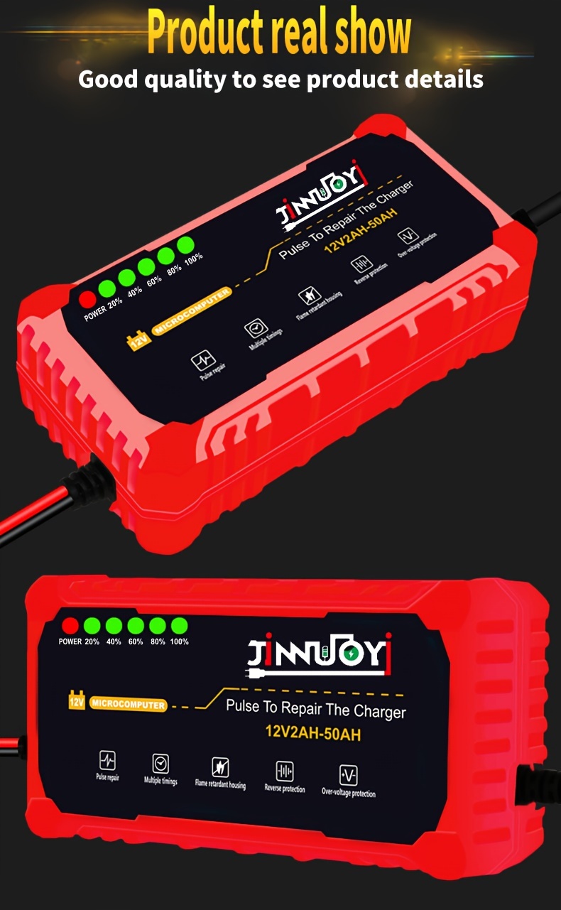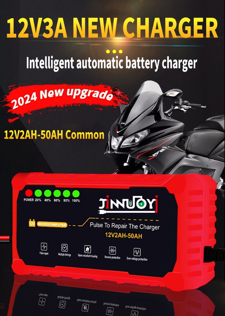 Автоматический зарядное устройство для мотоциклетных аккумуляторов с LED-дисплеем 12В 2-50Ач 3А импульс