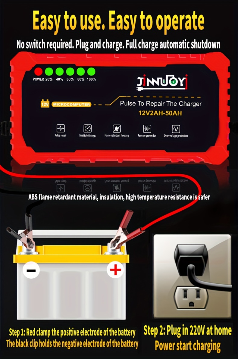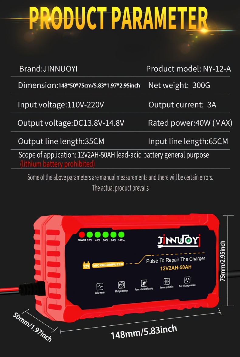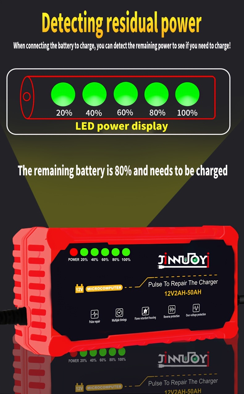 Автоматический зарядное устройство для мотоциклетных аккумуляторов с LED-дисплеем 12В 2-50Ач 3А импульс