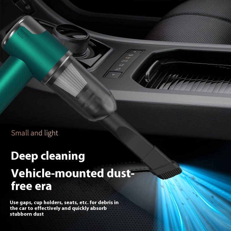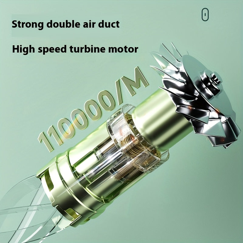 Многофункциональный беспроводной пылесос для дома и автомобиля с функциями всасывания, продувки, вытягивания и зарядки. В комплект входит долговечная литиевая батарея, уровень шума 75 дБ и мощность всасывания 4 кПа.