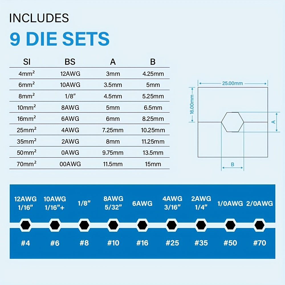 Гидравлический обжимной инструмент с 8 матрицами, без необходимости питания, с головкой в форме буквы C, вращение на 180°