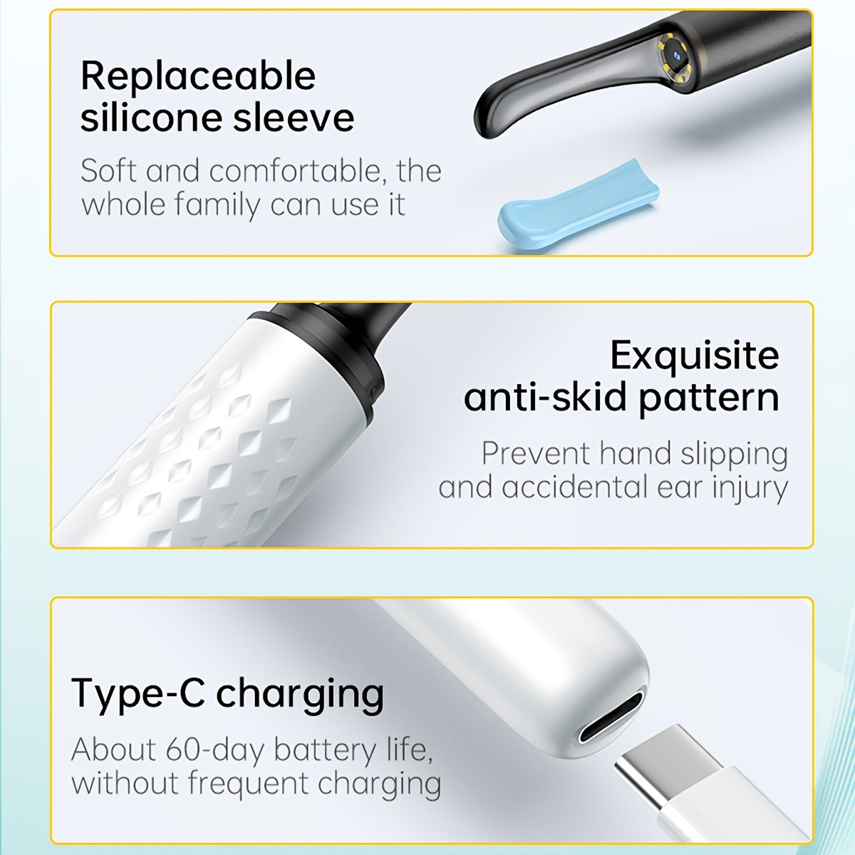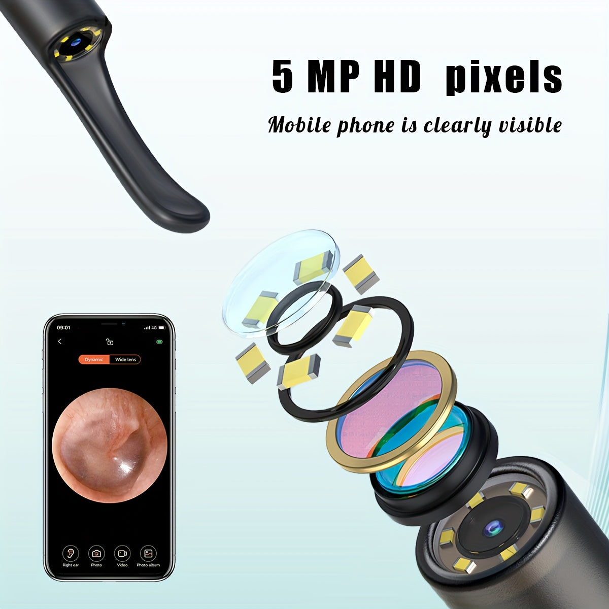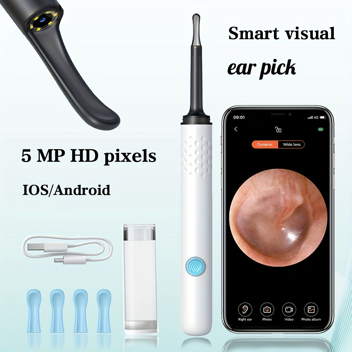 Набор для удаления ушной серы с камерой и лампой, перезаряжаемый через USB