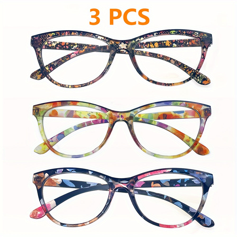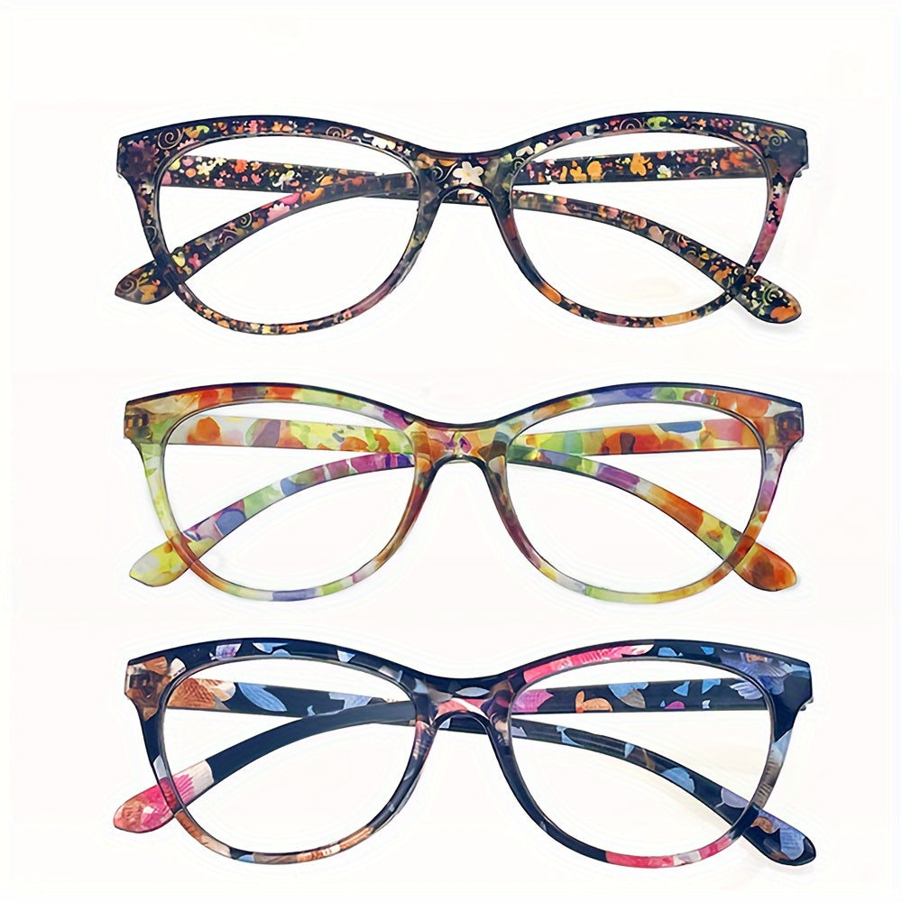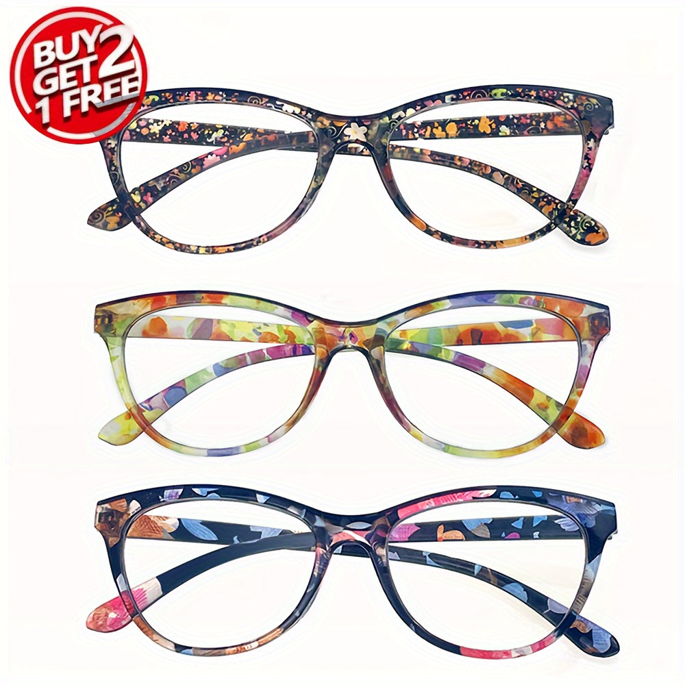 Набор из 3 стильных очков для чтения Cat Eye с защитой от синего света и цветочным дизайном