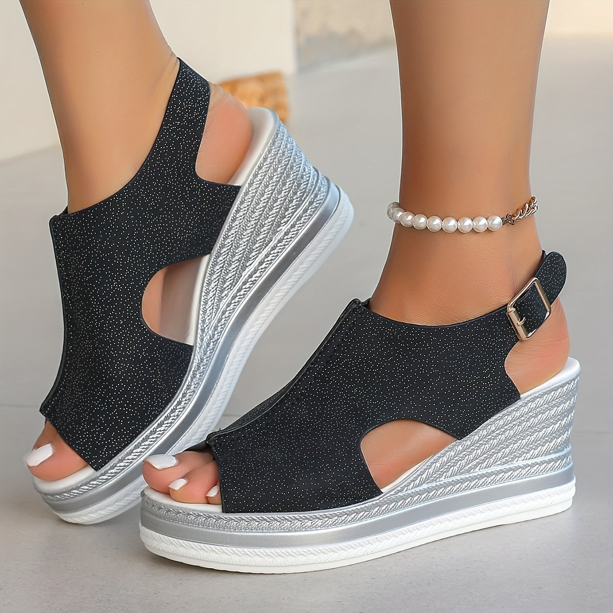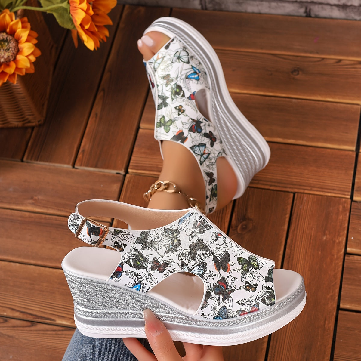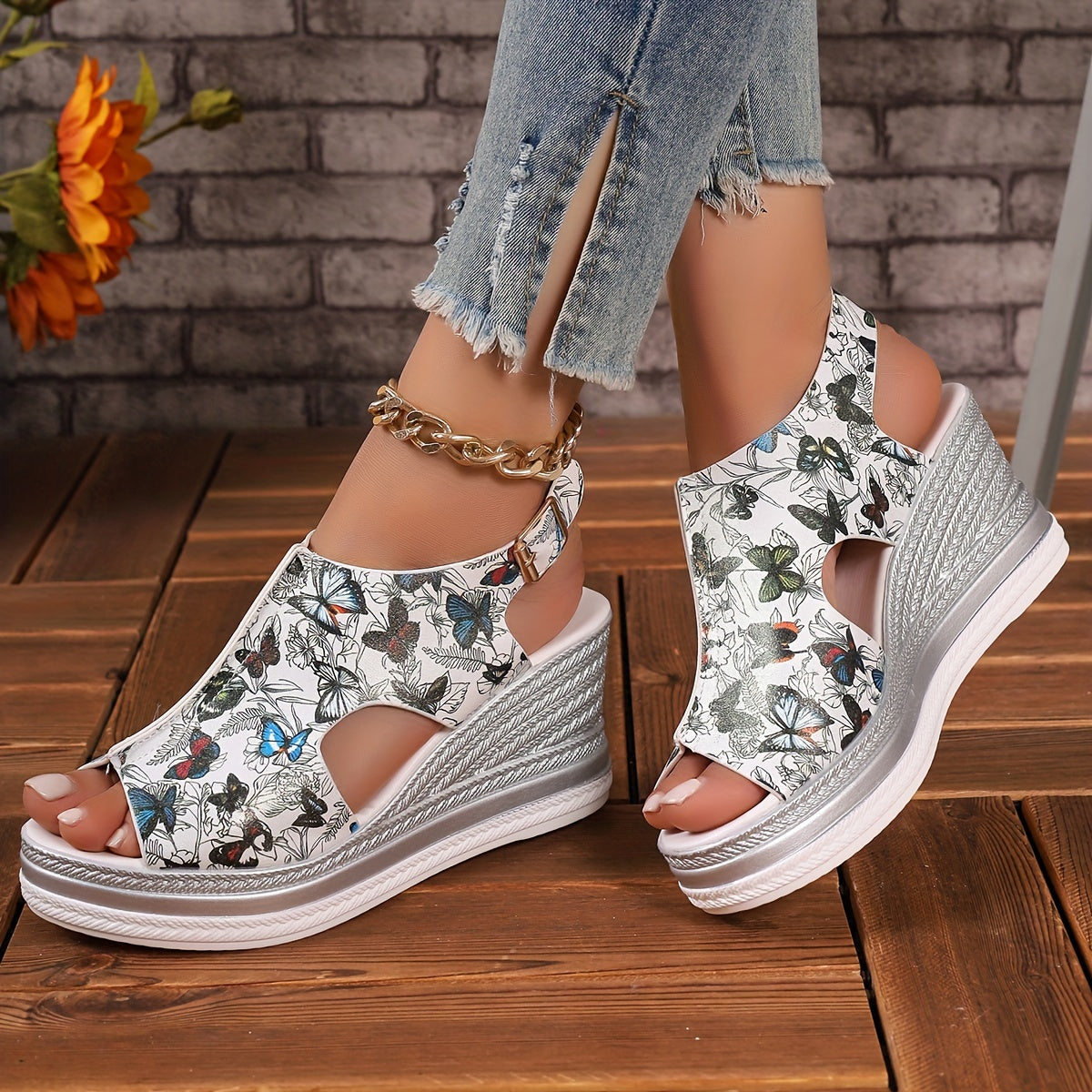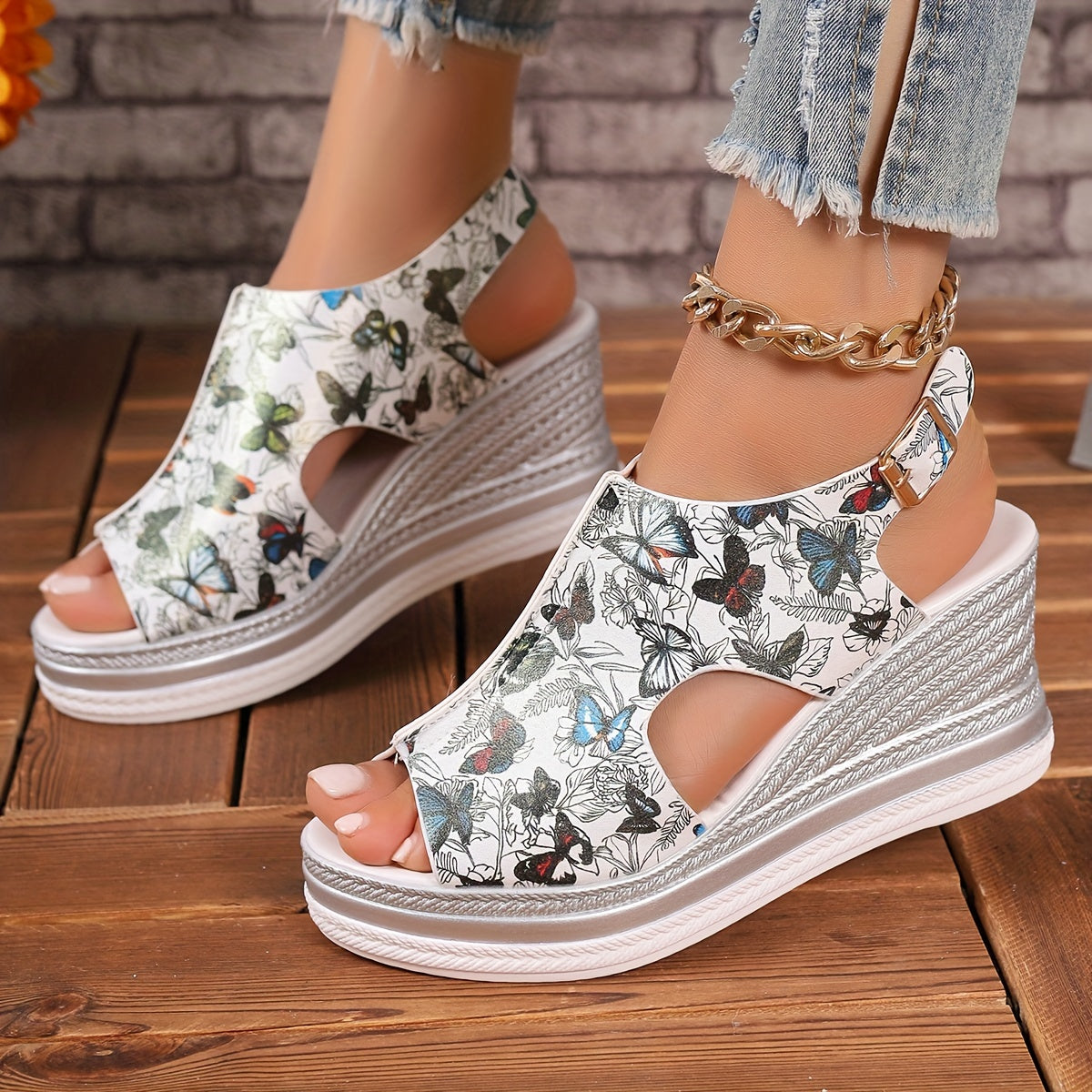 Новые сандалии с толстой подошвой и wedge-каблуком в виде рыбьего рта.