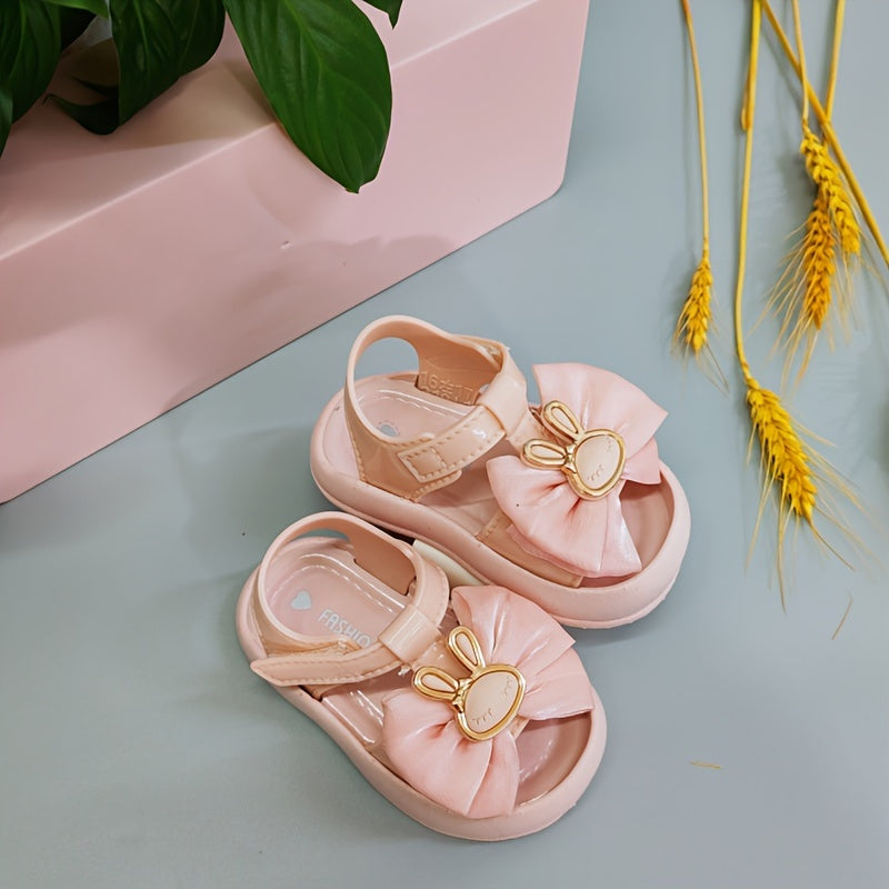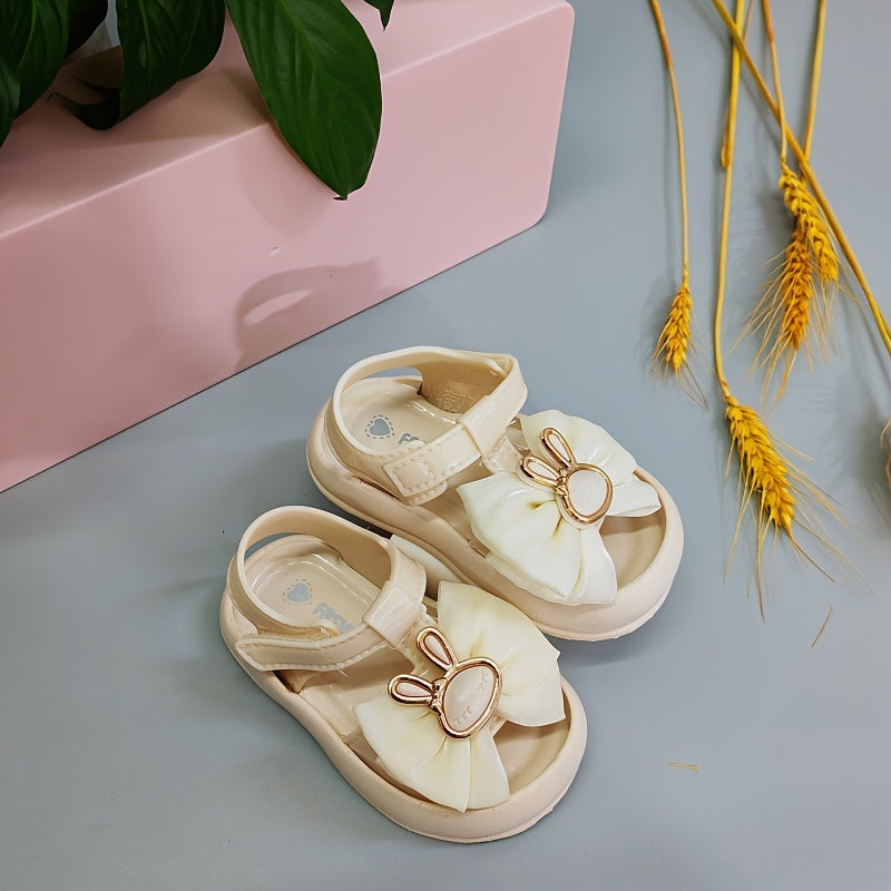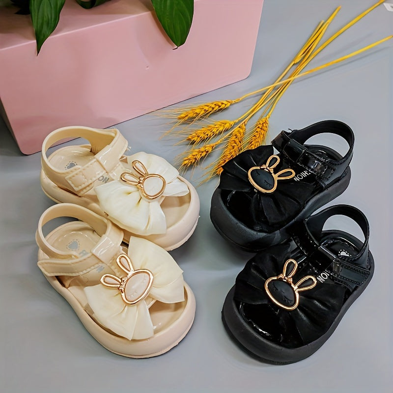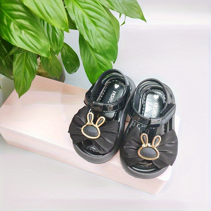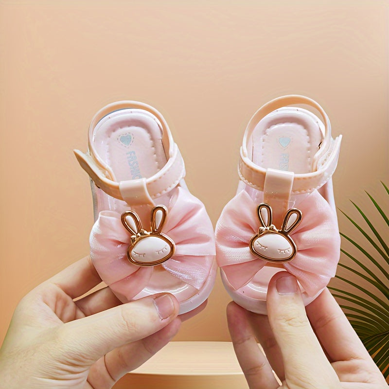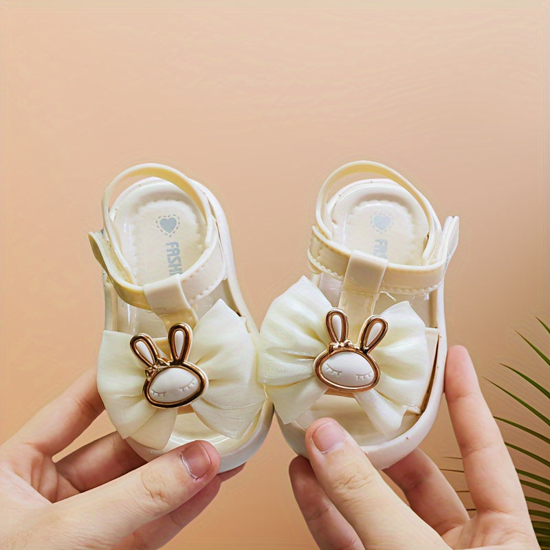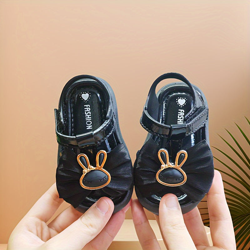 Детские сандалии для девочек с закрытым носком, легкие, мягкая подошва, противоударный дизайн с кроликом для обучения ходьбе