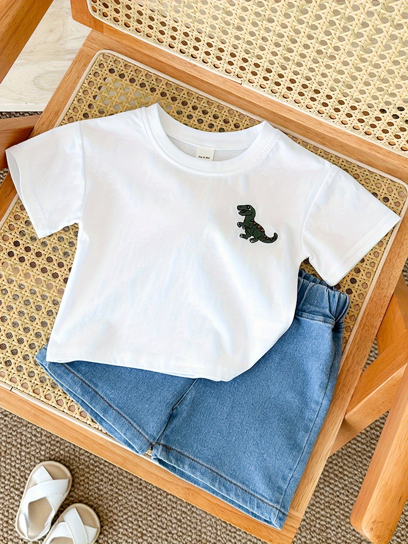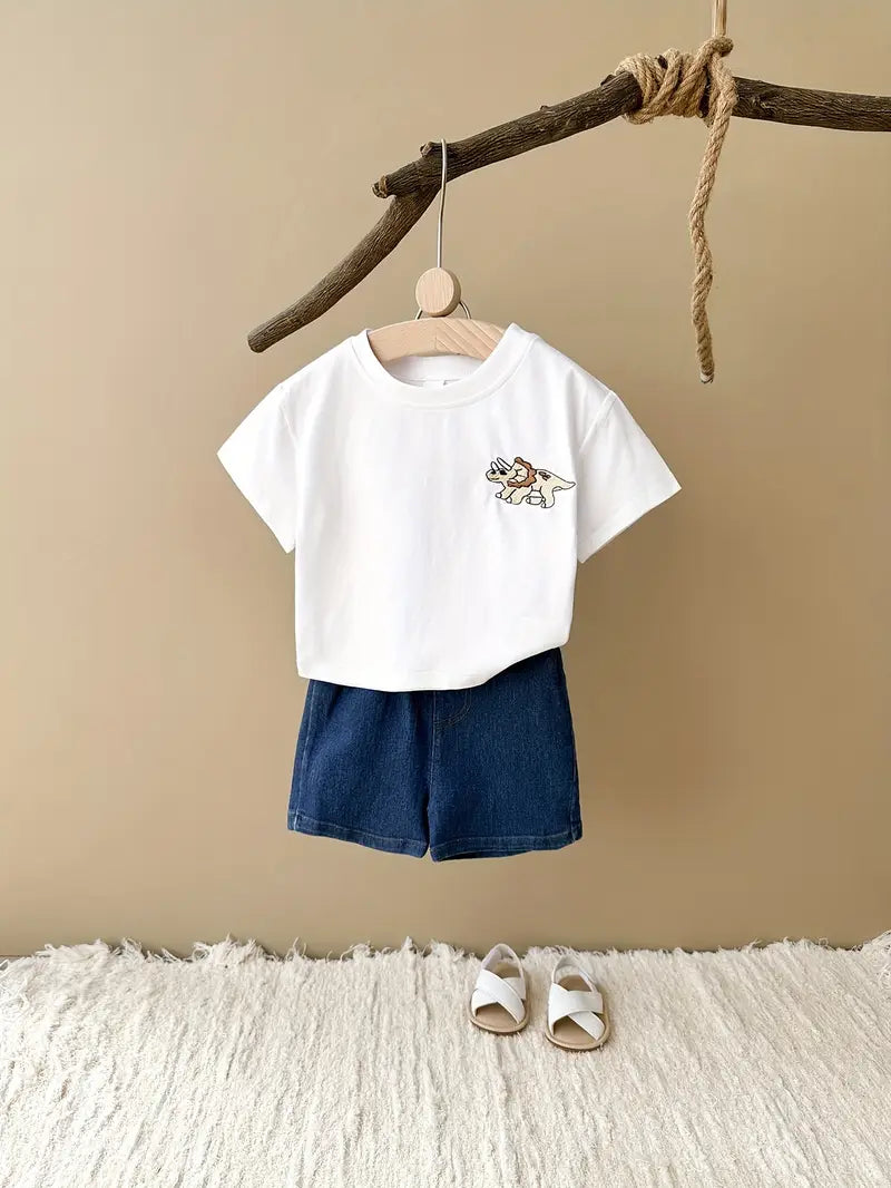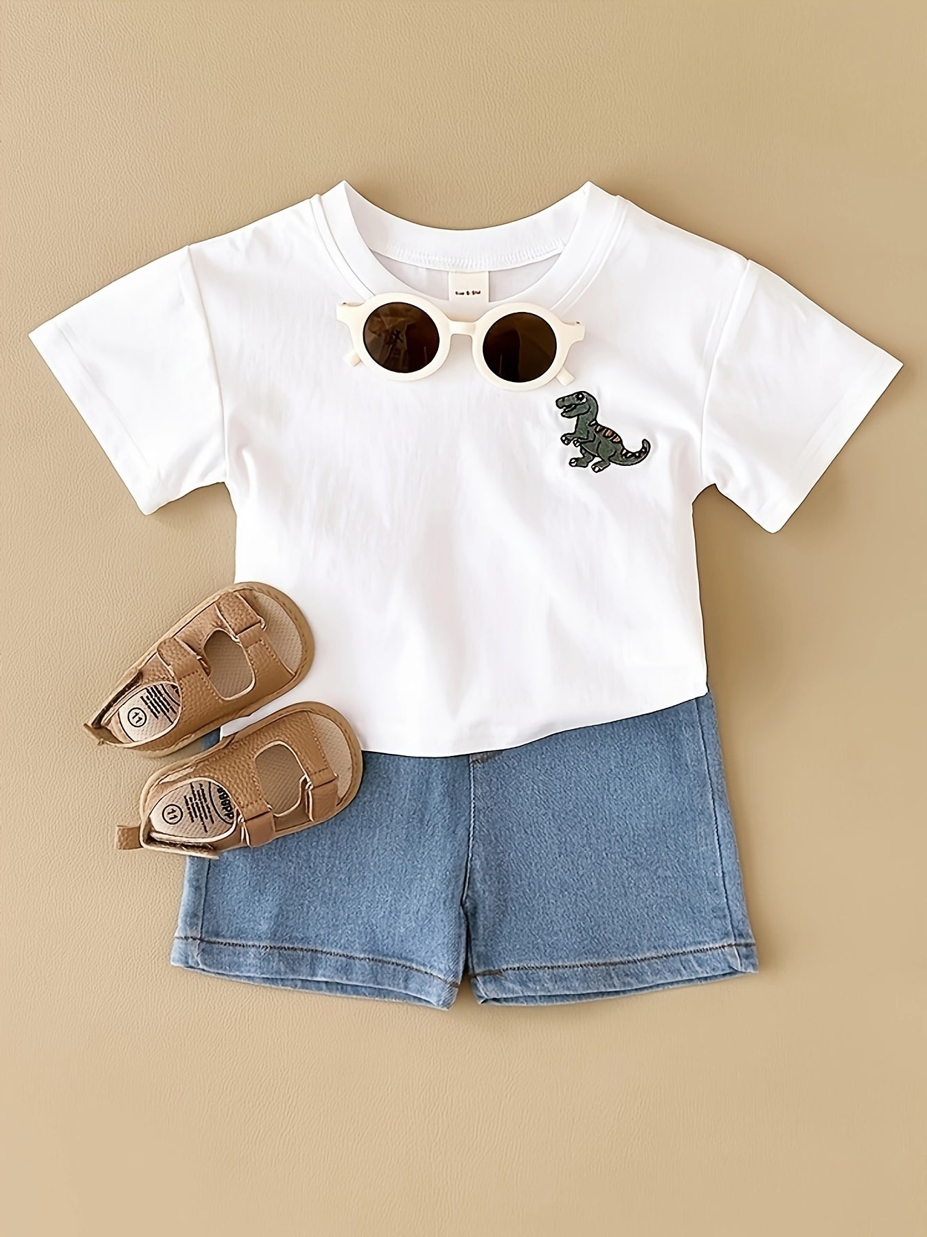 Набор для новорожденных детей: футболка с вышивкой динозавра и шорты, летняя одежда для улицы