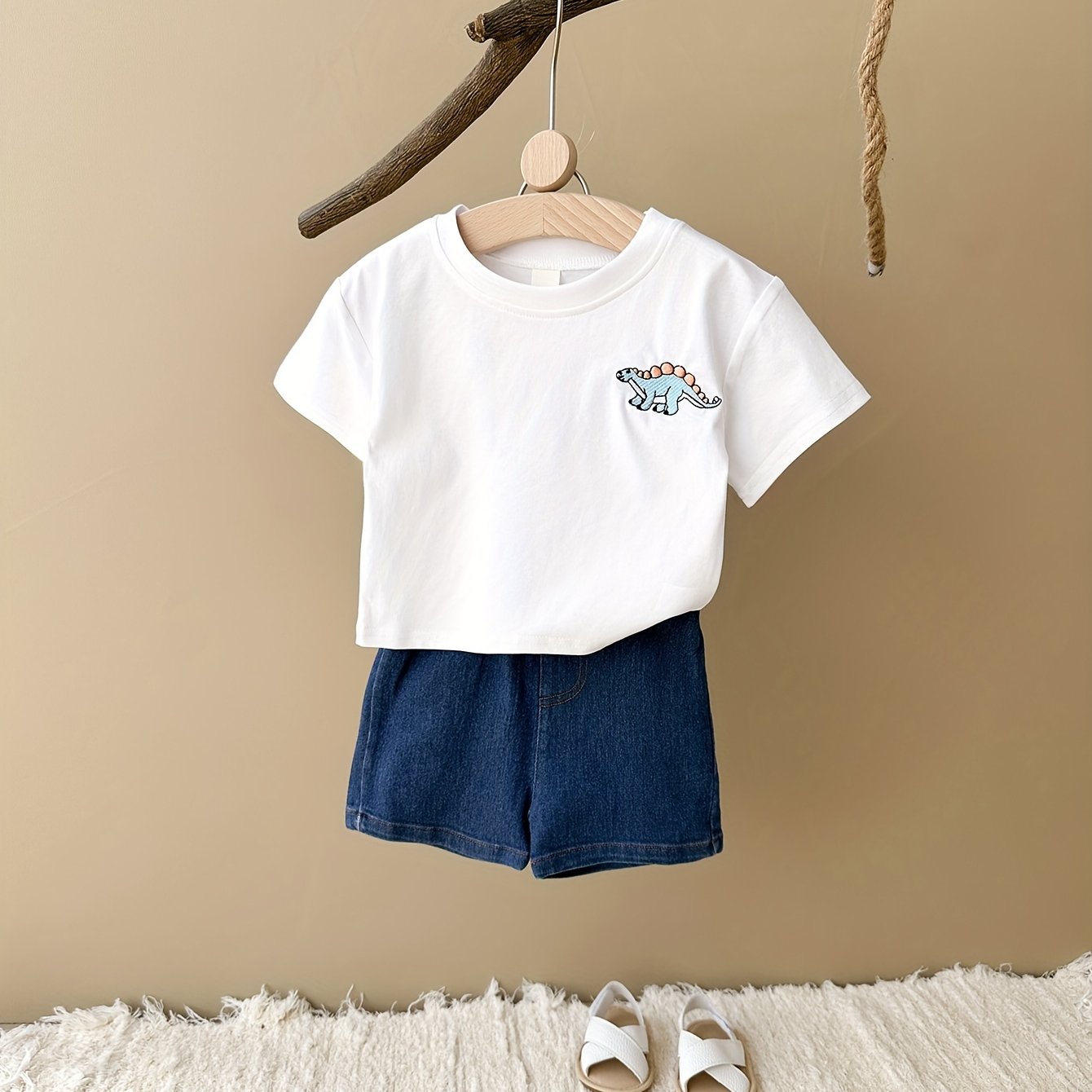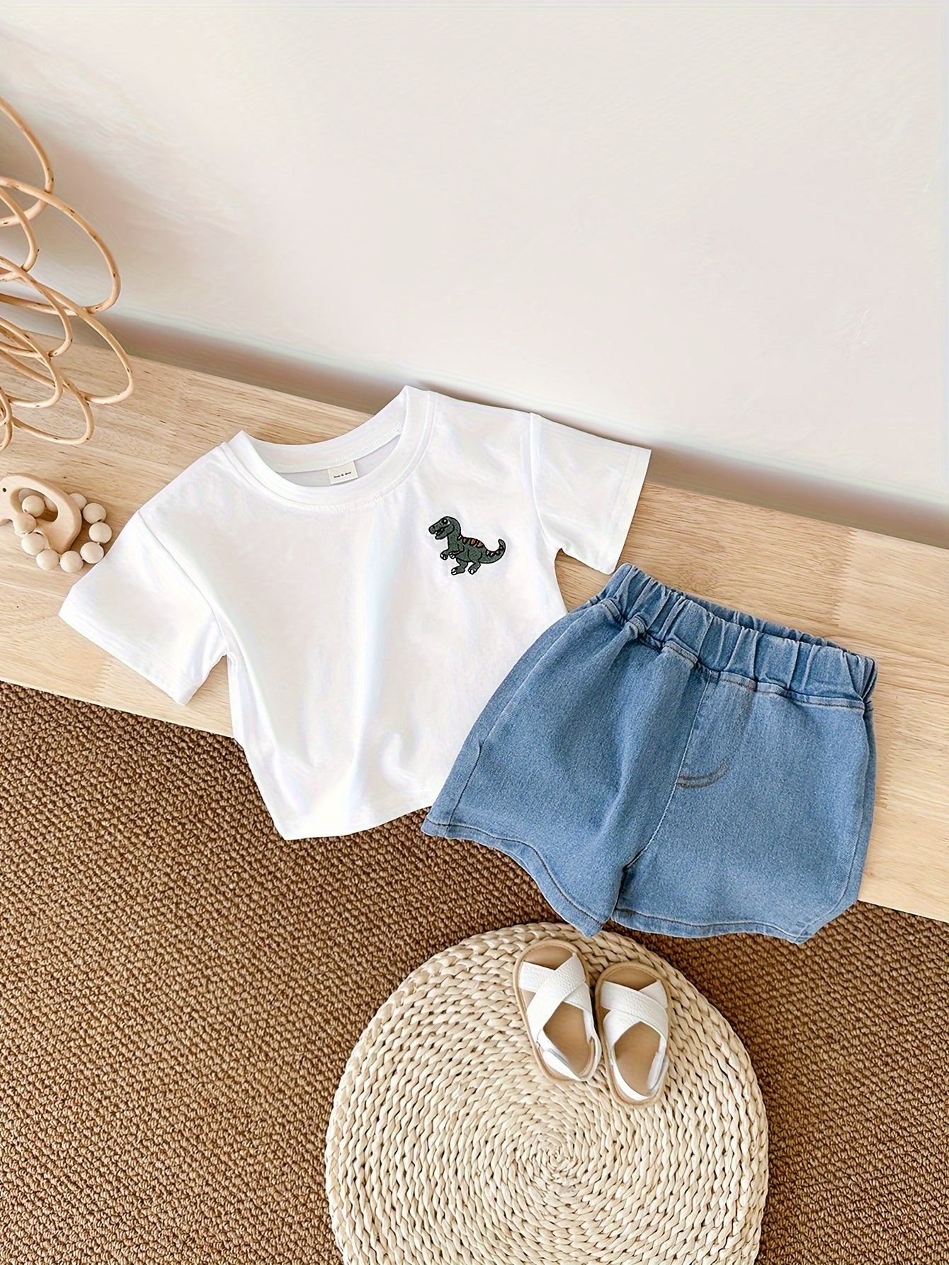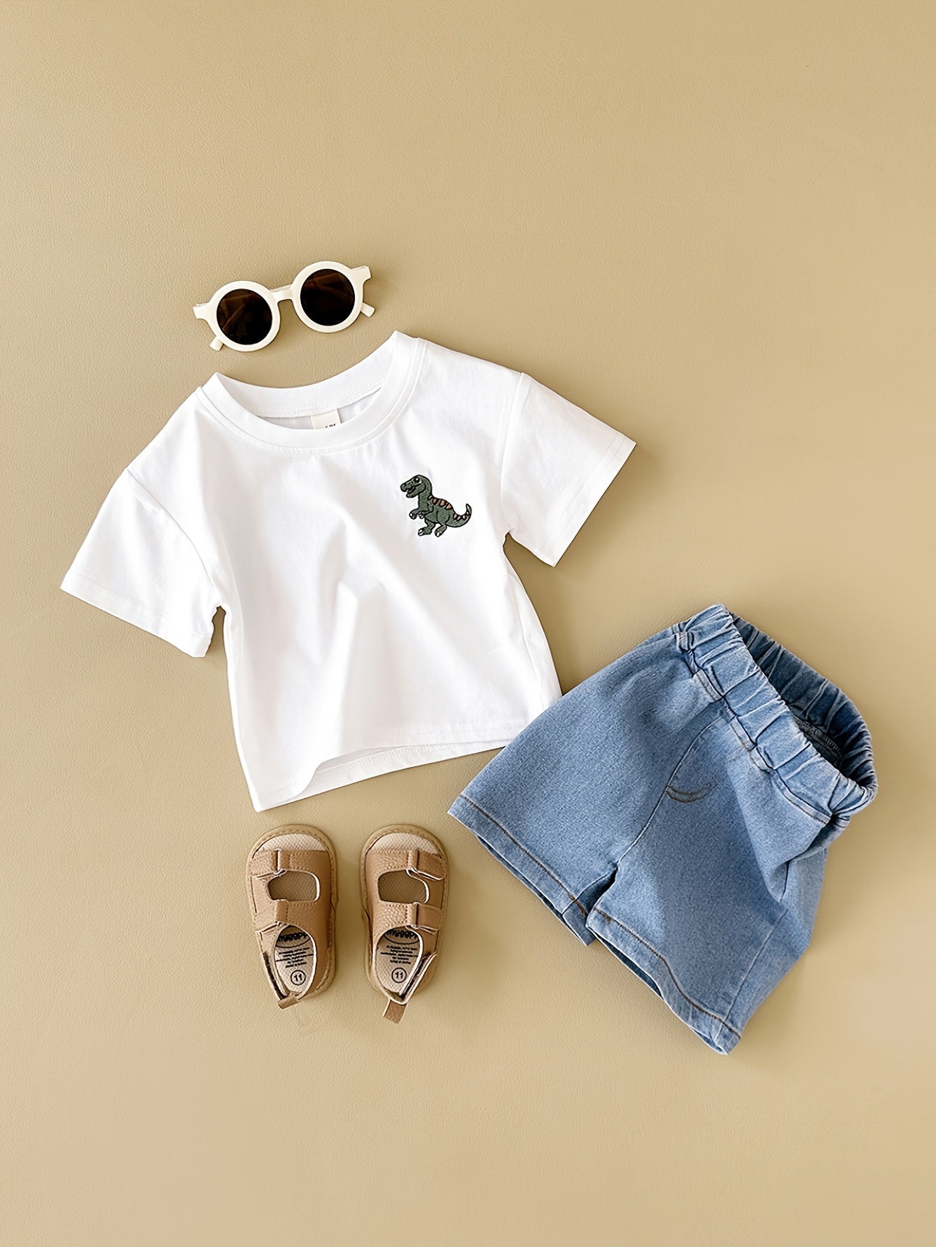 Набор для новорожденных детей: футболка с вышивкой динозавра и шорты, летняя одежда для улицы