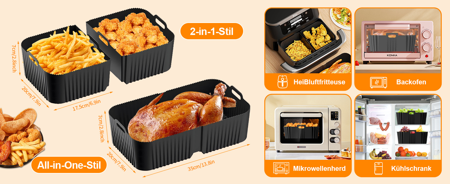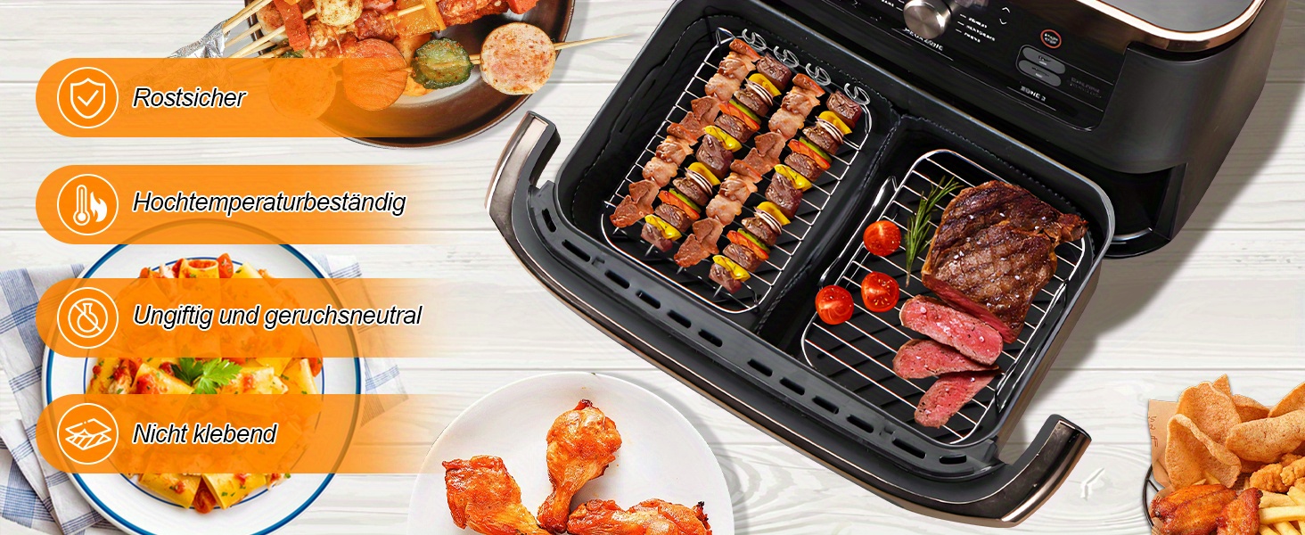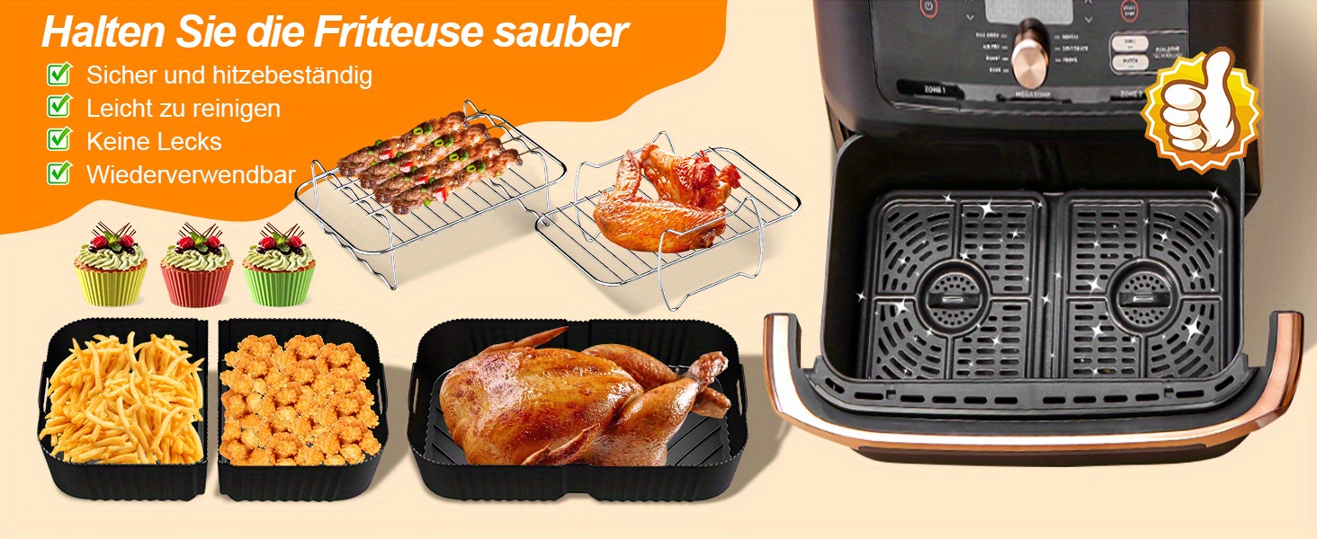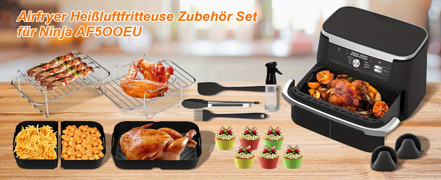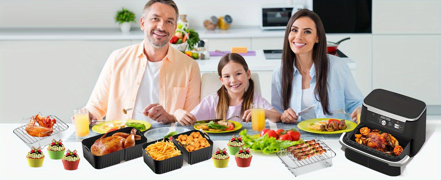Аксессуары для аэрогриля Ninja Foodi Flexdrawer 10,4 л включают 1 силиконовую форму для аэрогриля объемом 10,4 л и 2 формы объемом 5,2 л.