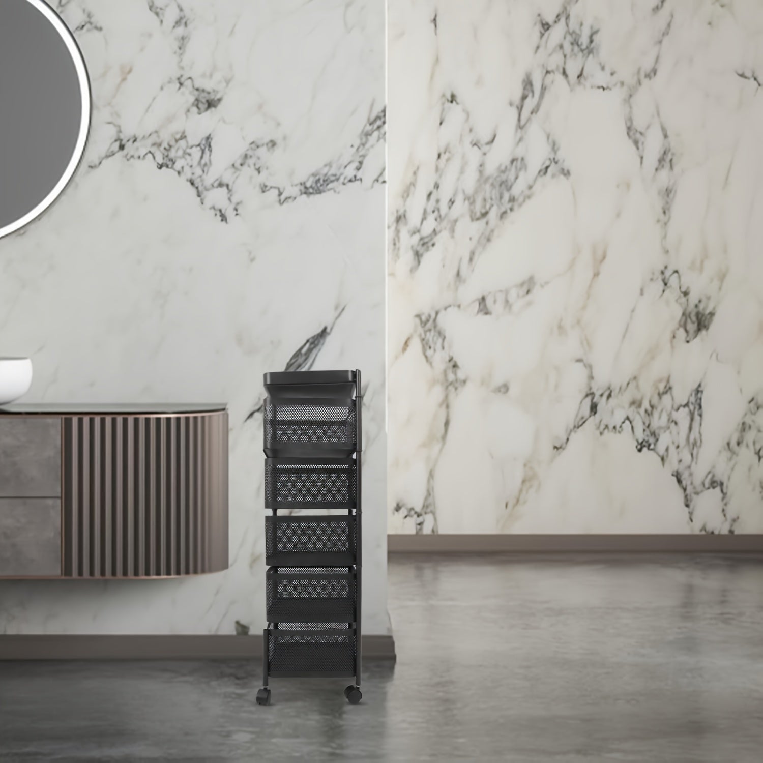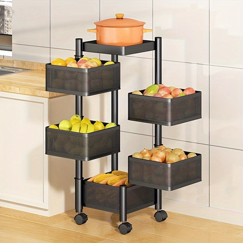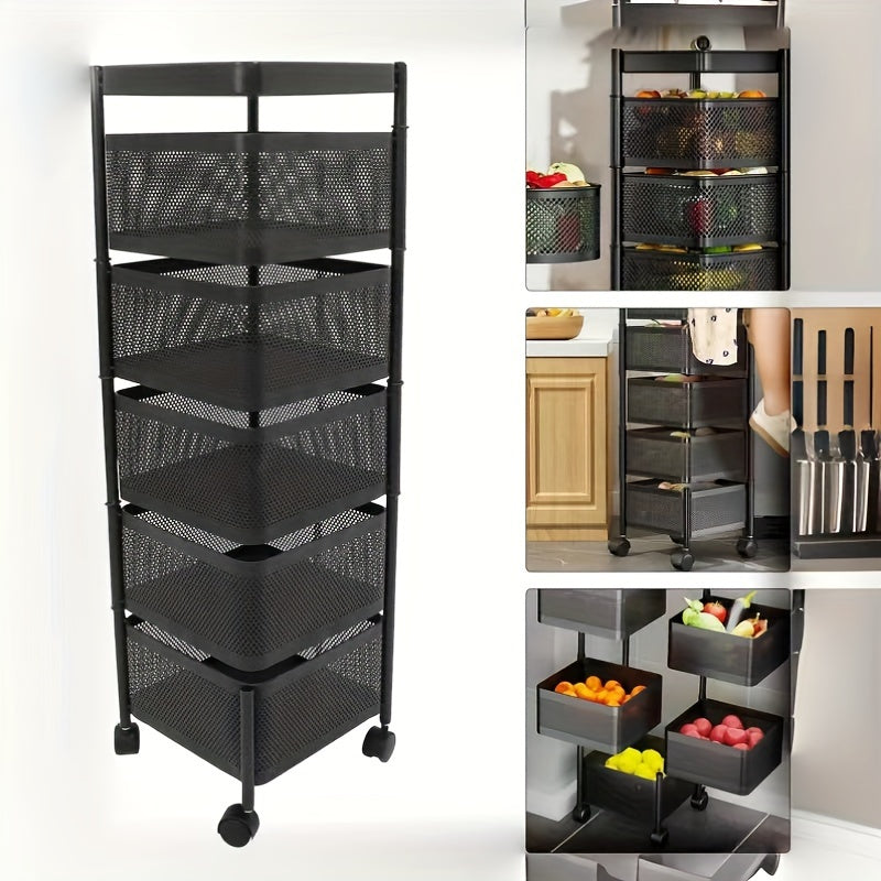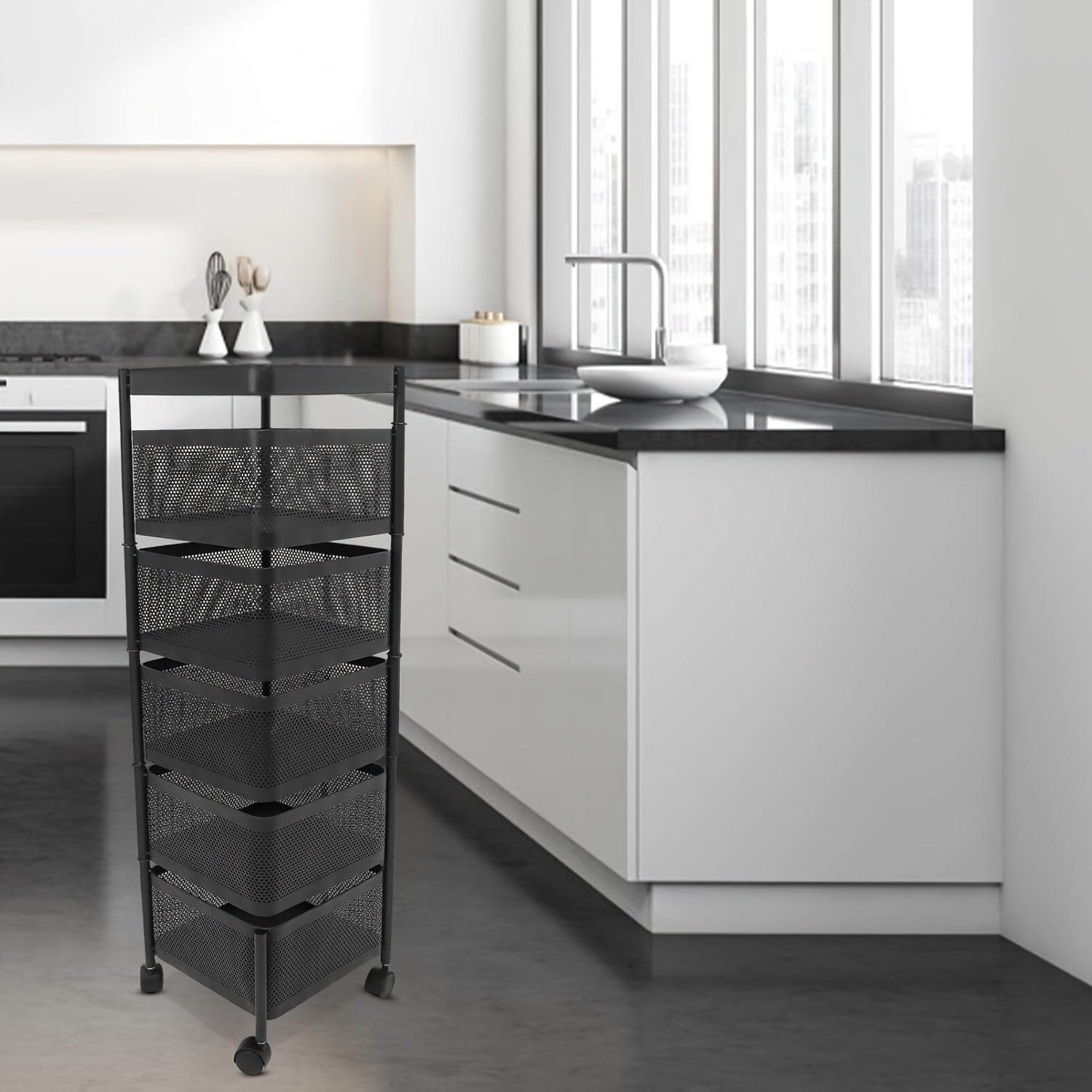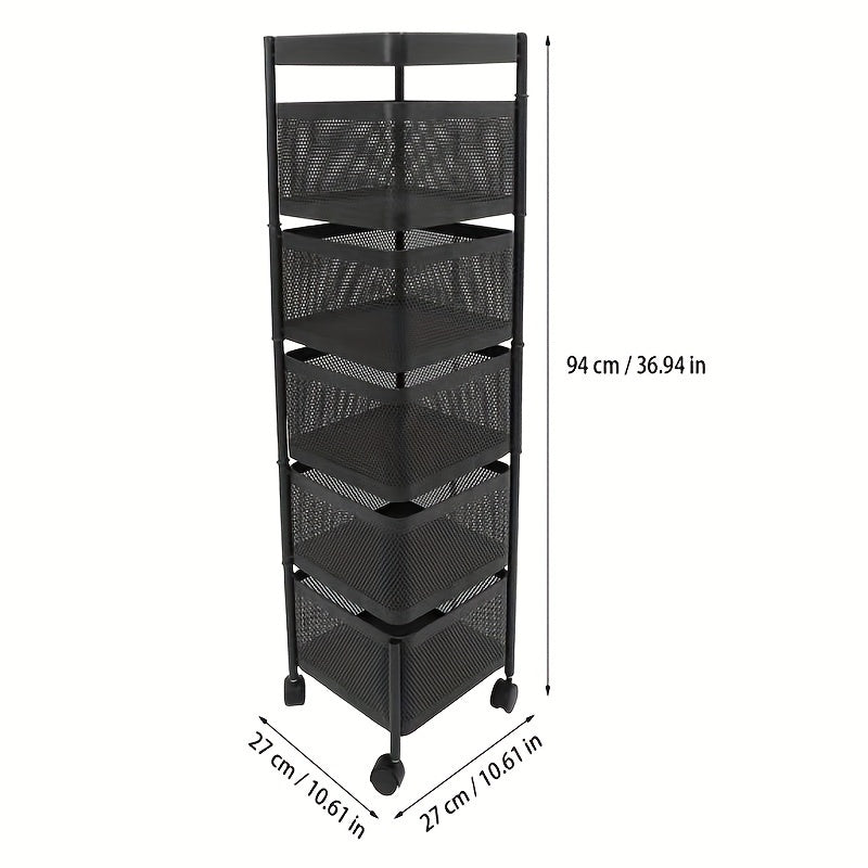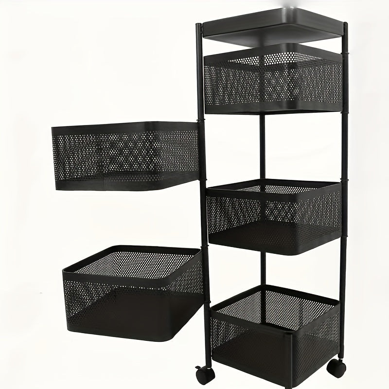 Не требует сборки, металлическая тележка для хранения на колесиках с 4-ярусными открытыми сетчатыми корзинами. Вращающаяся хозяйственная тележка с колесами для кухни, офиса или дома. Не требует электричества или батареек.